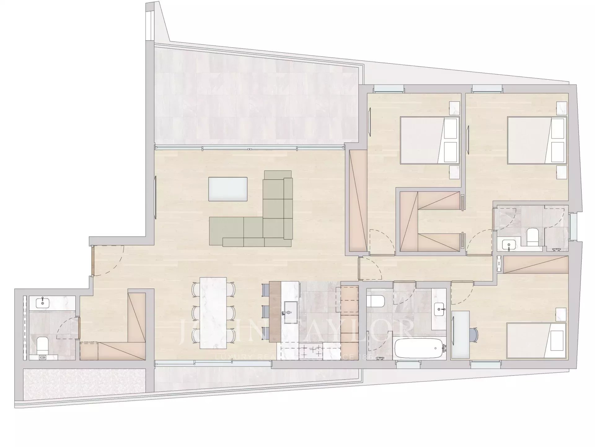 O mobiliário apresentado é meramente promocional e ilustrativo e não está incluído na entrega final, mas pode ser oferecido como parte de um pacote de mobiliário a um custo adicional.