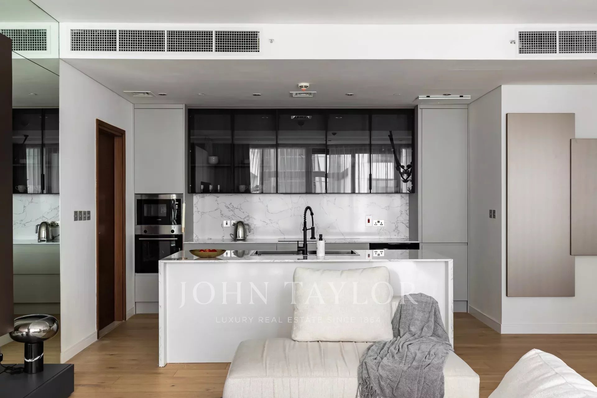 A John Taylor Dubai apresenta este apartamento requintadamente renovado de 2 quartos com um quarto de empregada, localizado no coração da City Walk Dubai. Com uma área de 151,51 m², este apartamento novo e totalmente mobilado foi meticulosamente atualizado para combinar a sofisticação moderna com um conforto inigualável. Todos os detalhes foram melhorados, incluindo o pavimento recentemente substituído, paredes pintadas de fresco, uma cozinha completamente remodelada e azulejos de casa de banho melhorados, oferecendo um ambiente fresco e elegante.