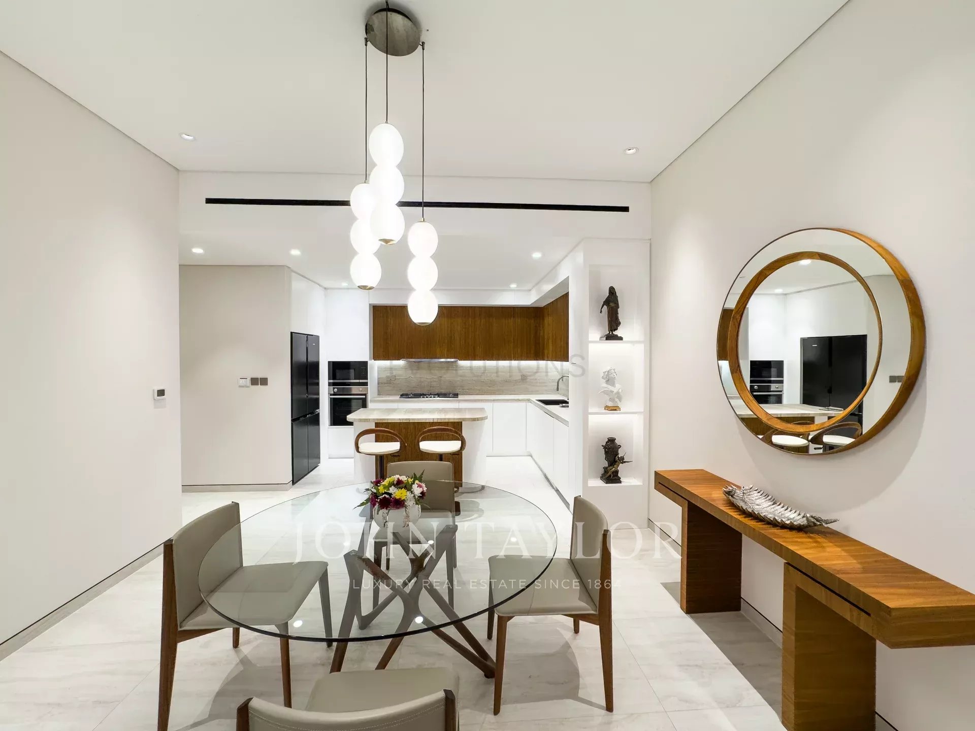 Vistas de cortar a respiração: Desfrute de vistas desobstruídas sobre os lagos circundantes, campos de golfe e o dinâmico horizonte do Dubai, particularmente deslumbrantes ao pôr do sol.