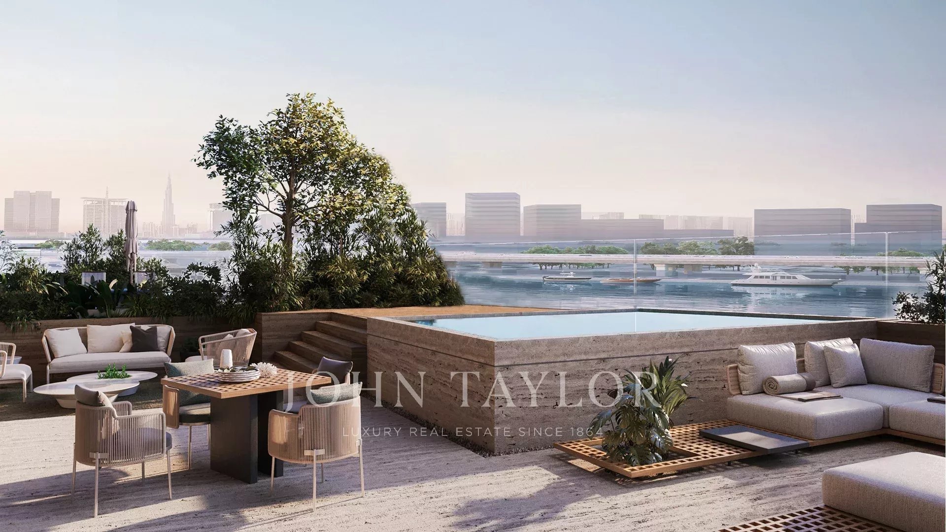 Vistas de cortar a respiração: Desfrute de vistas desobstruídas sobre o Golfo Pérsico, a linha do horizonte do Dubai e a serena zona ribeirinha, criando um cenário idílico para a sua vida quotidiana.