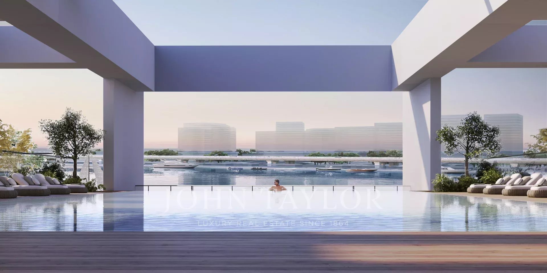 Piscina infinita com vista para a água