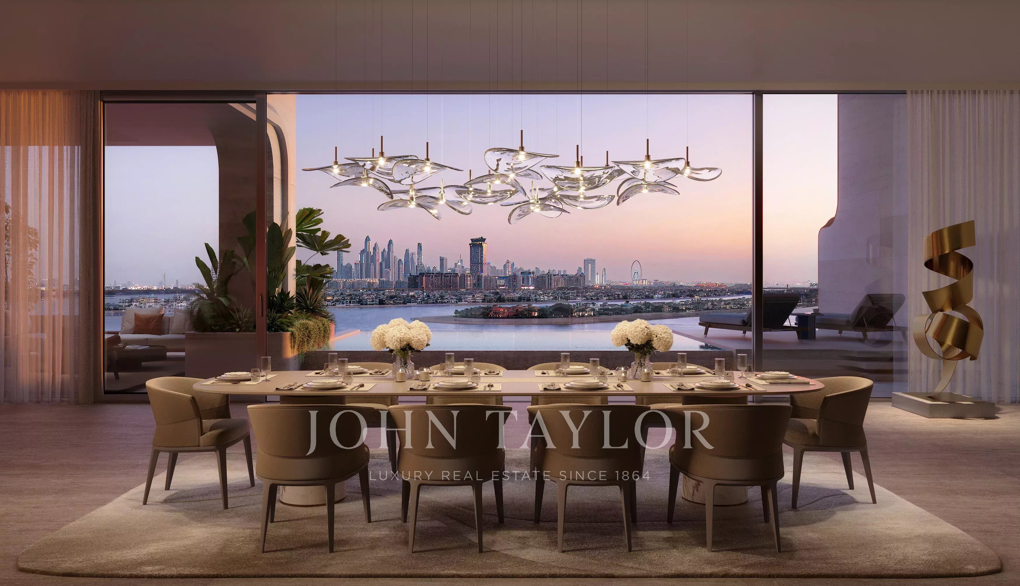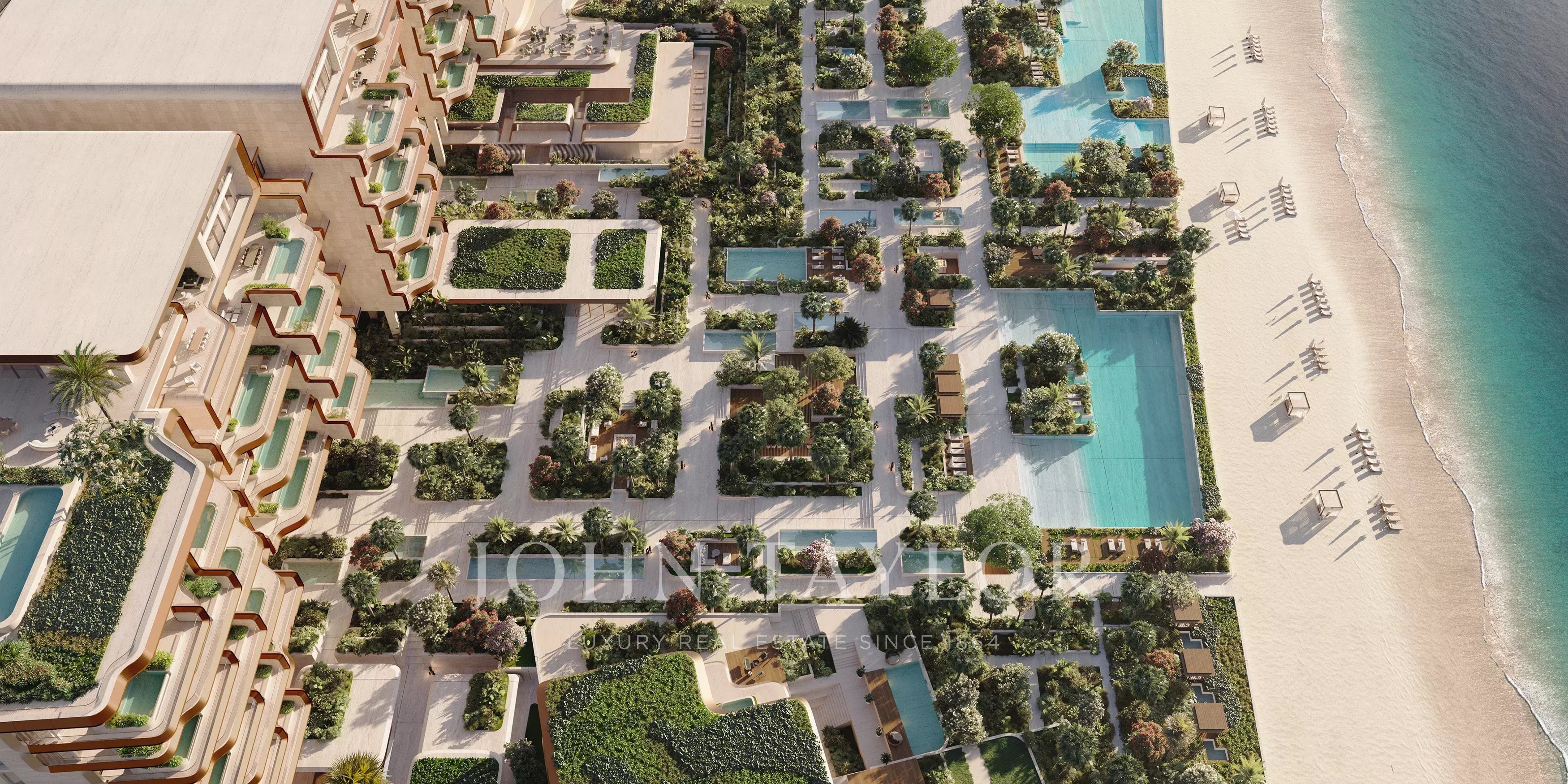 A propriedade inclui acesso a todas as comodidades do hotel e serviços residenciais, desde a programação de bem-estar a refeições privadas e cuidados diários. No piso superior, o Sunset Lounge oferece 400 metros quadrados, com um pôr do sol ininterrupto sobre Palm Jumeirah e vistas panorâmicas sobre o Central Oasis. O lounge reúne ambientes interiores e exteriores, incluindo um business lounge e um terraço verde elevado, oferecendo um ponto de vista distinto.