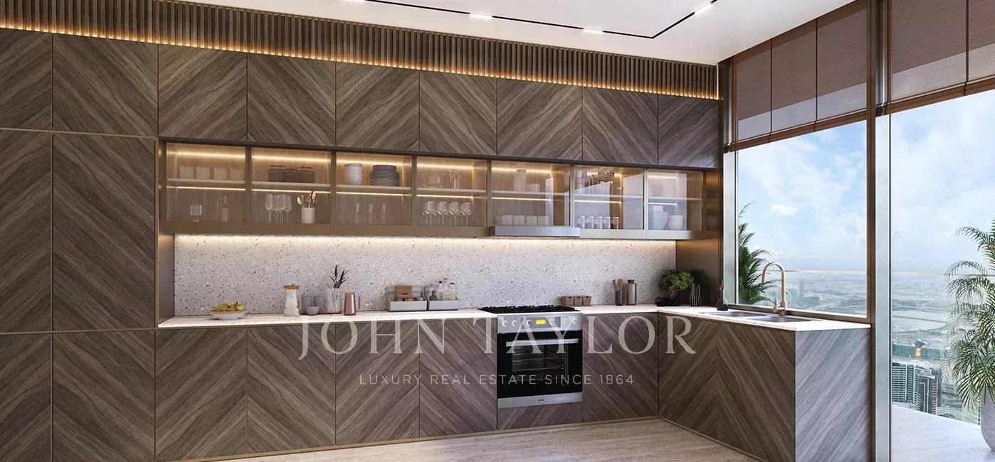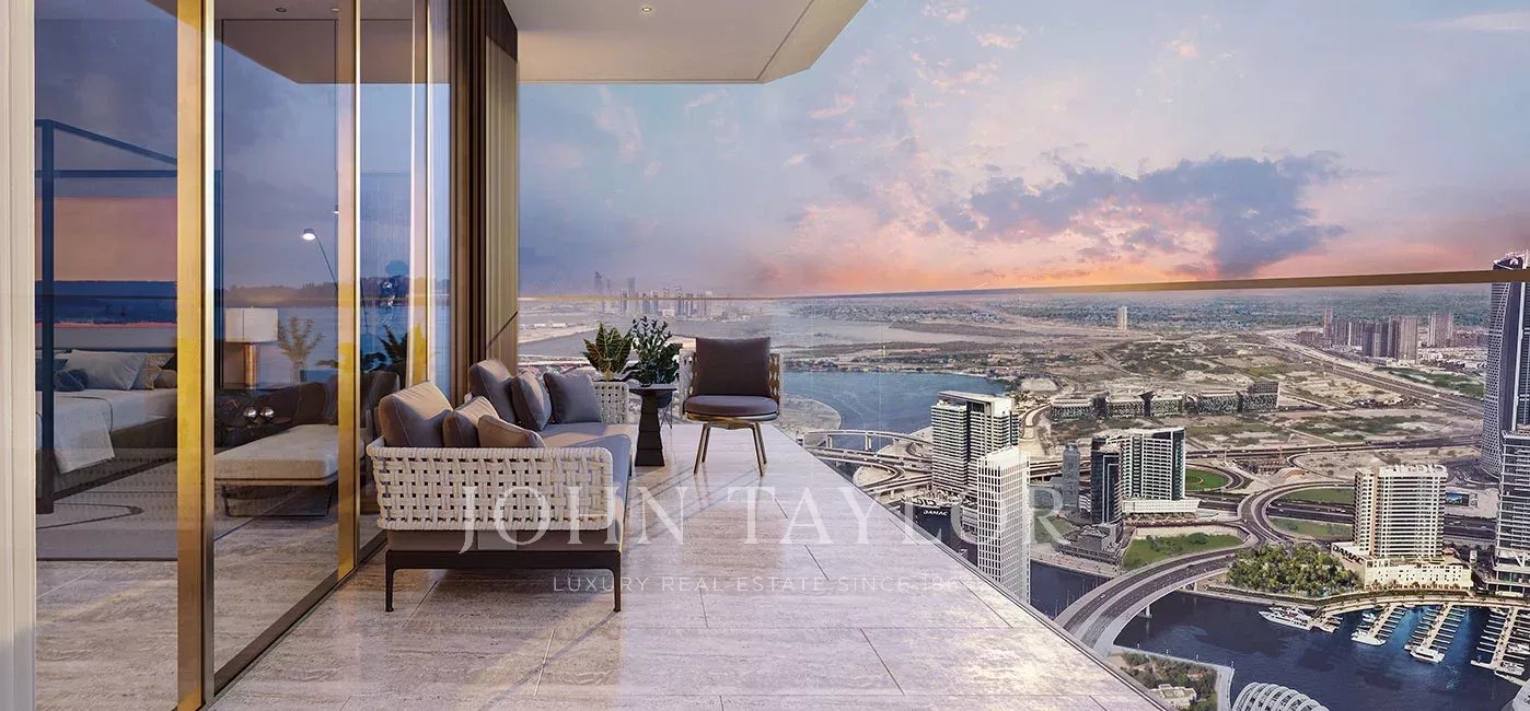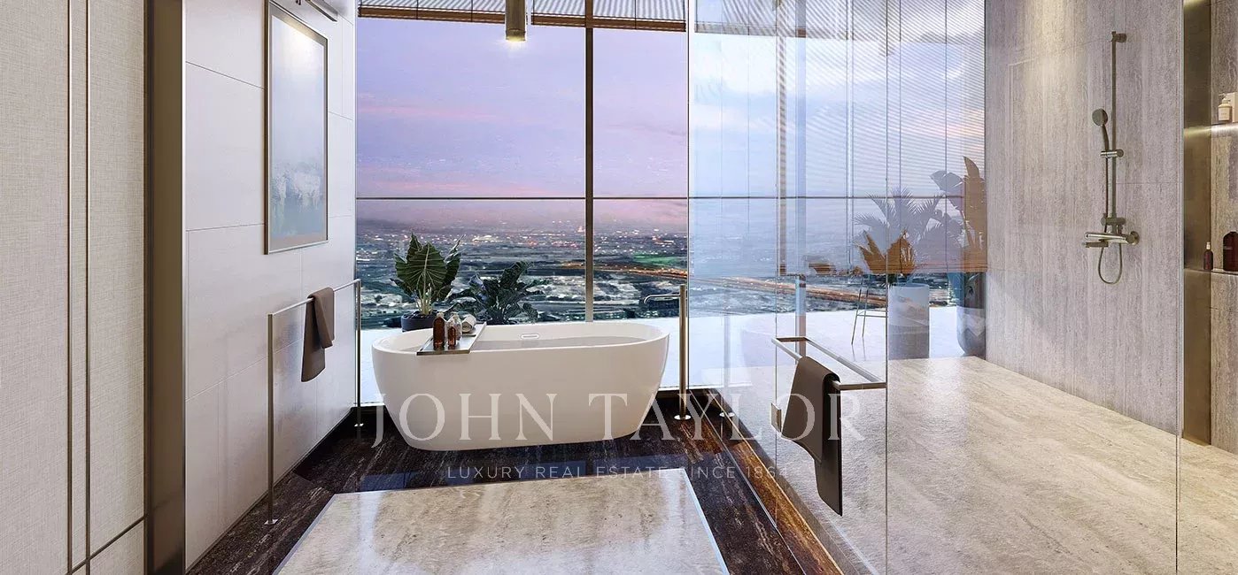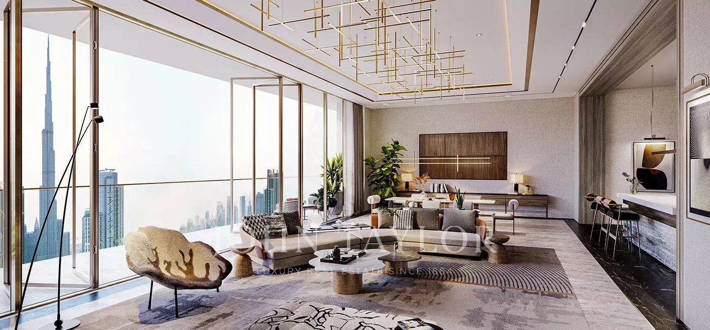 Localizada no centro da cidade, esta penthouse no St Regis Residences Financial Center Road é uma das apenas 230 casas cuidadosamente selecionadas. Atualmente fora do plano, a unidade estende-se por 4.897 pés quadrados e foi concebida num estilo contemporâneo com acabamentos elegantes, a residência foi concebida para evocar o luxo no seu espaço deslumbrante. Oferece uma vista única de 360 graus que se estende desde o Burj Khalifa e a Fonte do Dubai até ao Canal de Água do Dubai e às vistas de Zabeel.