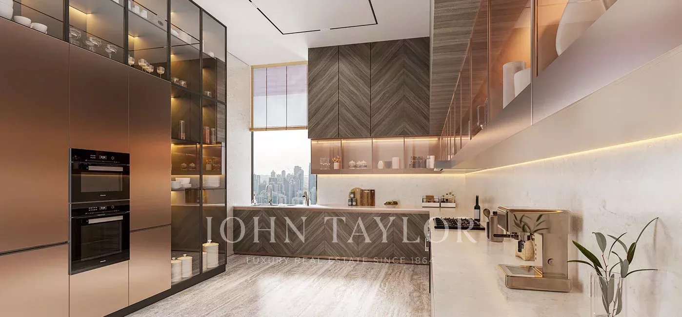 A cozinha de exposição será fornecida com electrodomésticos Miele ou equivalente e é complementada por uma cozinha húmida separada. Esta configuração de cozinha dupla permite um acolhimento perfeito, mantendo o carácter prático para a vida quotidiana.