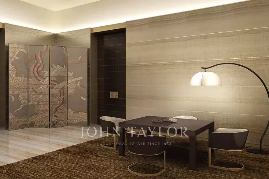 Interiores requintados: Mobilado pela Armani Casa, com mobiliário feito à medida e acabamentos de luxo.