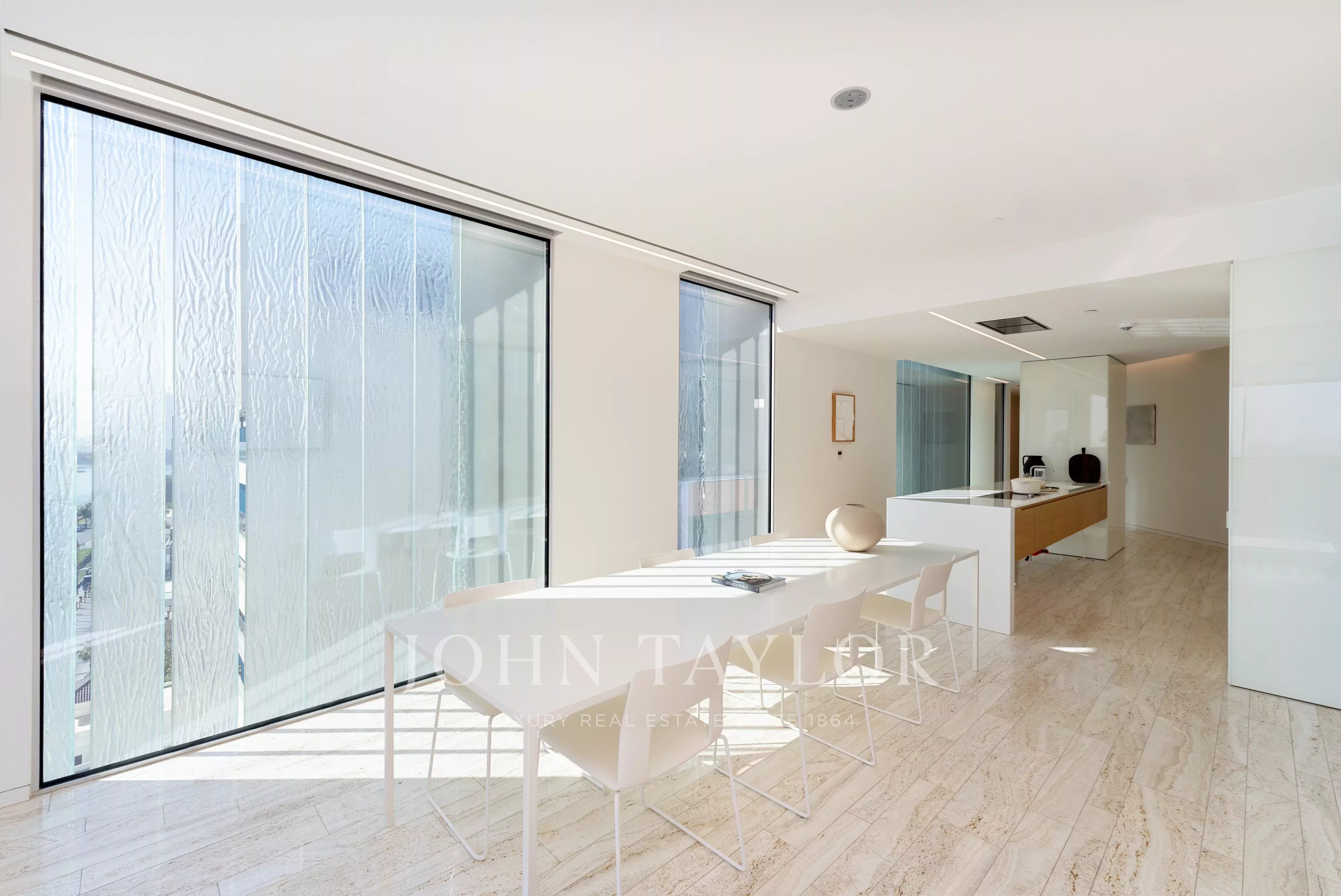 Um elevador privado abre-se diretamente para a residência, estabelecendo imediatamente uma sensação de exclusividade. A partir da entrada, o layout desdobra-se numa sala de estar repleta de luz natural e ligada sem esforço a vários terraços. A leste, um amplo terraço protegido do sol proporciona uma generosa extensão exterior do espaço habitacional, ideal para entretenimento durante todo o ano ou para momentos tranquilos com vista para os arredores.