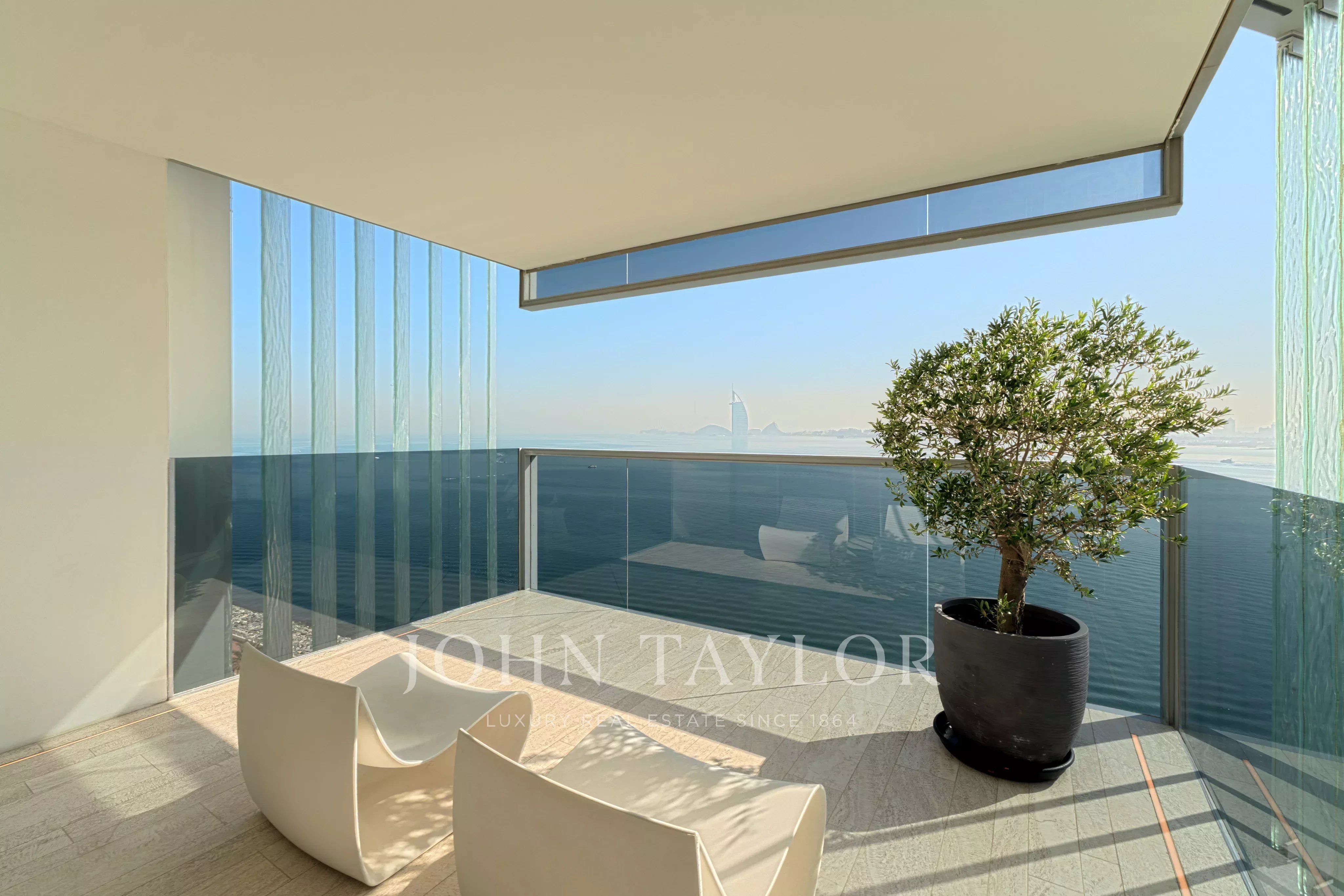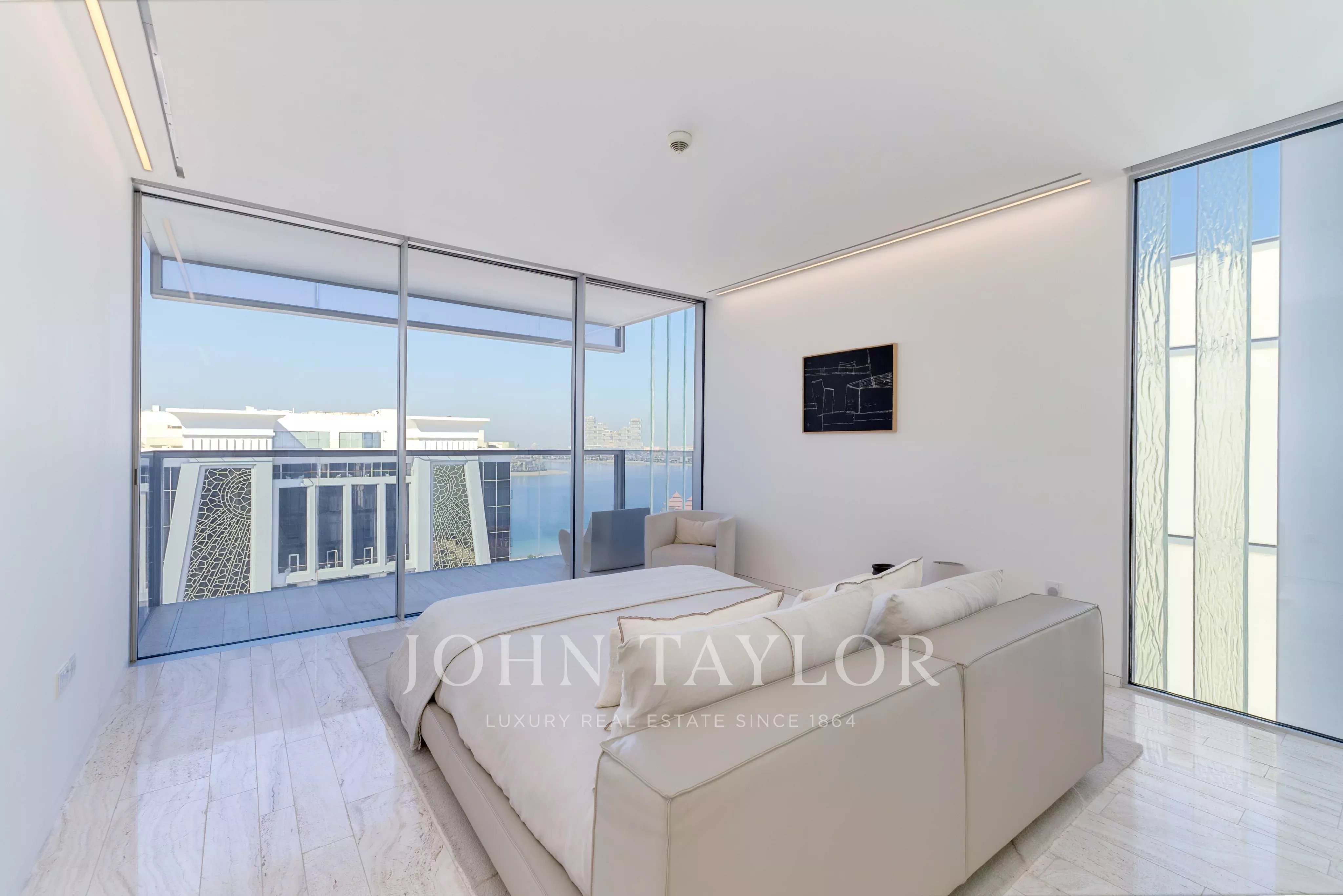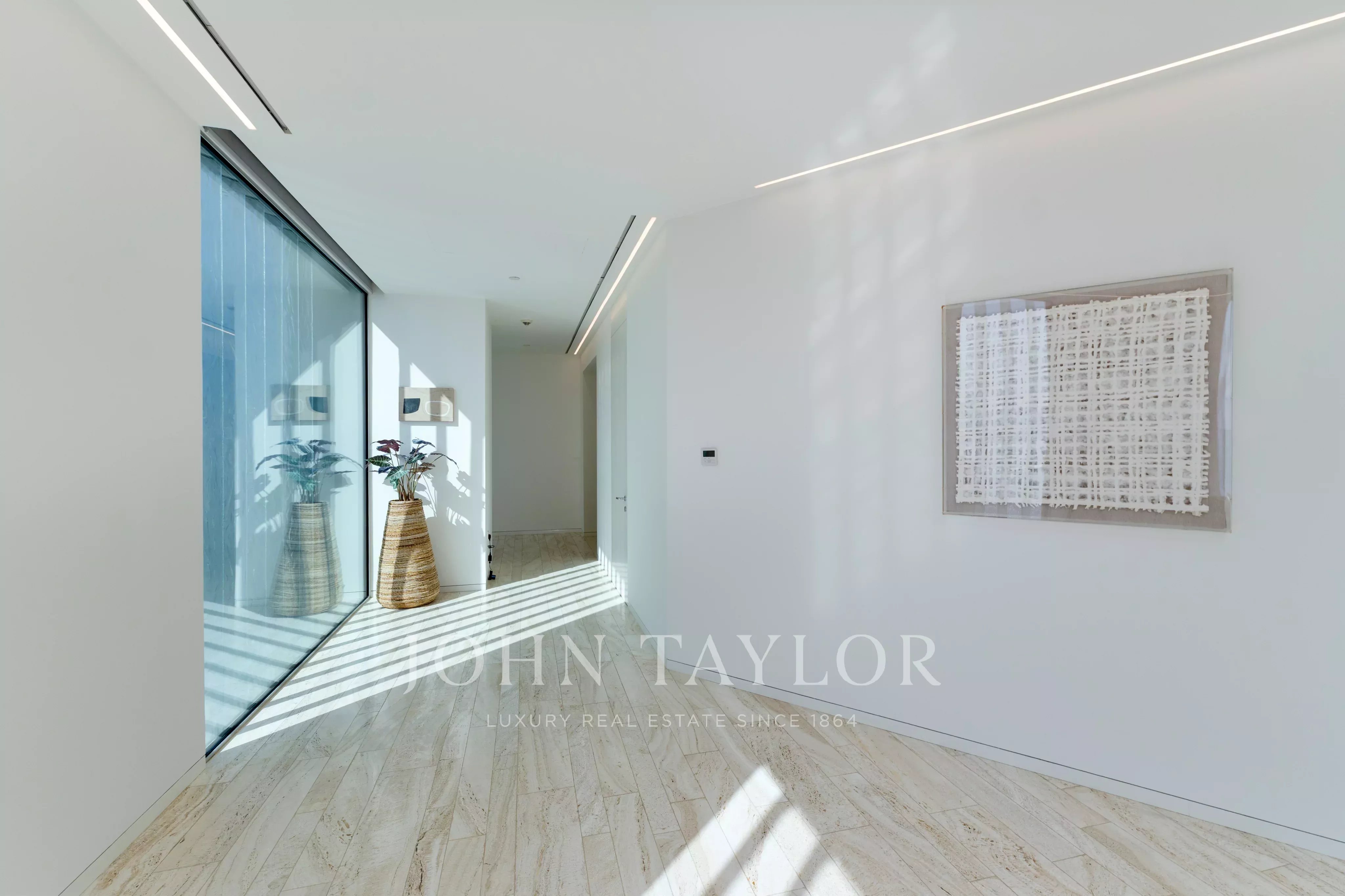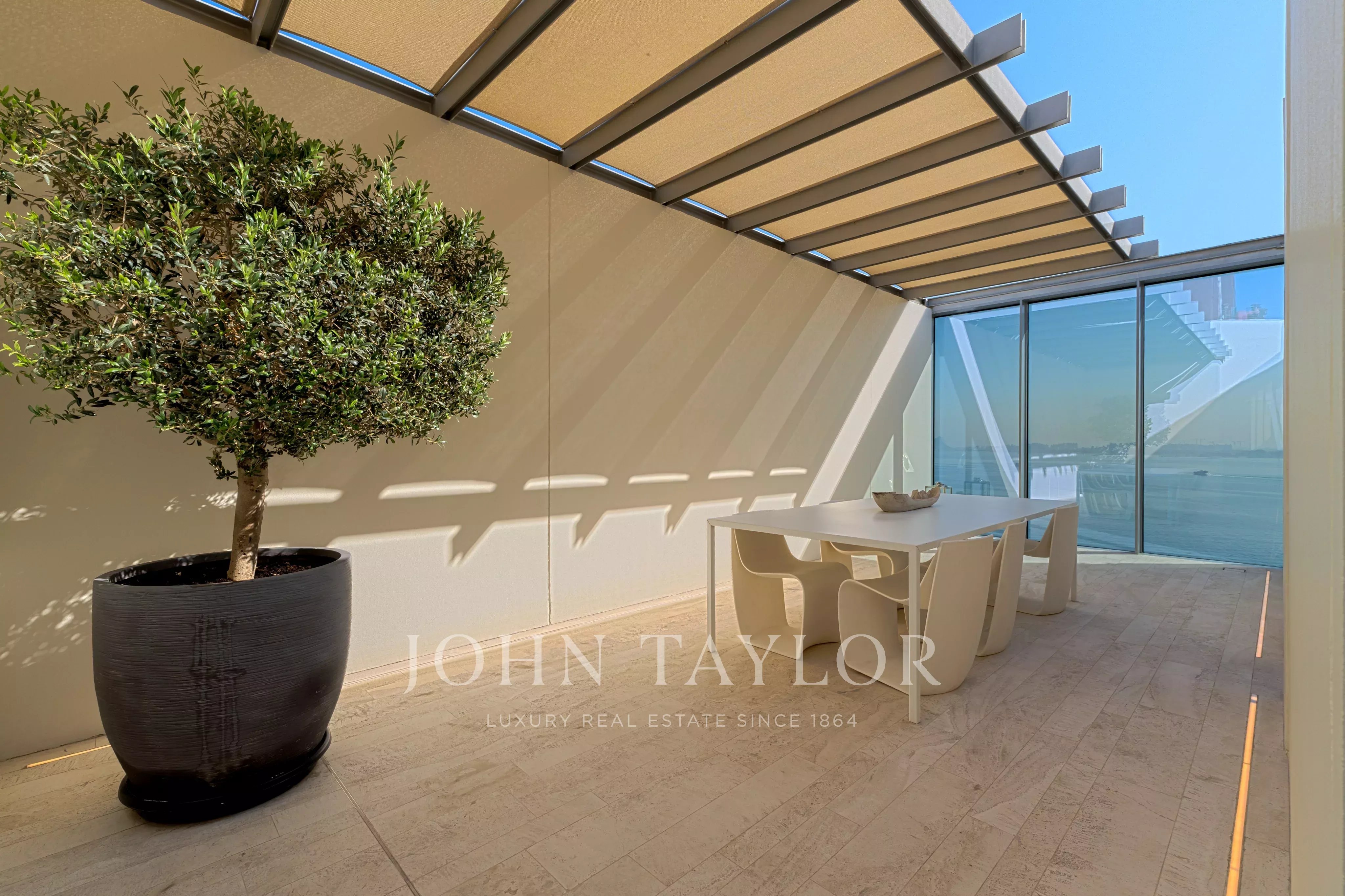 Localizado no East Crescent do Palm Jumeirah, encontra-se um apartamento impecável no Muraba Dia, concebido pelo RCR Arquitectes, galardoado com o Prémio Pritzker de 2017. Orientada de leste para oeste, a residência permite ao residente apanhar sol durante as diferentes fases do dia, enquanto desfruta de vistas para o mar e para as palmeiras. Com uma área total de construção de 4.792 pés quadrados, a casa é definida por linhas simples e detalhes minimalistas que lhe conferem uma sensação única de leveza, juntamente com janelas do chão ao teto que equilibram delicadamente a privacidade e a abertura.