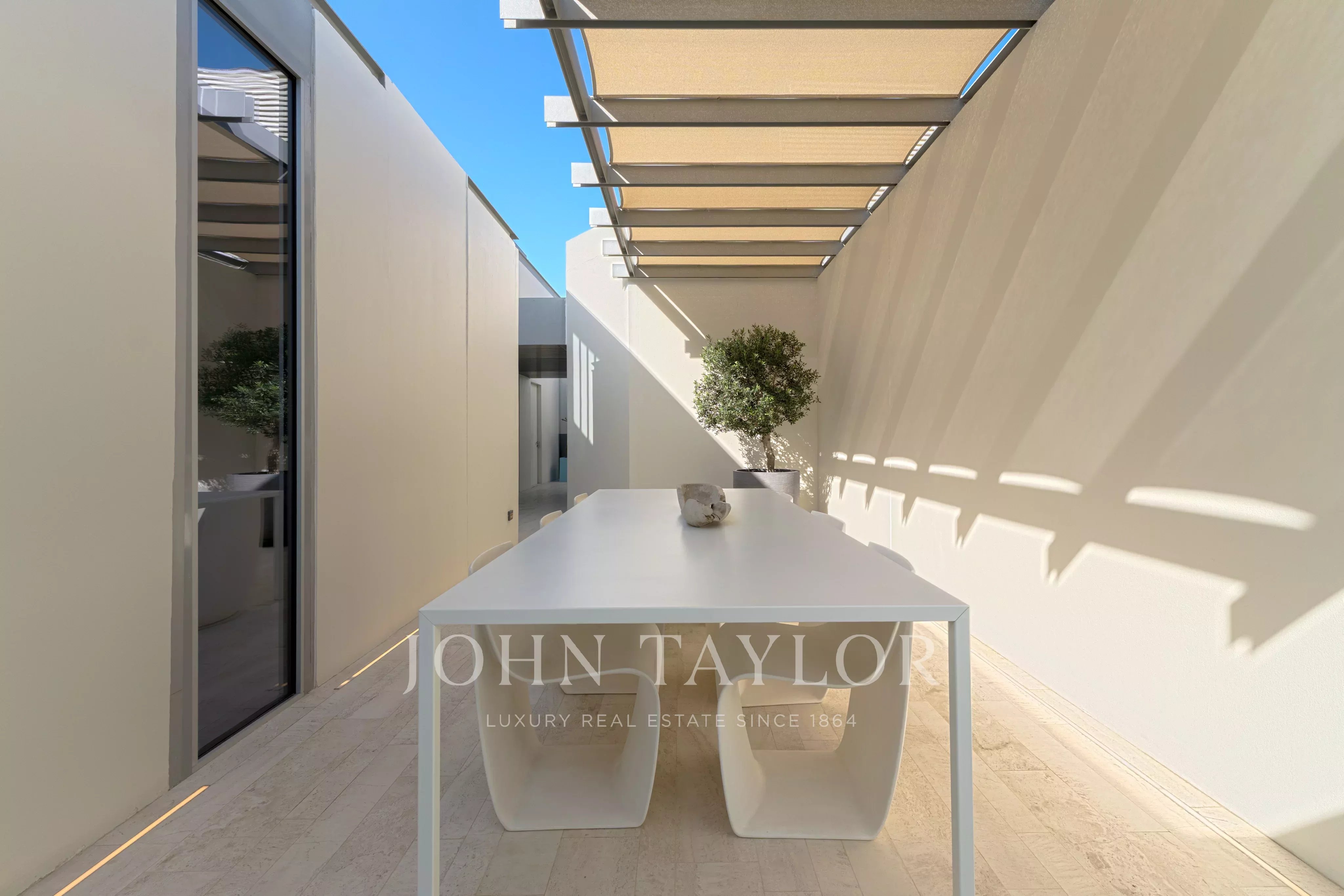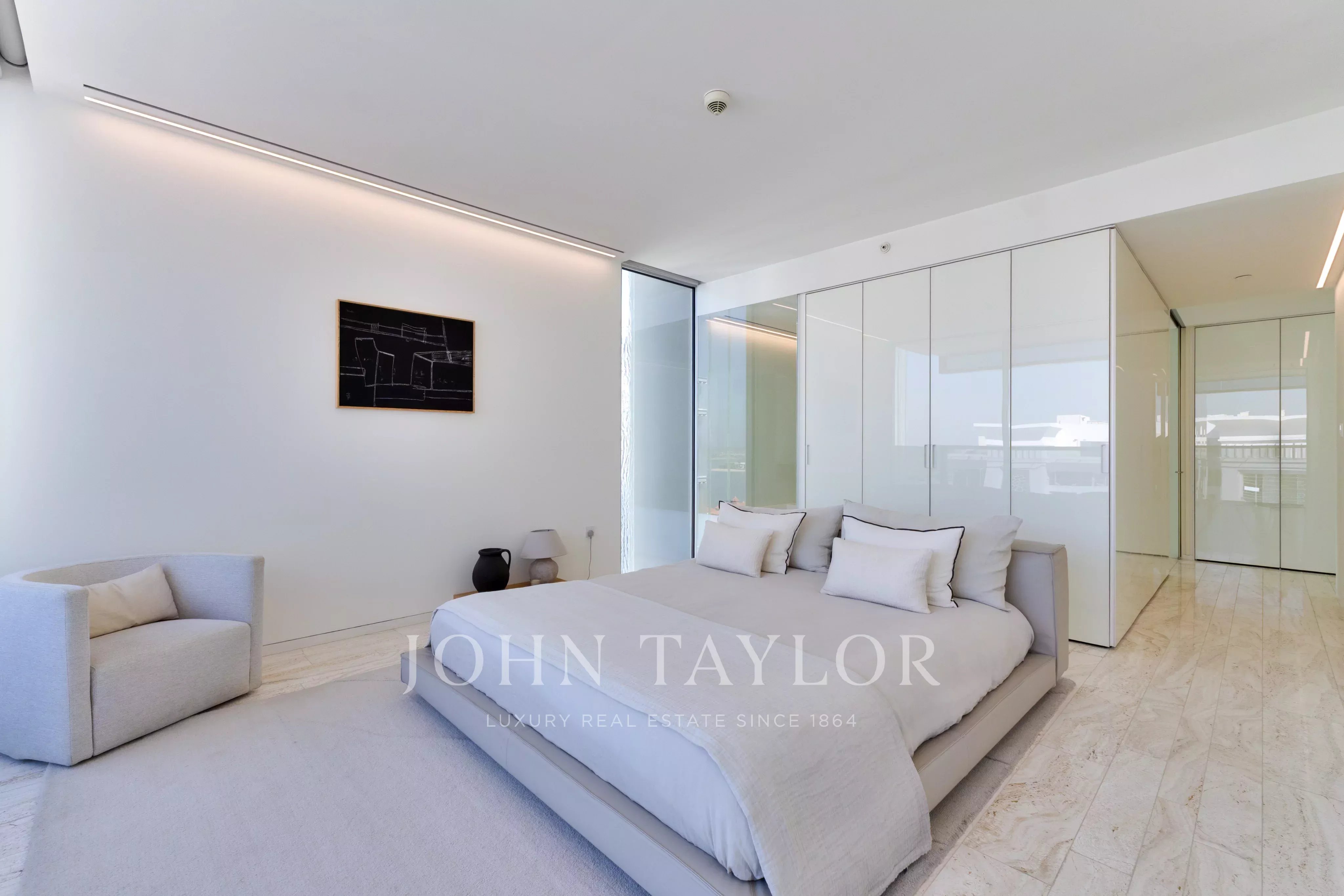 Os quatro quartos privados estão cuidadosamente dispostos de forma a homenagear a arquitetura, que combina abertura e privacidade. A suite principal oferece um retiro sereno completo com um espaçoso closet e uma luxuosa casa de banho privativa com banheira e chuveiro separado. Os três quartos adicionais são generosos em proporção e cada um tem a sua própria casa de banho privativa. Todos os quartos foram concebidos para beneficiar de luz natural e acesso a terraços, apoiando a disposição geral em plano aberto. A residência também oferece três lugares de estacionamento.