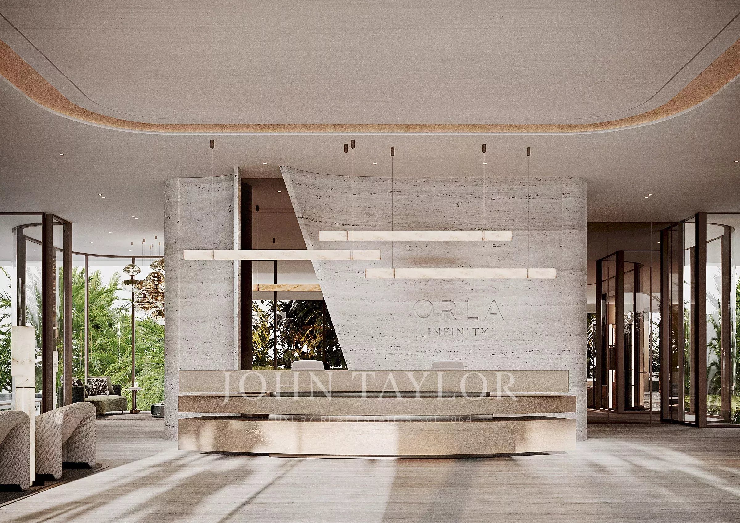 Uma entrada de automóveis ajardinada dá-lhe acesso a uma entrada privada, dando-lhe as boas-vindas ao ORLA Infinity. Ao entrar no átrio do rés do chão, um serviço de classe mundial aguarda-o, acompanhado por obras de arte requintadas e fontes de água corrente que amplificam a grandiosidade do espaço. Elevadores discretos transportam-no sem esforço da garagem segura ou do rés do chão diretamente para a sua residência, garantindo privacidade e comodidade.