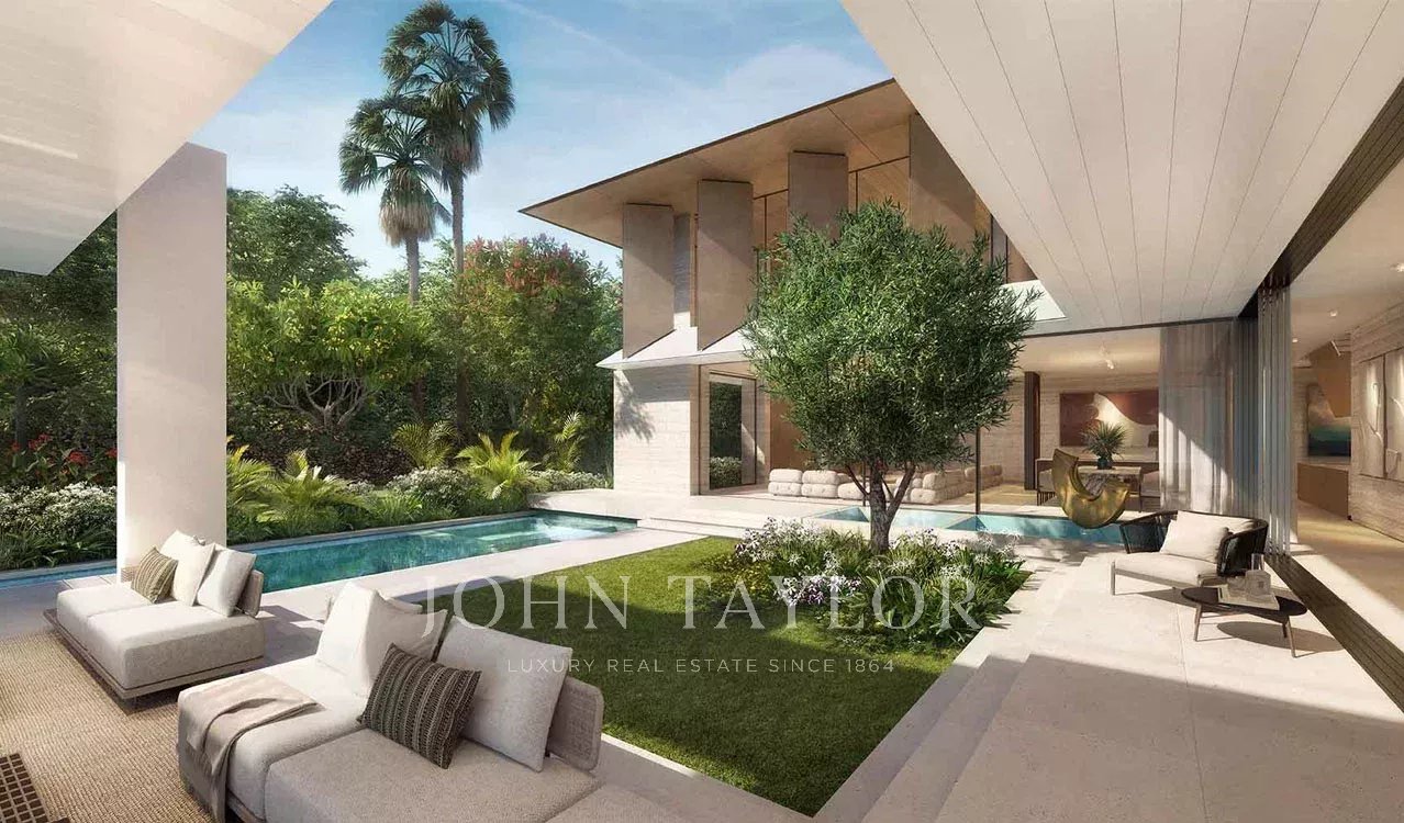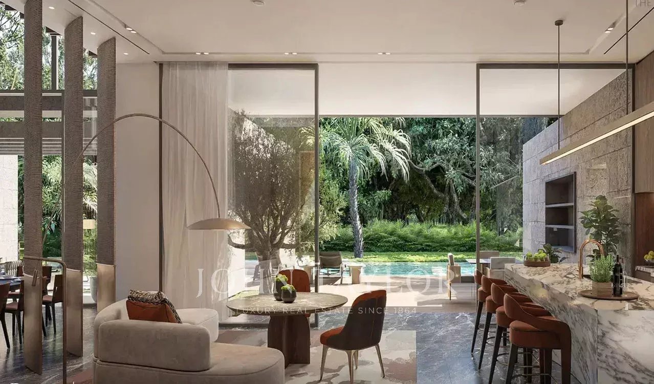 * Vida interior e exterior sem falhas: Janelas de correr do chão ao teto ligam os interiores luxuosos a jardins meticulosamente ajardinados e a uma piscina privada.