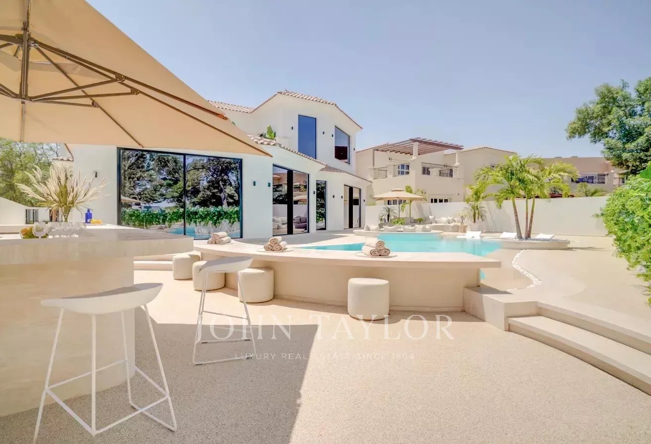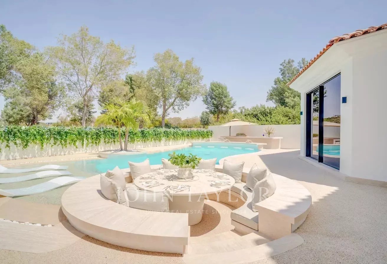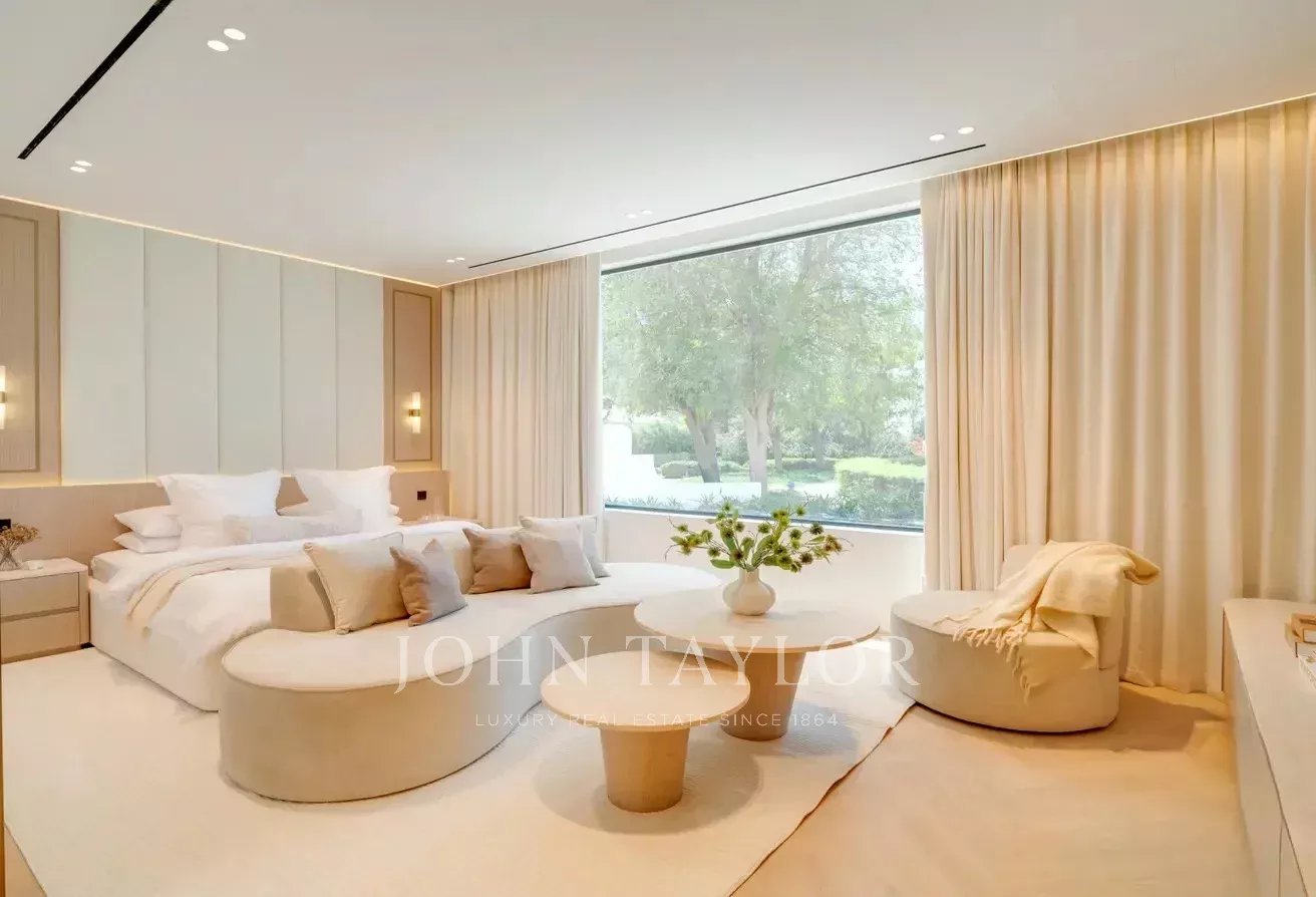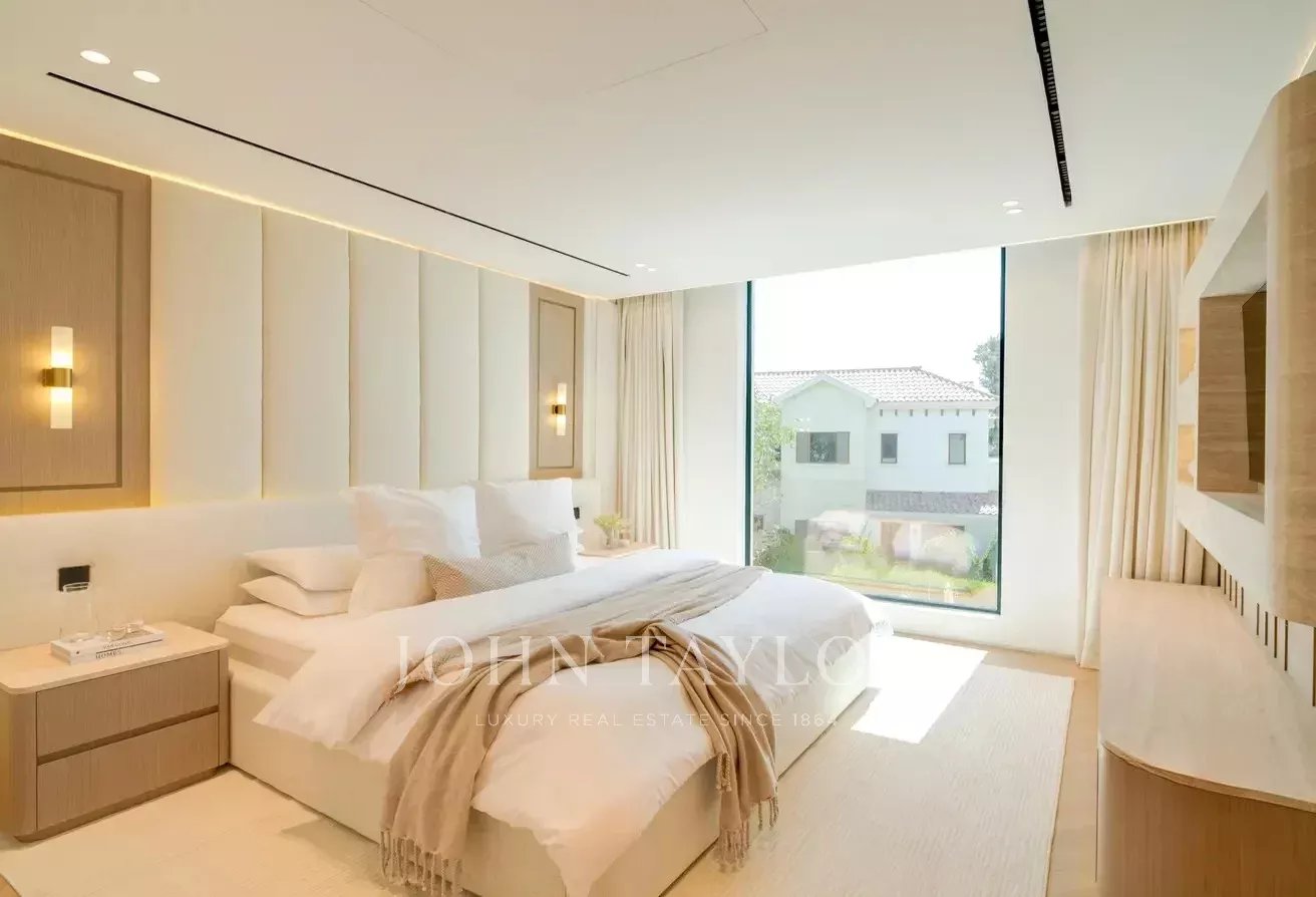 A John Taylor Dubai tem o prazer de apresentar esta excecional moradia de cinco quartos, totalmente mobilada, localizada na prestigiada comunidade Wildflower, em Jumeirah Golf Estates, o estimado anfitrião anual do DP World Tour Championship. Esta obra-prima arquitetónica é uma celebração da elegância e do artesanato, apresentando acabamentos requintados em travertino, folheados personalizados e detalhes refinados por toda a parte.