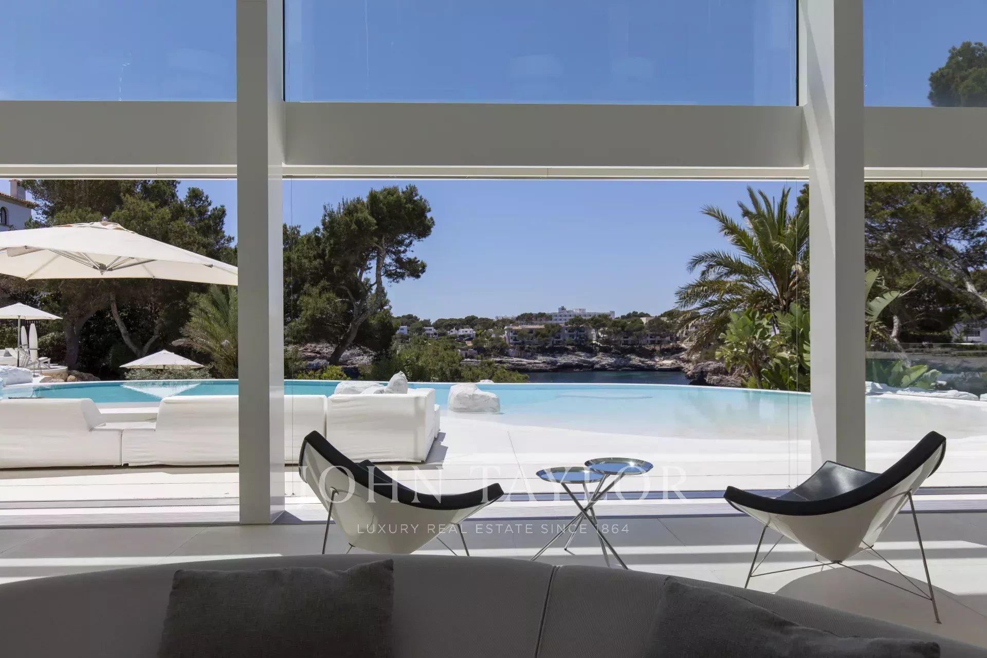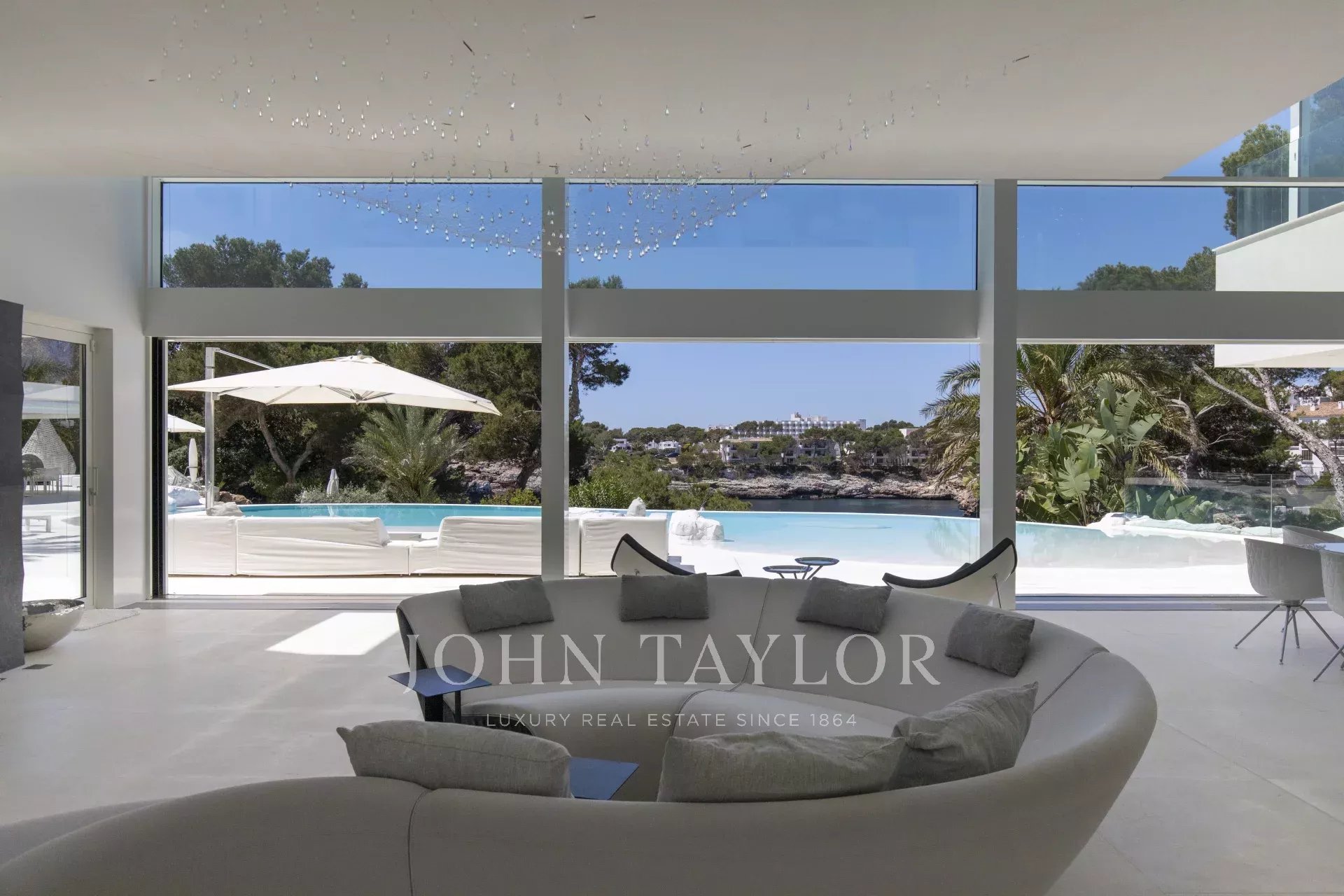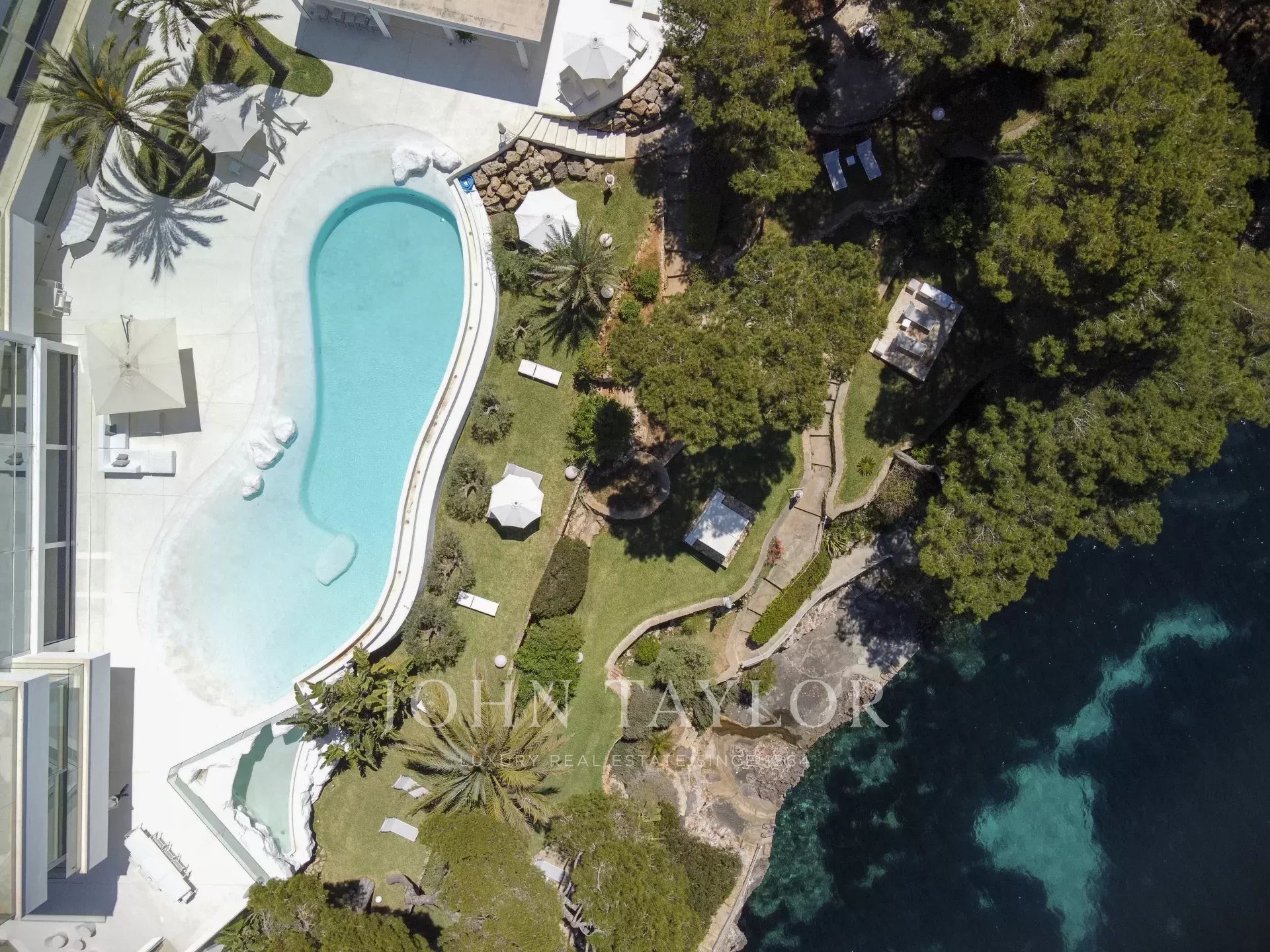 Esta propriedade está localizada em Cala D'Or e impressiona pela sua exclusividade única. O interior da Casa Roel foi projetado pelo próprio proprietário e faz da villa uma obra-prima futurista. Construída em 2013, a villa está situada no alto da baía de Cala D'Or e oferece vistas panorâmicas deslumbrantes sobre a baía. A piscina em forma de lagoa com mais de 25 metros de comprimento, a cascata de pedra, bem como o jacuzzi são outras comodidades da casa. Nos 4500 m2, a grande propriedade tem várias zonas de relaxamento com áreas para banhos de sol e um salão exterior coberto com bar e churrasco. O acesso privado ao mar e um ancoradouro privado para iates até 25 metros também estão entre os destaques. A oliveira com 100 anos integrada no hall de entrada sugere a singularidade da propriedade assim que se entra. O ar condicionado e o aquecimento por piso radiante encontram-se em toda a casa. A área de estar, o terraço no telhado e a suite principal estão equipados com um sistema de som Sonos. A cozinha de design totalmente equipada com frigoríficos para vinhos não deixa nada a desejar. A Casa Roel tem 5 quartos duplos e uma suite principal. A suite principal, bem como 3 quartos duplos, têm cada um a sua própria casa de banho privativa. Dois dos 6 quartos partilham uma casa de banho. Outras comodidades da casa incluem a sala de fitness, equipada com equipamento de alta qualidade e vistas para o mar, a sala de bilhar e a sala multimédia interna com ecrã 3D e matraquilhos. Devido à iluminação excecional, a moradia oferece um ambiente especial à noite, sendo o local perfeito para umas férias exclusivas.