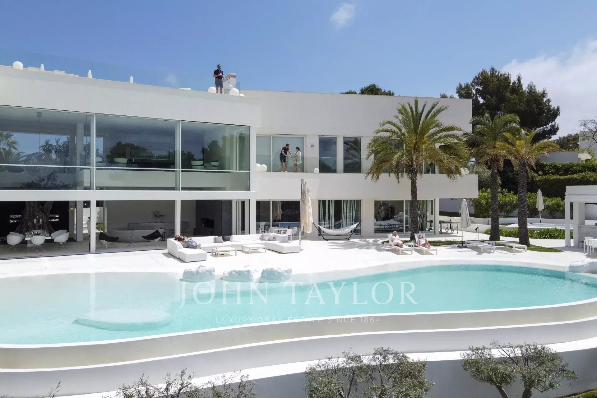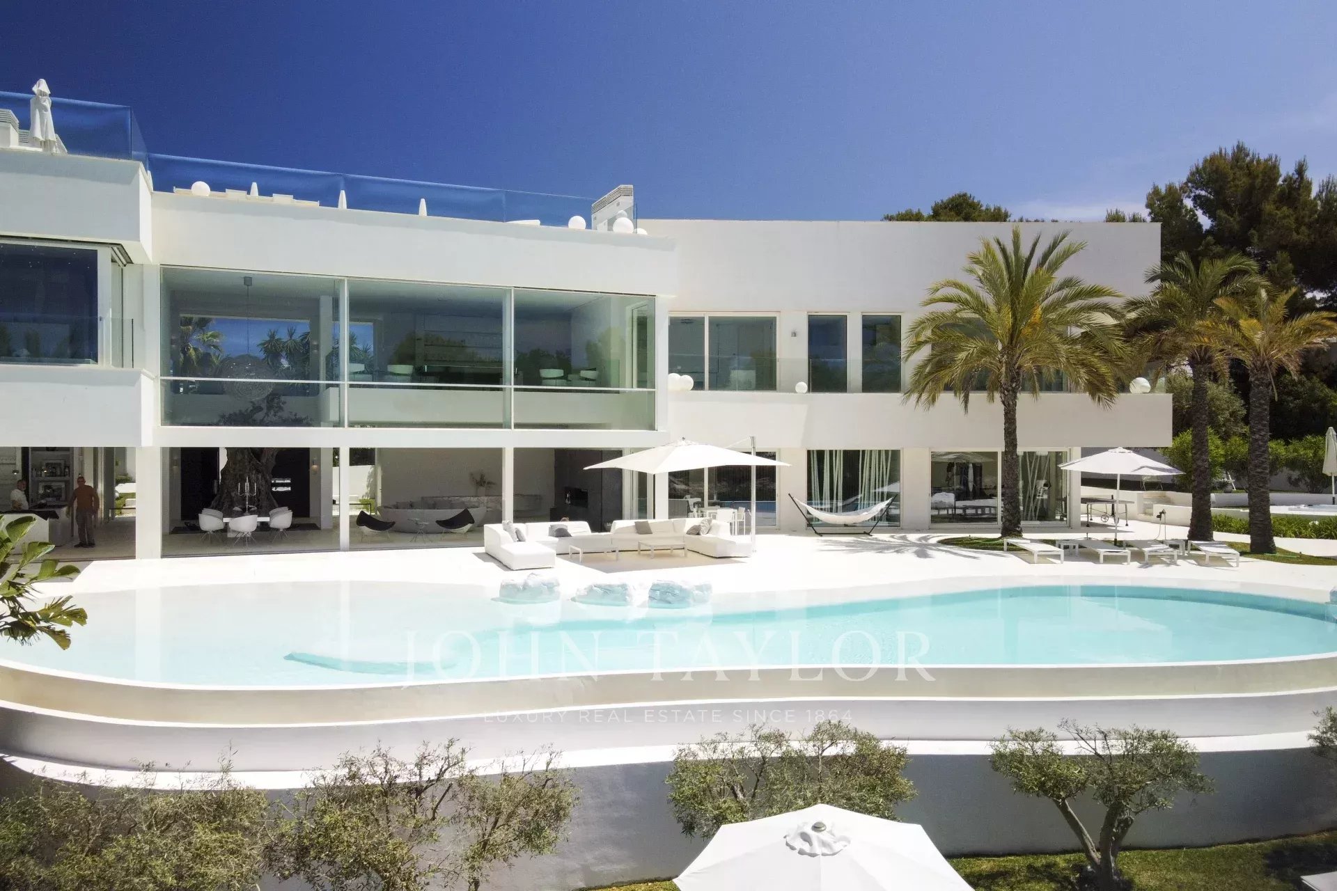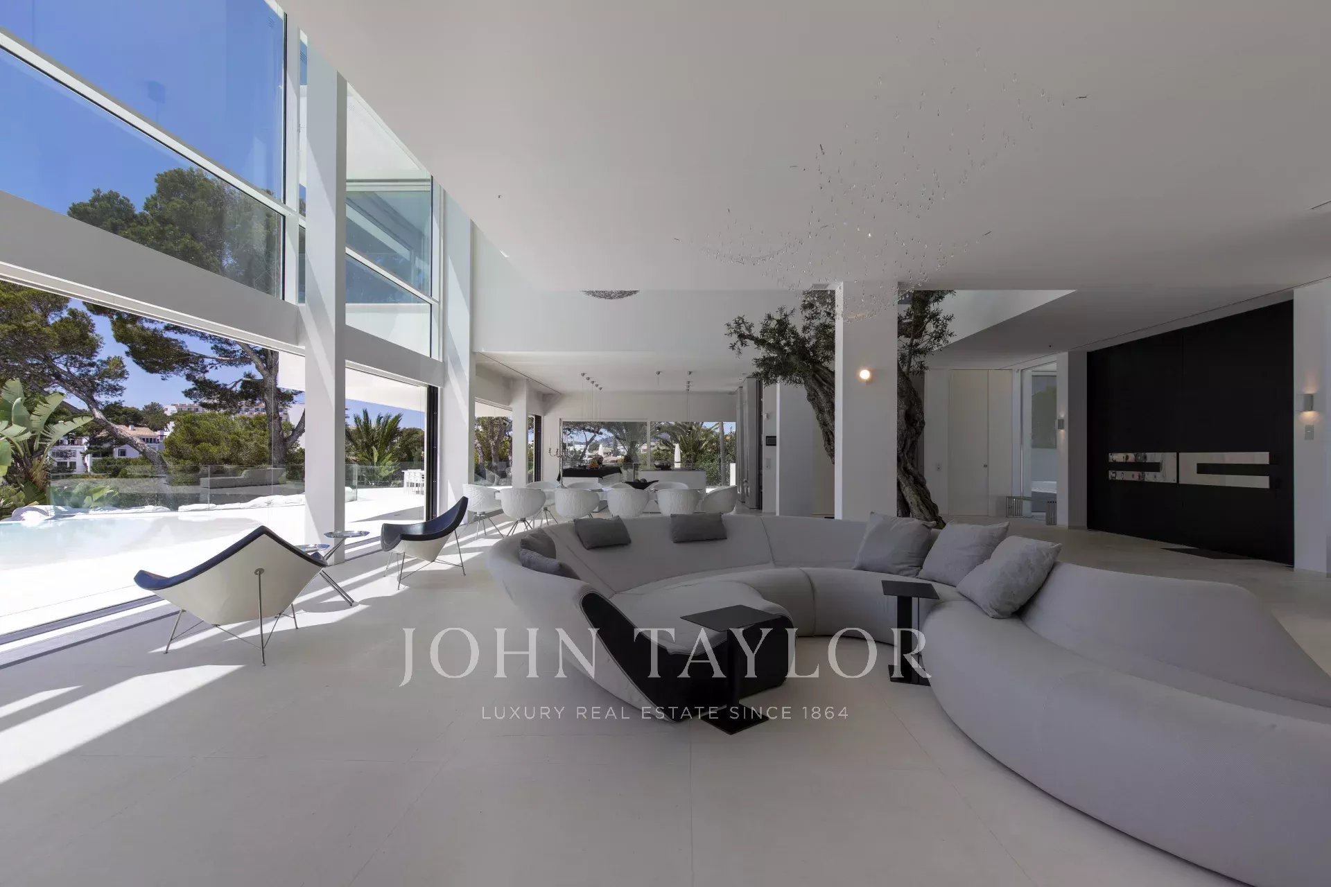 Esta propriedade está localizada em Cala D'Or e impressiona pela sua exclusividade única. O interior da Casa Roel foi projetado pelo próprio proprietário e faz da villa uma obra-prima futurista. Construída em 2013, a villa está situada no alto da baía de Cala D'Or e oferece vistas panorâmicas deslumbrantes sobre a baía. A piscina em forma de lagoa com mais de 25 metros de comprimento, a cascata de pedra, bem como o jacuzzi são outras comodidades da casa. Nos 4500 m2, a grande propriedade tem várias zonas de relaxamento com áreas para banhos de sol e um salão exterior coberto com bar e churrasco. O acesso privado ao mar e um ancoradouro privado para iates até 25 metros também estão entre os destaques. A oliveira com 100 anos integrada no hall de entrada sugere a singularidade da propriedade assim que se entra. O ar condicionado e o aquecimento por piso radiante encontram-se em toda a casa. A área de estar, o terraço no telhado e a suite principal estão equipados com um sistema de som Sonos. A cozinha de design totalmente equipada com frigoríficos para vinhos não deixa nada a desejar. A Casa Roel tem 5 quartos duplos e uma suite principal. A suite principal, bem como 3 quartos duplos, têm cada um a sua própria casa de banho privativa. Dois dos 6 quartos partilham uma casa de banho. Outras comodidades da casa incluem a sala de fitness, equipada com equipamento de alta qualidade e vistas para o mar, a sala de bilhar e a sala multimédia interna com ecrã 3D e matraquilhos. Devido à iluminação excecional, a moradia oferece um ambiente especial à noite, sendo o local perfeito para umas férias exclusivas.