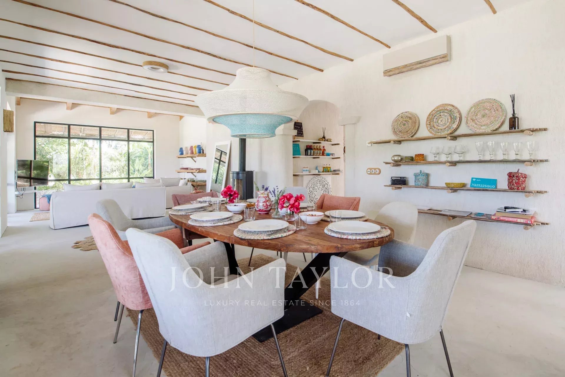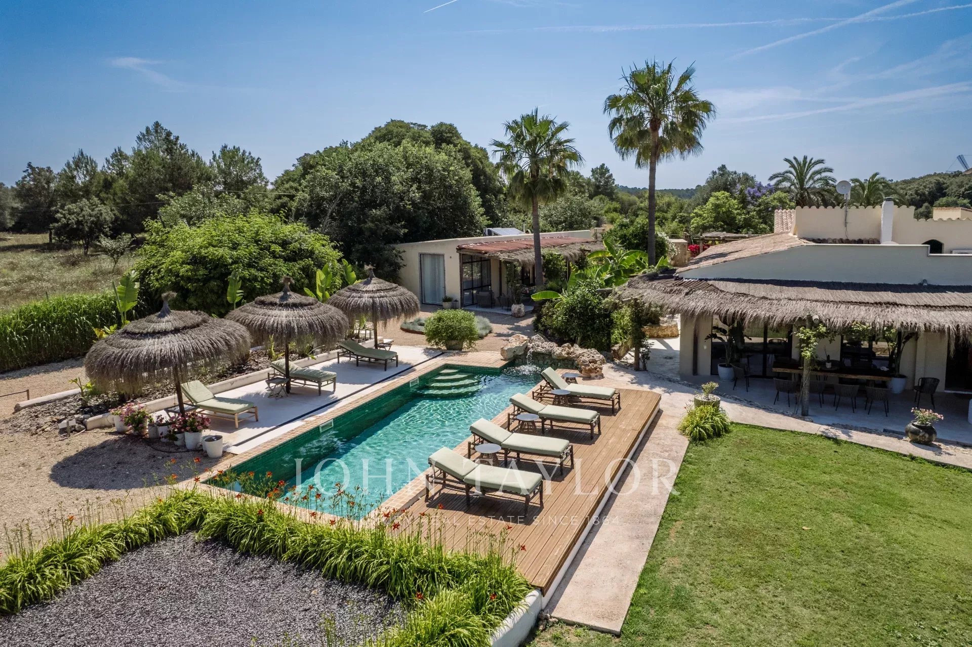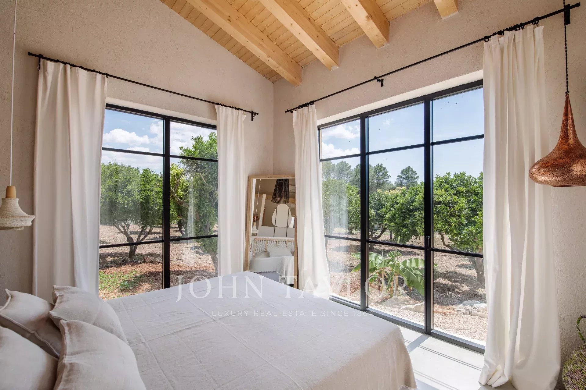 A bela Finca Only Summer foi completamente renovada em 2020 e cativa com o seu design extraordinário. A ligação com a natureza está aqui em primeiro plano. Texturas e cores quentes, combinadas com um design moderno, criam uma atmosfera de bem-estar muito especial. Um retiro exótico para relaxar. A quinta oferece espaço para até 10 pessoas em 5 quartos duplos. 3 dos quartos encontram-se na casa principal e 2 no anexo. Todos os quartos têm uma casa de banho privativa com duche, ar condicionado e aquecimento por piso radiante. A cozinha em plano aberto é luminosa e a sala de estar adjacente é inundada de luz devido à grande janela frontal. A casa tem televisão por satélite, Wifi e um sistema de música Sonos. Uma grande piscina na área exterior (aquecida por um custo adicional) proporciona um refresco nos dias quentes. Na propriedade no coração de Maiorca, rodeada por uma bela paisagem com vista para as montanhas Tramuntana, existem inúmeras árvores de fruto e uma horta orgânica. Na Finca Only Summer há também um paddock de mais de 10.000 m2 com cavalos de aspeto majestoso. A aldeia vizinha de Llubi fica apenas a alguns minutos de distância e a capital da ilha, Palma, fica a cerca de 45 minutos de carro.