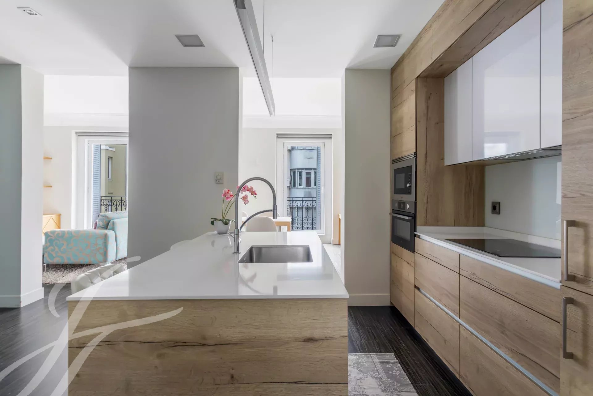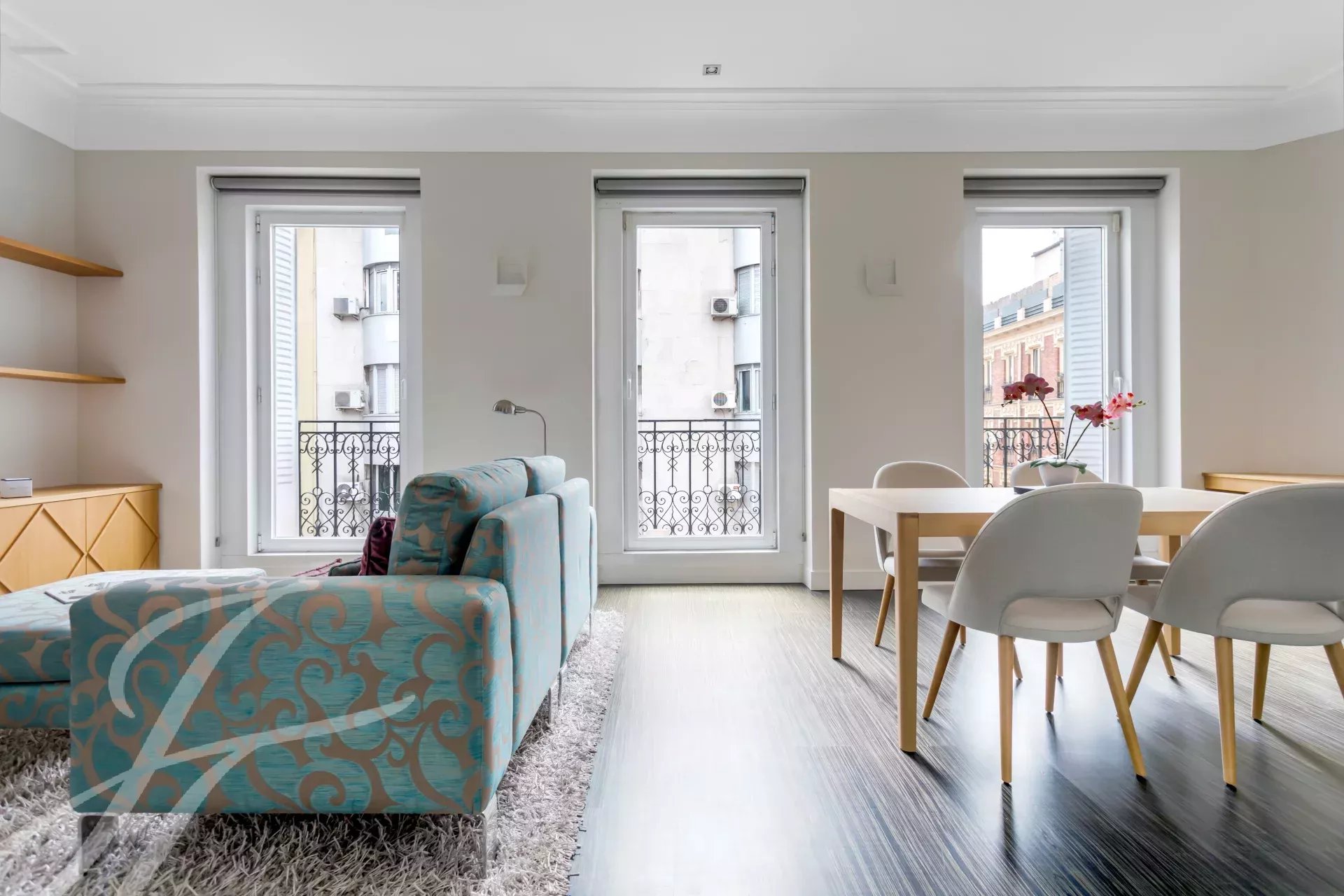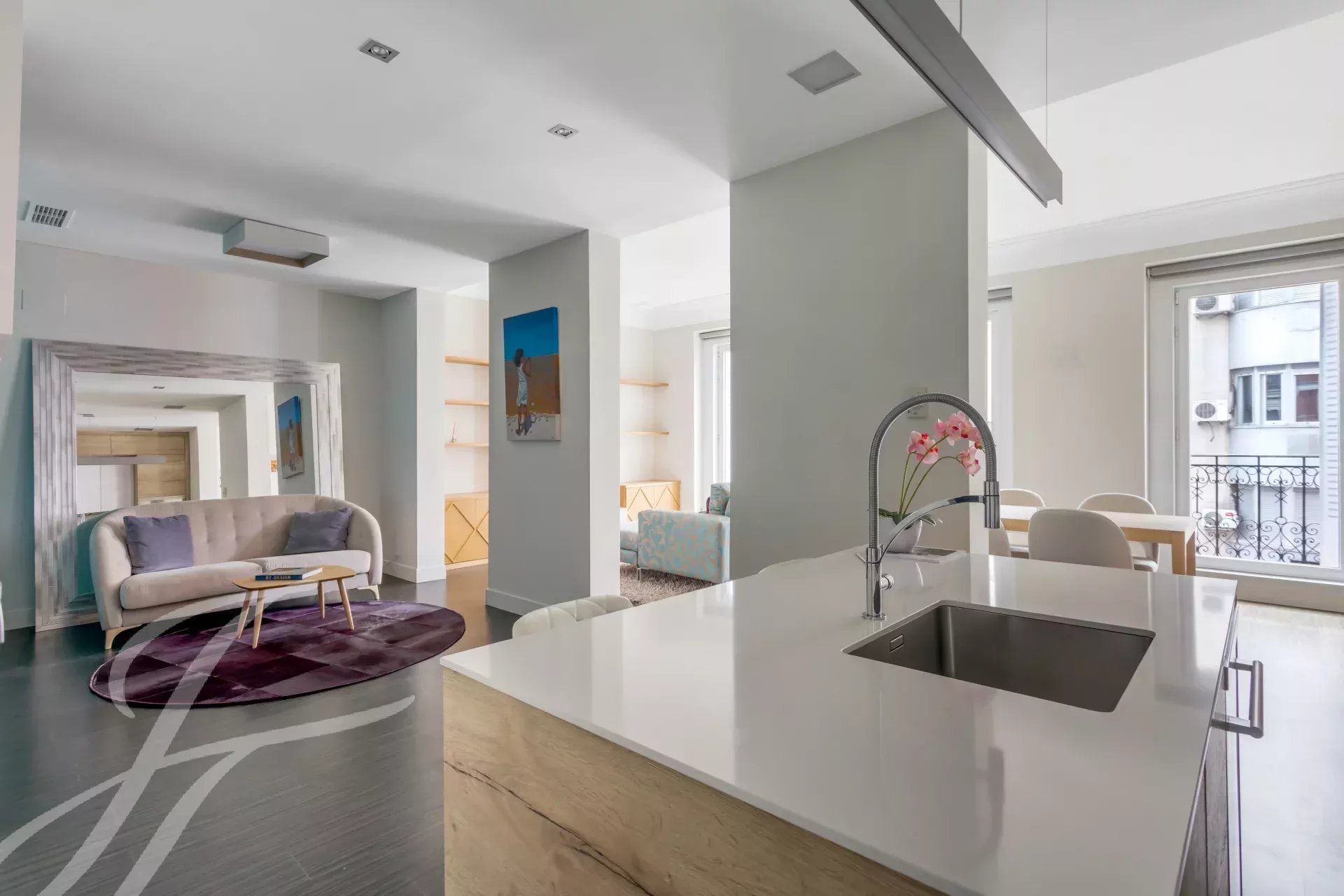 Apresentamos esta espetacular casa numa das melhores zonas de Madrid, no bairro de Recoletos. A propriedade distingue-se pelos seus tectos altos e varandas elegantes.