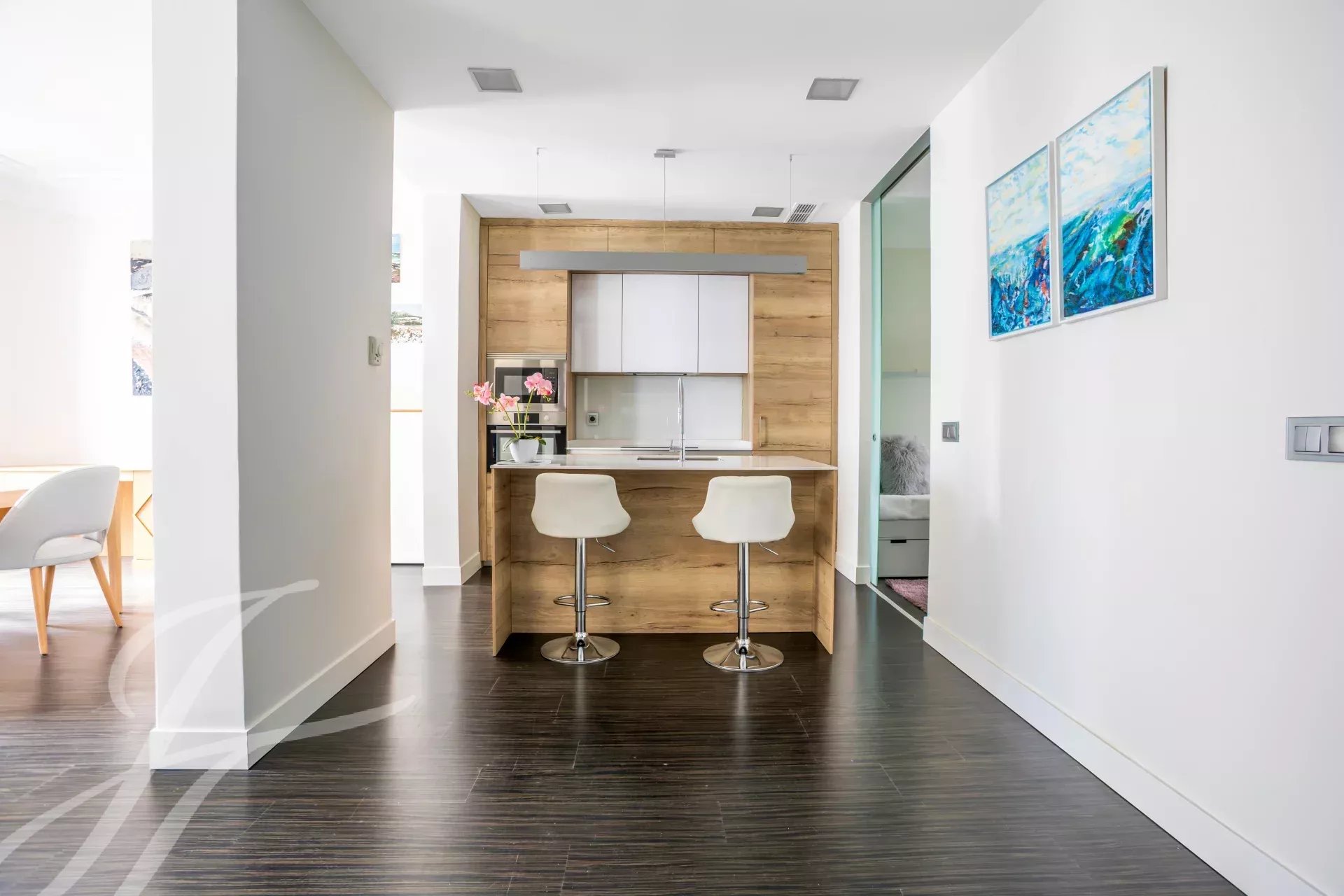 A sala de estar e jantar, virada a sul, goza de excelente luz natural e integra-se perfeitamente com a cozinha, equipada com electrodomésticos topo de gama. Este grande espaço aberto é ideal para reuniões e momentos inesquecíveis com a família e amigos.