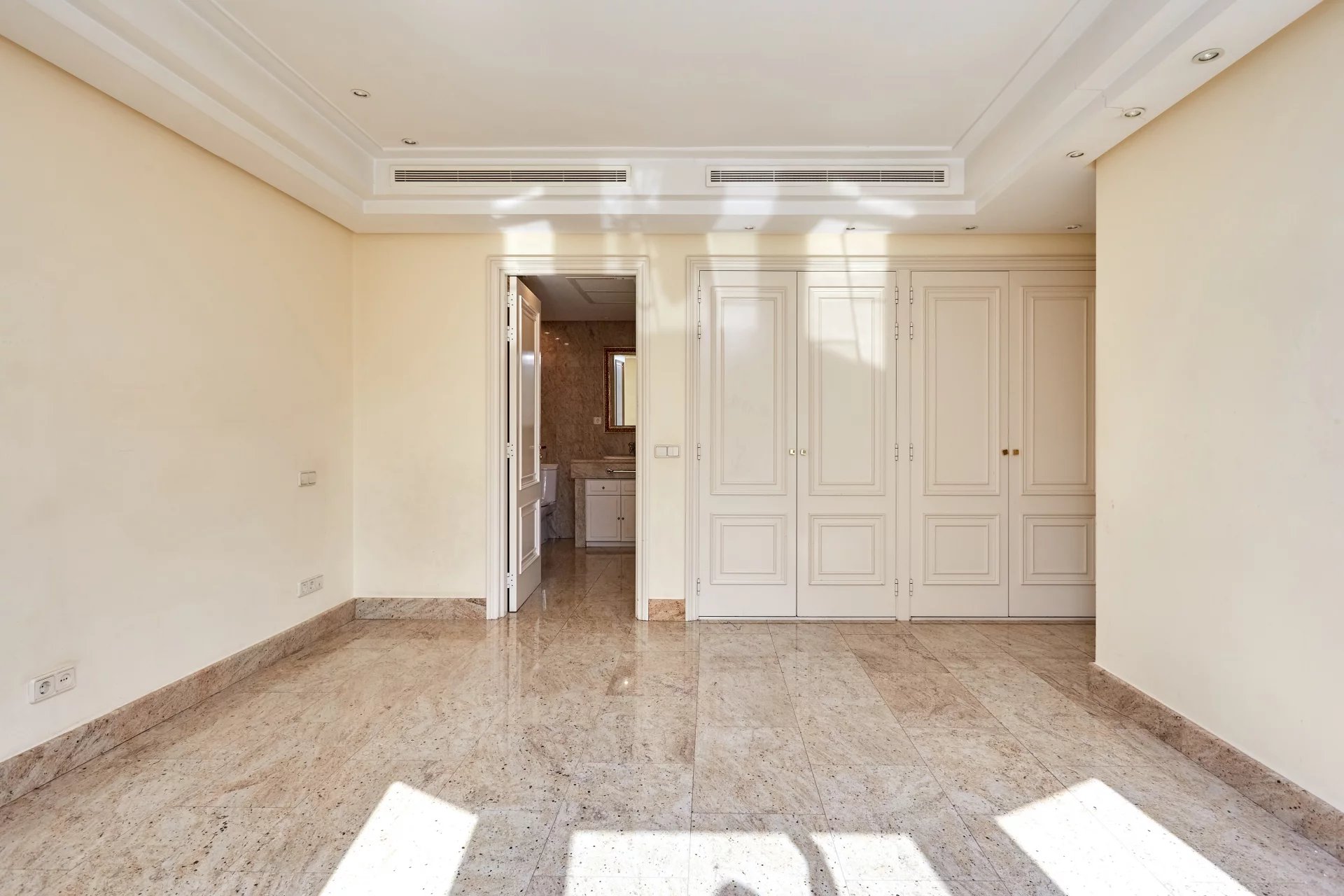 A zona de descanso tem três grandes quartos, dois deles com casa de banho privativa e grandes janelas. O imóvel tem dois cofres e destaca-se pela sua ampla capacidade de arrumação devido ao grande número de roupeiros.