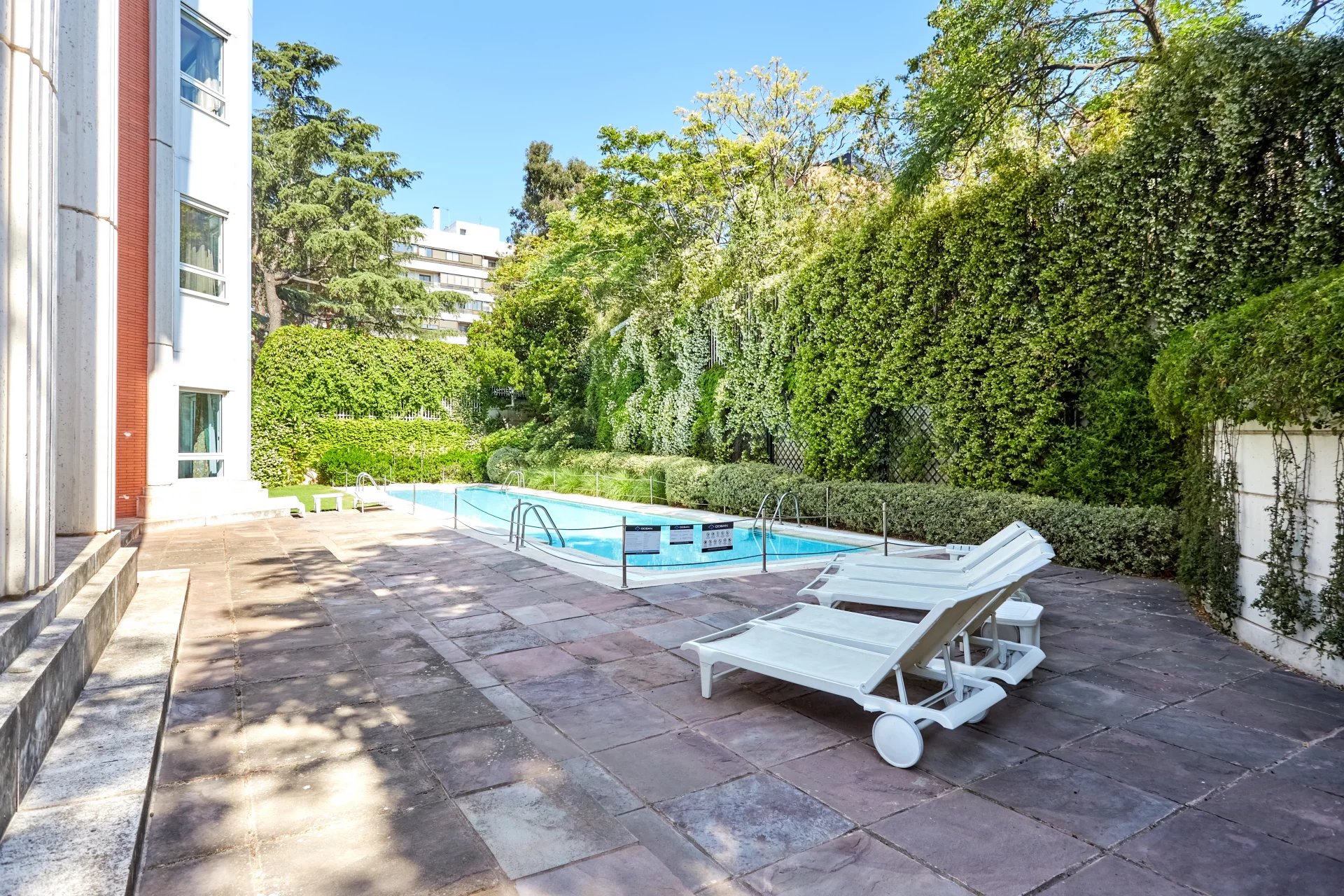 O prédio, com apenas nove vizinhos, tem aquecimento central, ar condicionado quente/frio, domótica. Na construção deste empreendimento foram utilizados materiais de alta qualidade, tanto nas habitações como nas zonas comuns, onde encontramos um ginásio, uma grande piscina e bonitos jardins que rodeiam todo o edifício. A propriedade tem segurança 24 horas por dia. Dois grandes lugares de estacionamento e uma arrecadação estão incluídos no preço.