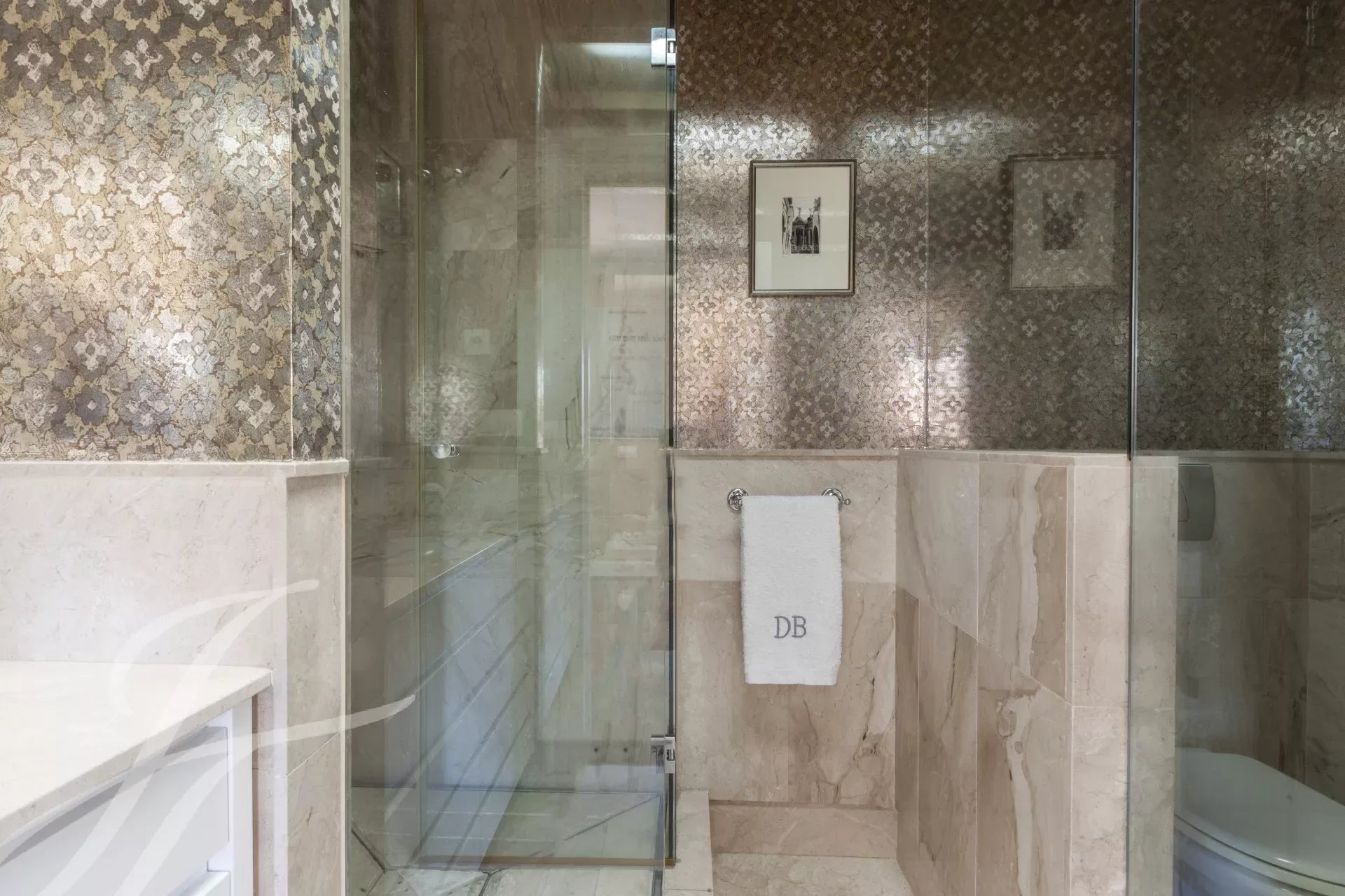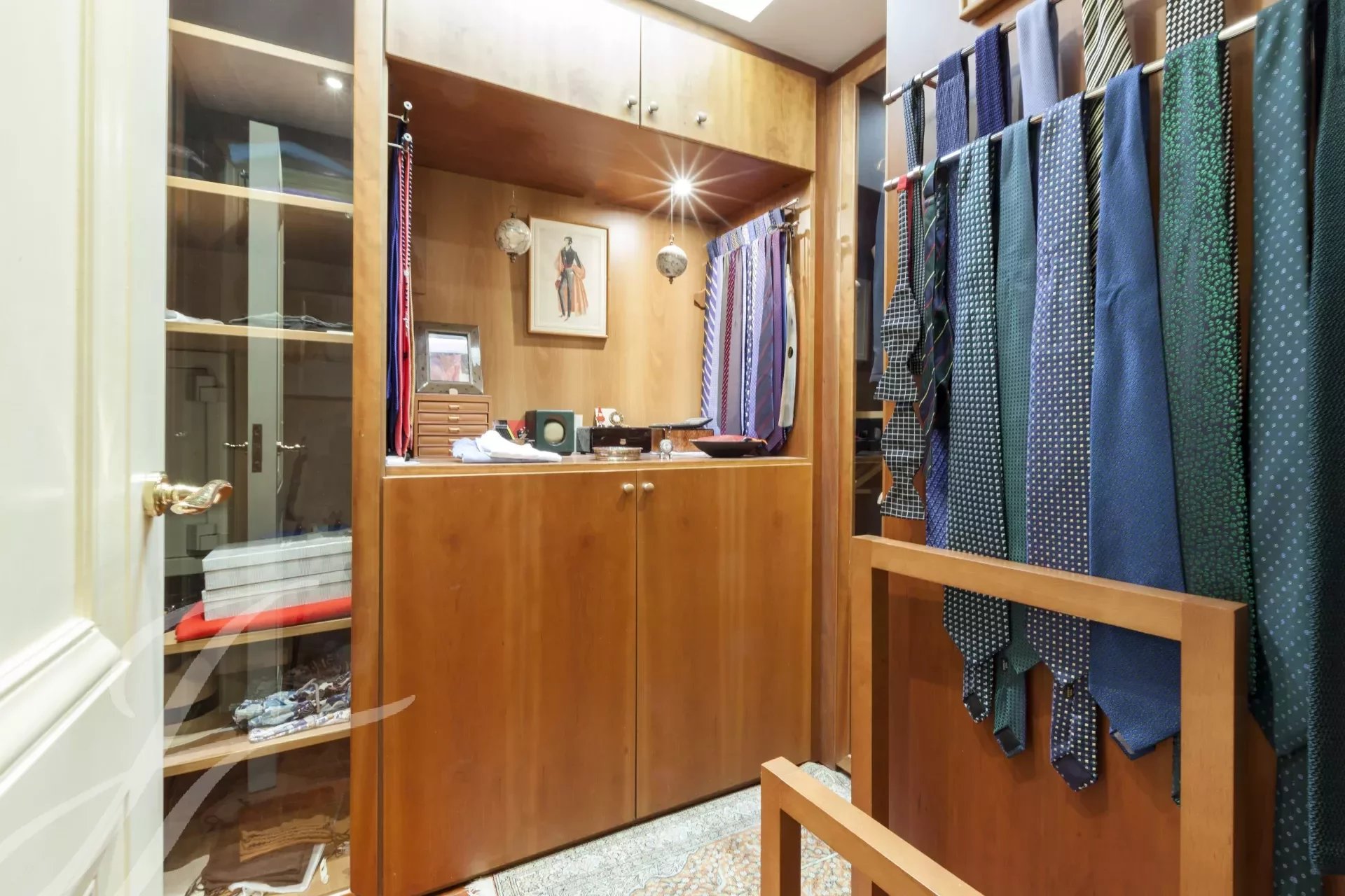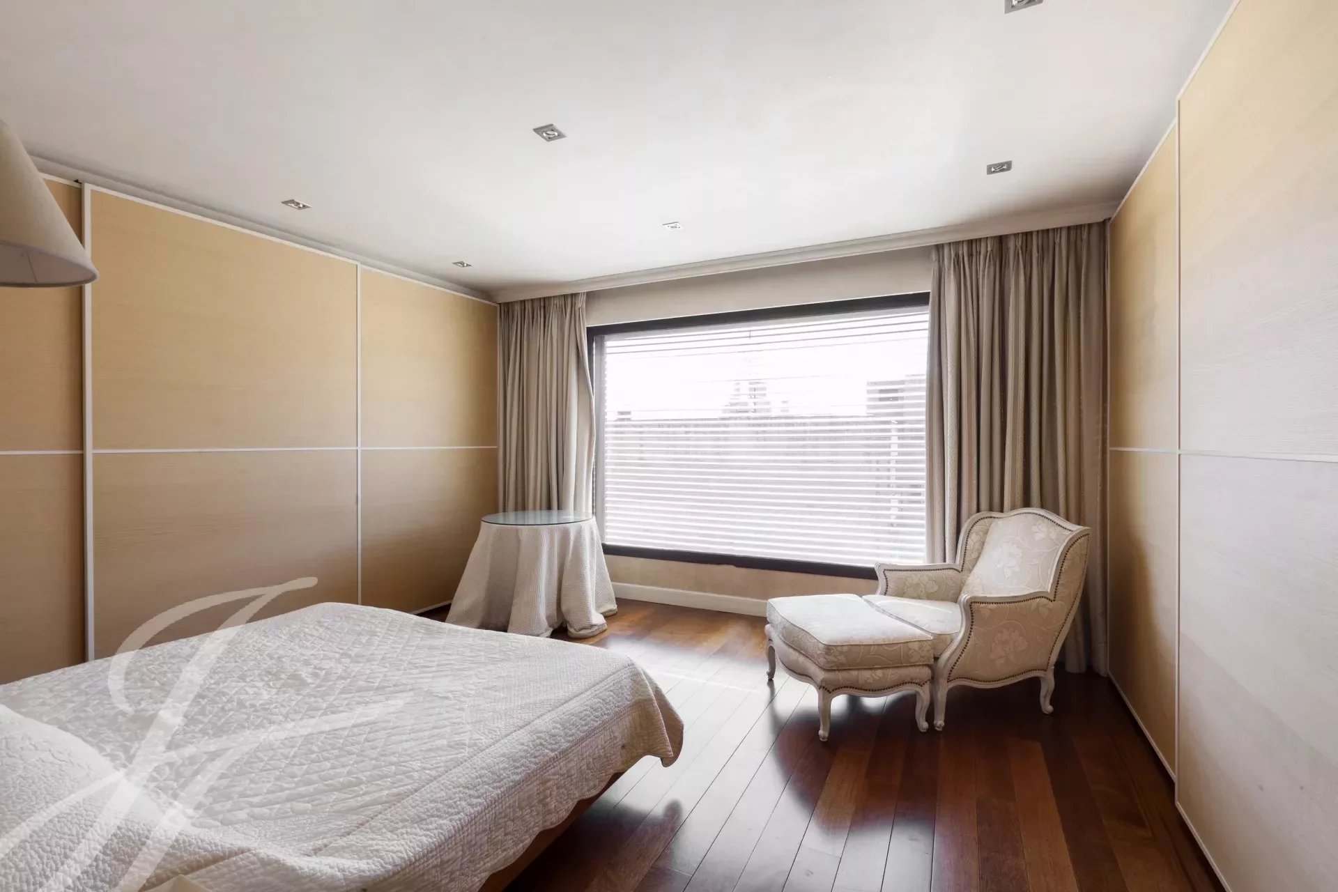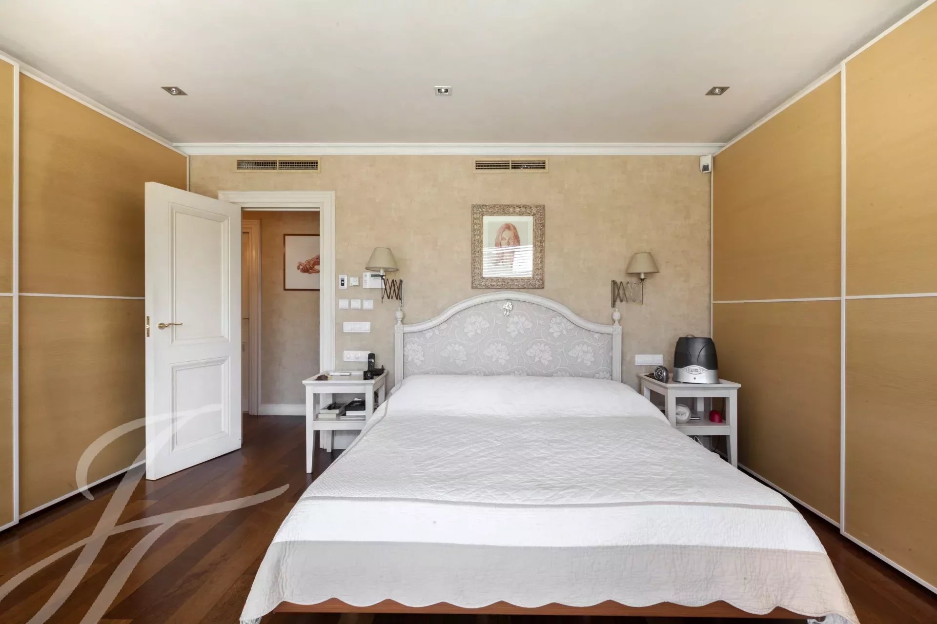 Da cozinha temos acesso ao hall onde se encontra também uma casa de banho de serviço. Novamente a partir do grande corredor subimos para o segundo andar, que também tem uma entrada independente a partir da área do elevador, um corredor corre ao longo da escadaria e distribui as portas para os diferentes quartos, todos eles muito grandes com casas de banho privativas e vestiários. A enorme área do quarto principal é composta pelo quarto propriamente dito, quarto de vestir, casa de banho privativa grande e um quarto adicional ou escritório com casa de banho privativa. Continuando ao longo da escadaria, encontramos outro quarto com casa de banho privativa, e os outros dois quartos que partilham uma sala de estar ou escritório onde cada um deles tem um quarto de vestir e casa de banho privativa, completam o piso.
