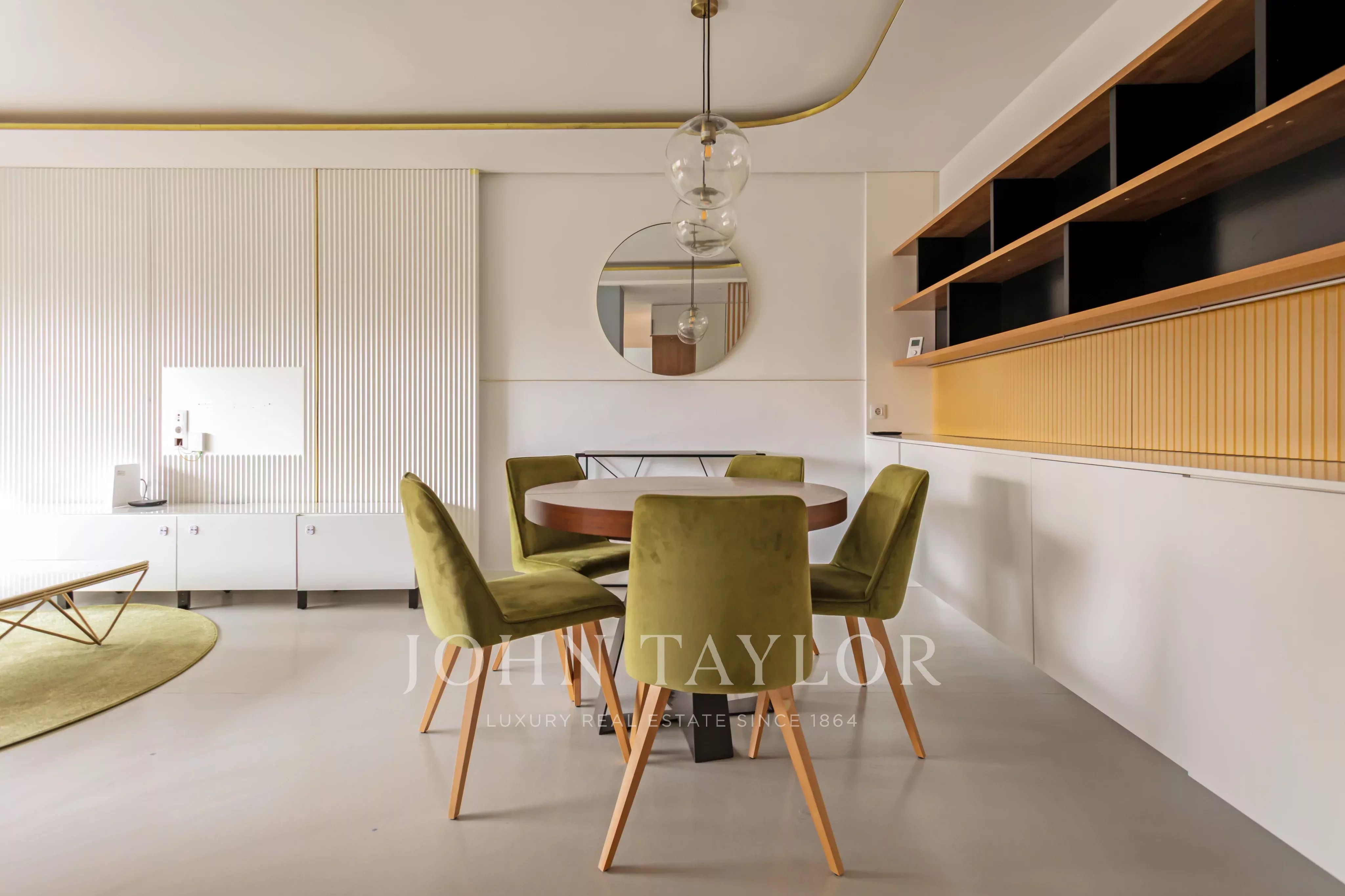 A sala de estar/jantar, espaçosa e luminosa, tem acesso direto a um terraço virado a nascente, ideal para desfrutar da luz natural pela manhã.