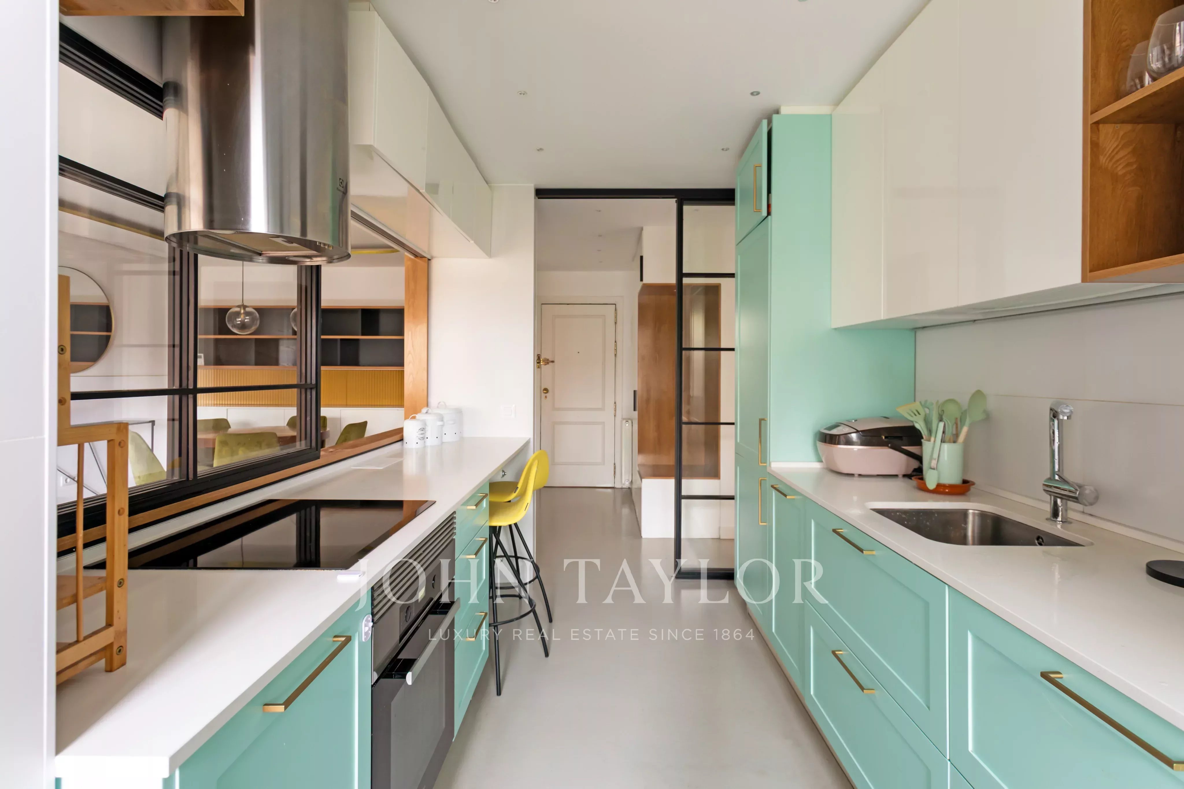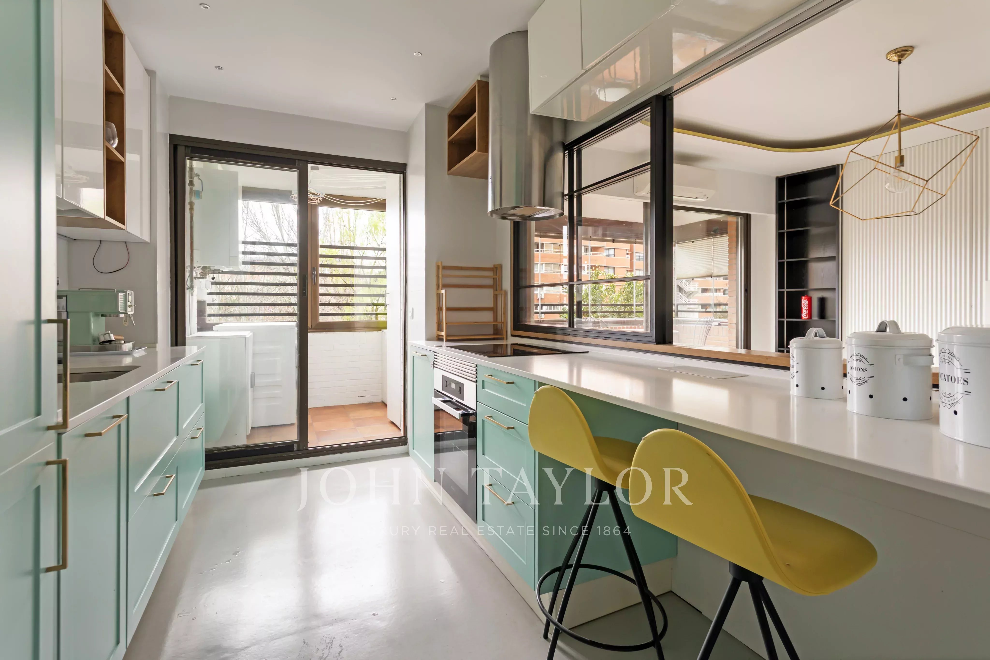 A cozinha independente tem uma zona de lavandaria e um terraço adicional, proporcionando mais conforto no dia a dia.