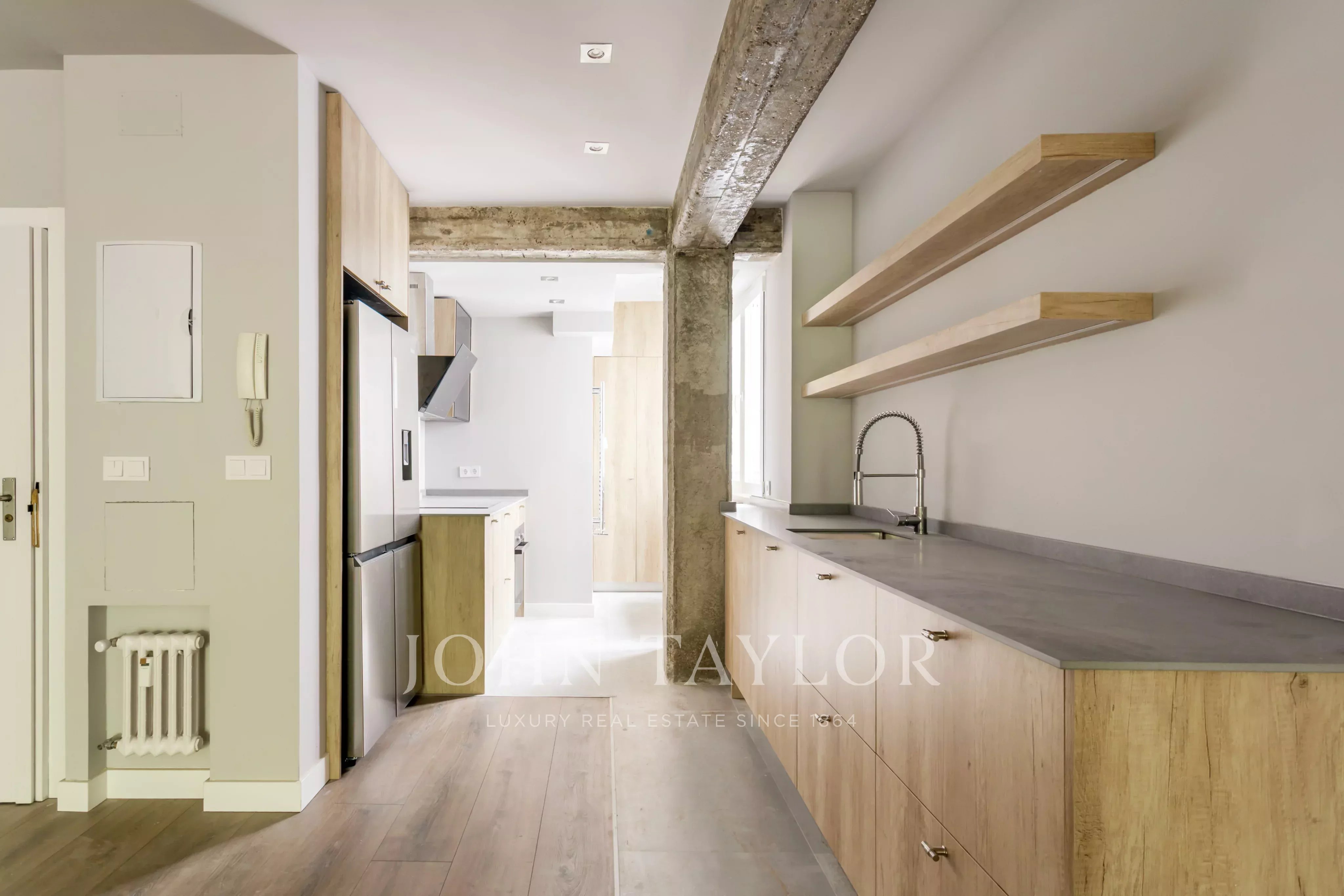A cozinha está equipada com eletrodomésticos modernos como freezer, fogão, forno, máquina de lavar roupa, máquina de lavar louça e frigorífico. Além disso, o imóvel apresenta um design contemporâneo, piso de madeira e um ambiente acolhedor para toda a família. Excelente escolha para quem busca qualidade de vida e praticidade em Madrid.