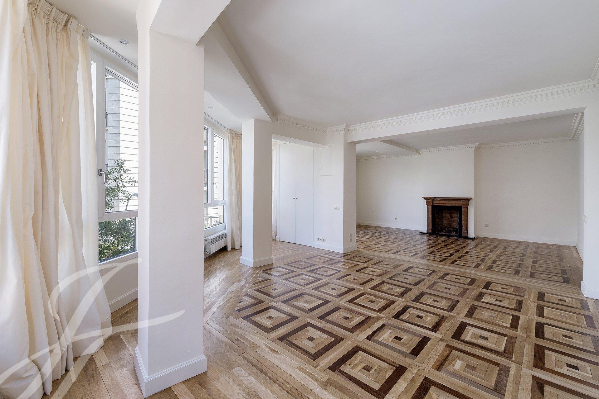 A sala de estar é o coração da casa, oferecendo uma fantástica luminosidade e sensação de espaço, bem como múltiplas possibilidades para a distribuição do mobiliário. No verão, a altura das árvores oferece sombra, frescura e tranquilidade. No inverno, os edifícios vizinhos lembrar-nos-ão constantemente do local onde nos encontramos. O quarto principal tem uma casa de banho privativa, roupeiros embutidos e um quarto de vestir. O segundo quarto tem roupeiros embutidos e a sua própria casa de banho completa, tudo renovado e exterior, sem dúvida um luxo difícil de encontrar. A cozinha oferece todos os confortos, bem como lavandaria e sala de engomar, uma casa de banho de serviço completa e a sua própria entrada de serviço.