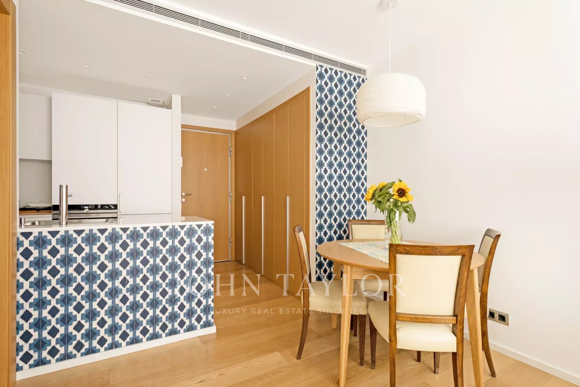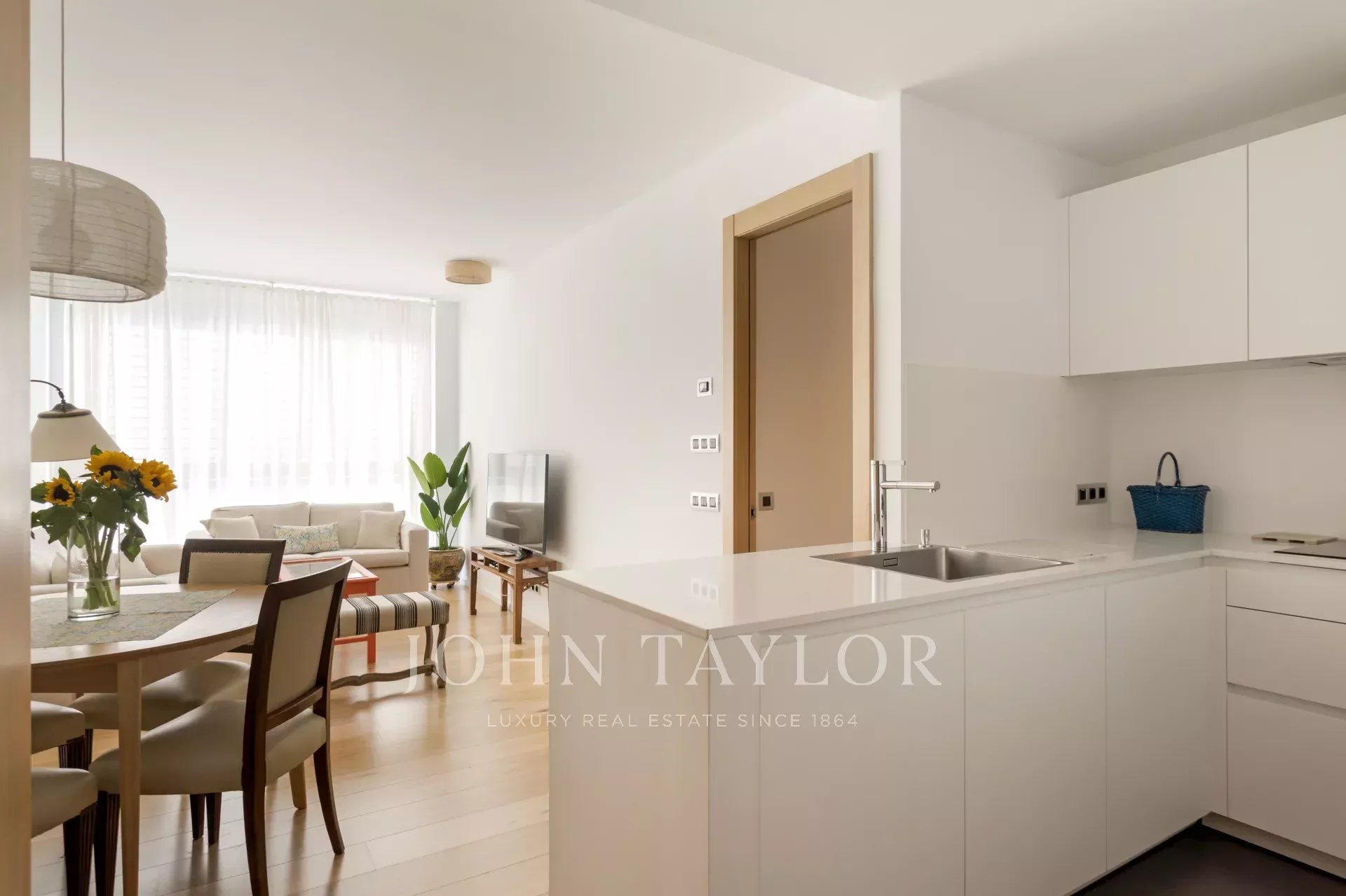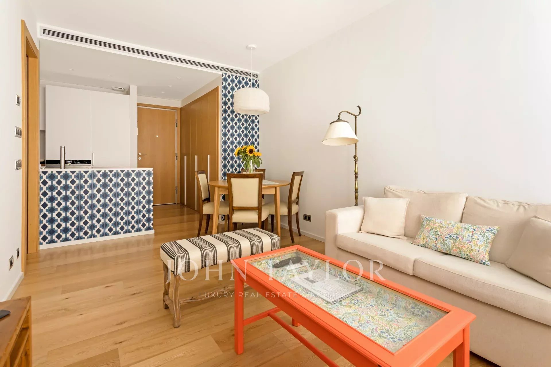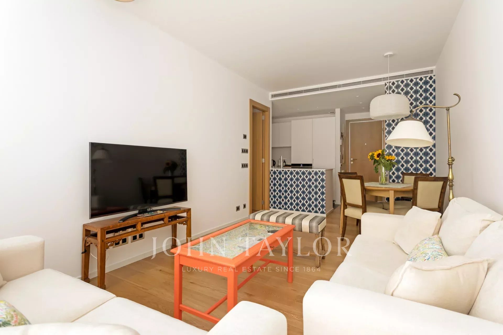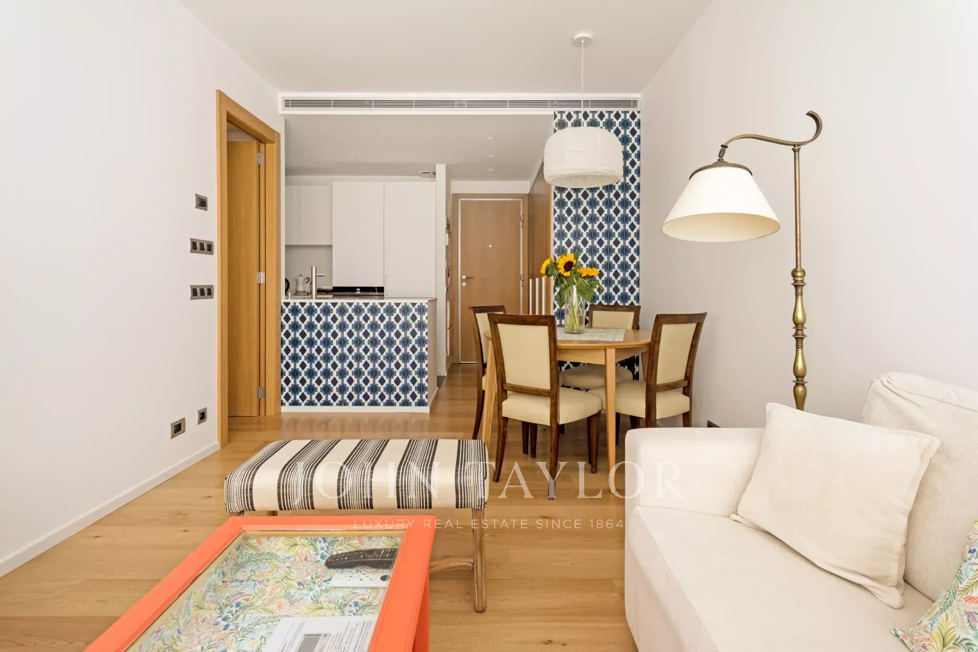 Este apartamento no 4º andar de um edifício de 2018 tem 110m², divididos numa luminosa sala de estar/jantar com cozinha em plano aberto, quarto principal com roupeiros embutidos e casa de banho privativa, outro quarto com roupeiro embutido e uma casa de banho em frente que também serve de WC para hóspedes.
