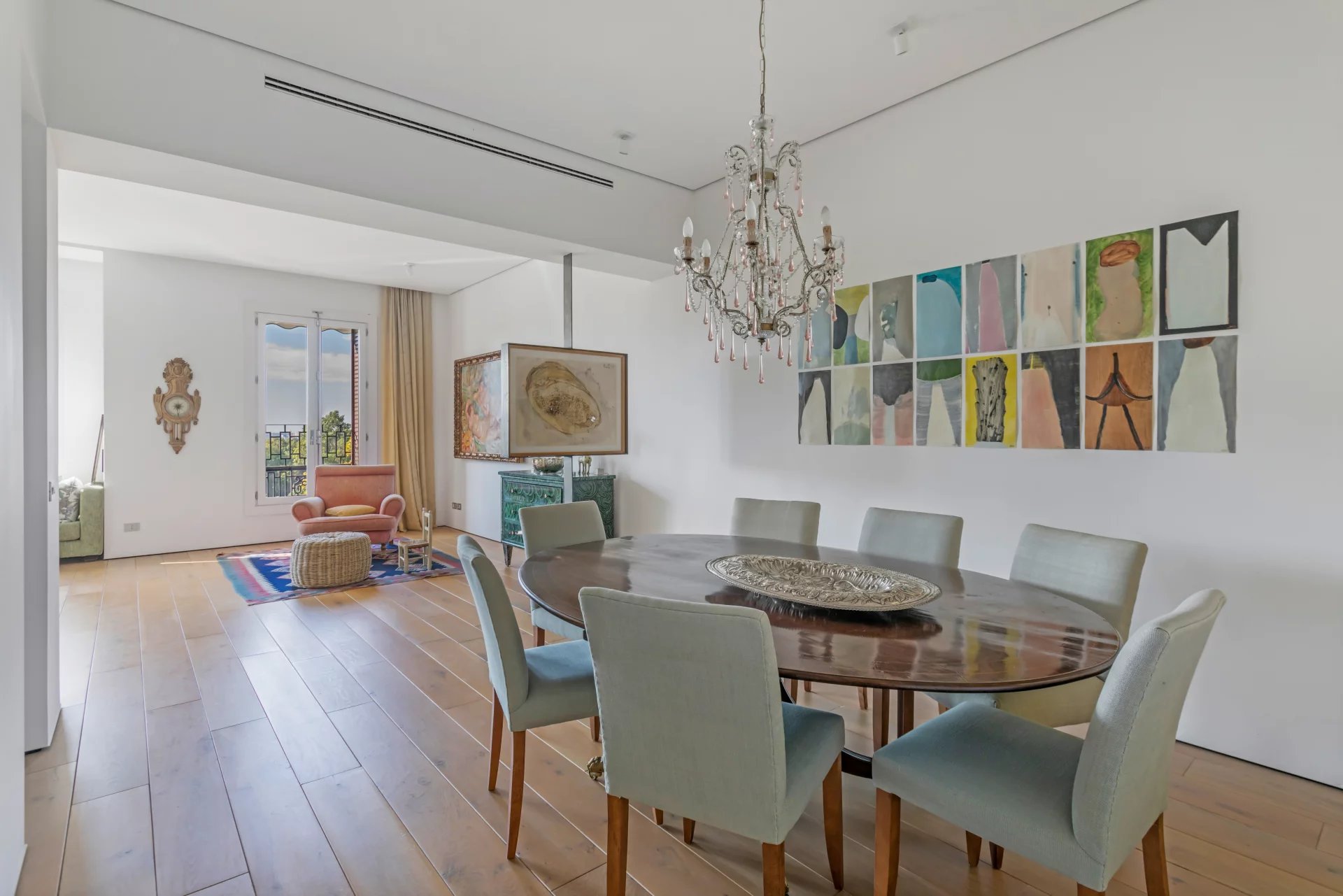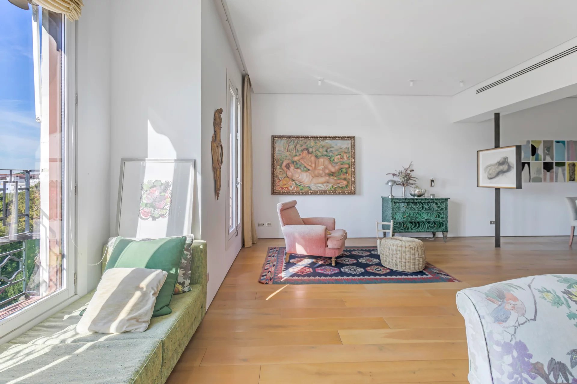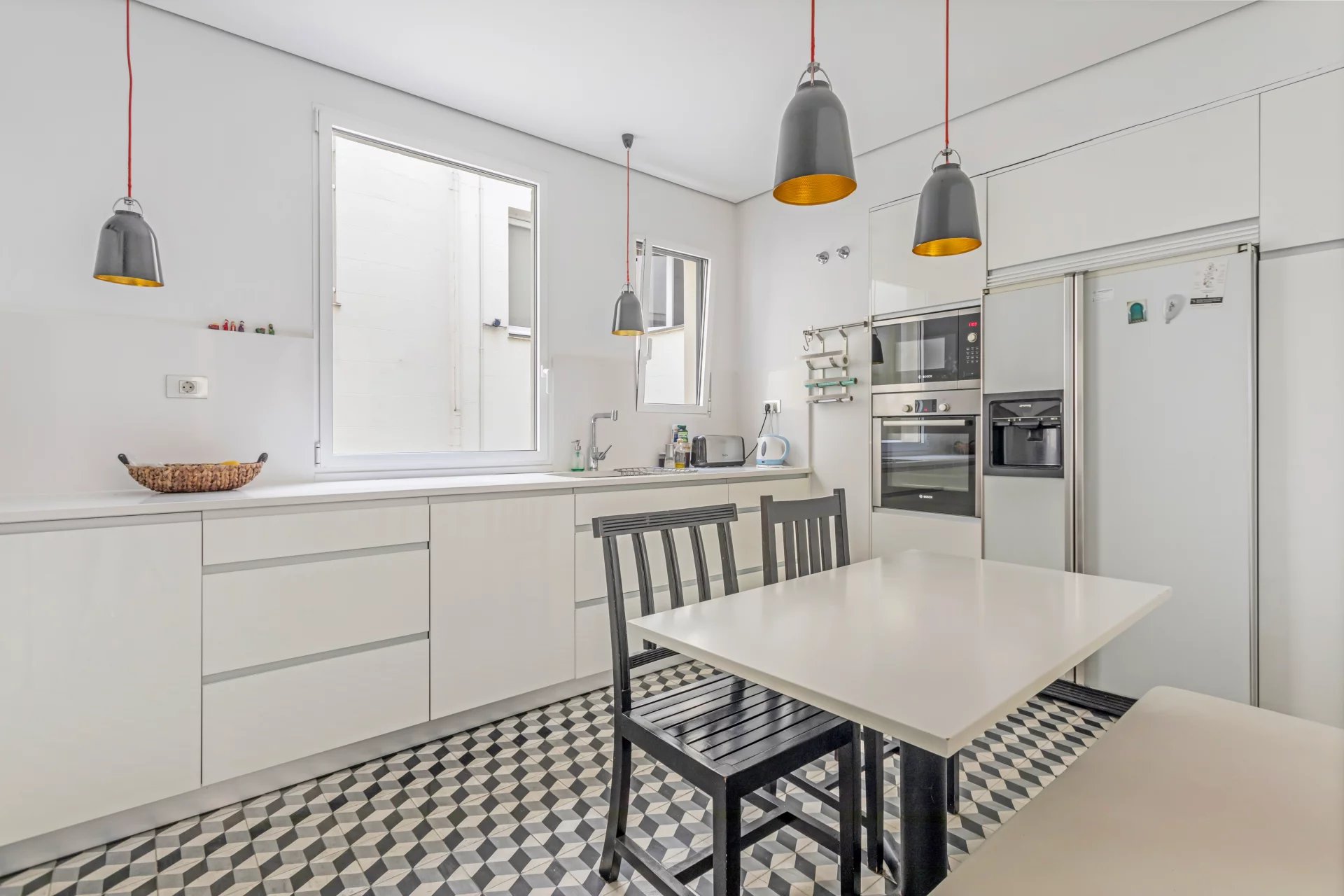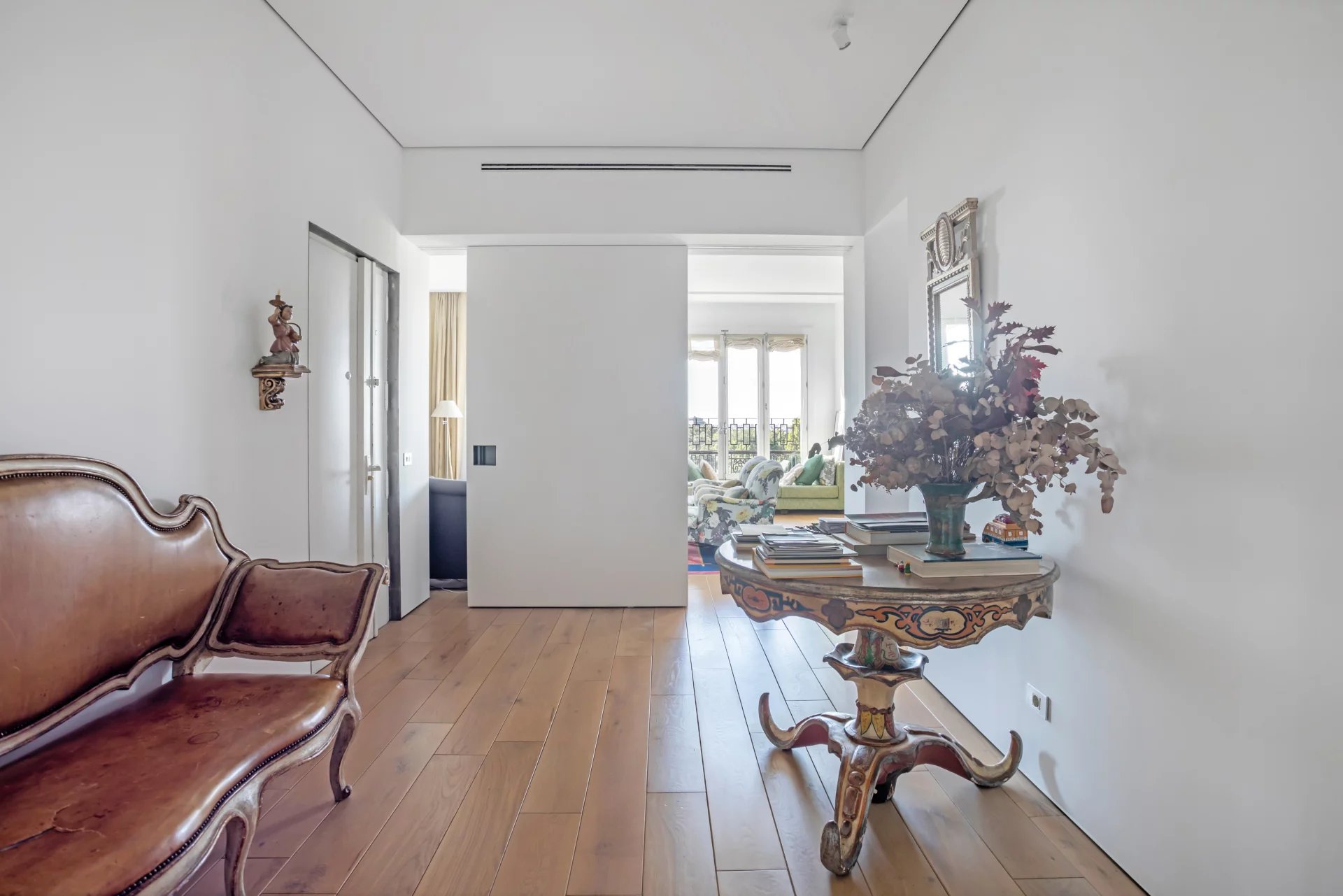 Com uma disposição elegante e funcional, tem quatro quartos e quatro casas de banho, oferecendo um espaço ideal tanto para famílias como para quem procura espaço e conforto numa das zonas mais exclusivas de Madrid. A área exterior é ocupada pela luminosa sala de estar com uma sala de jantar adjacente. A cozinha está totalmente equipada com electrodomésticos topo de gama e tem uma zona de lavandaria separada.