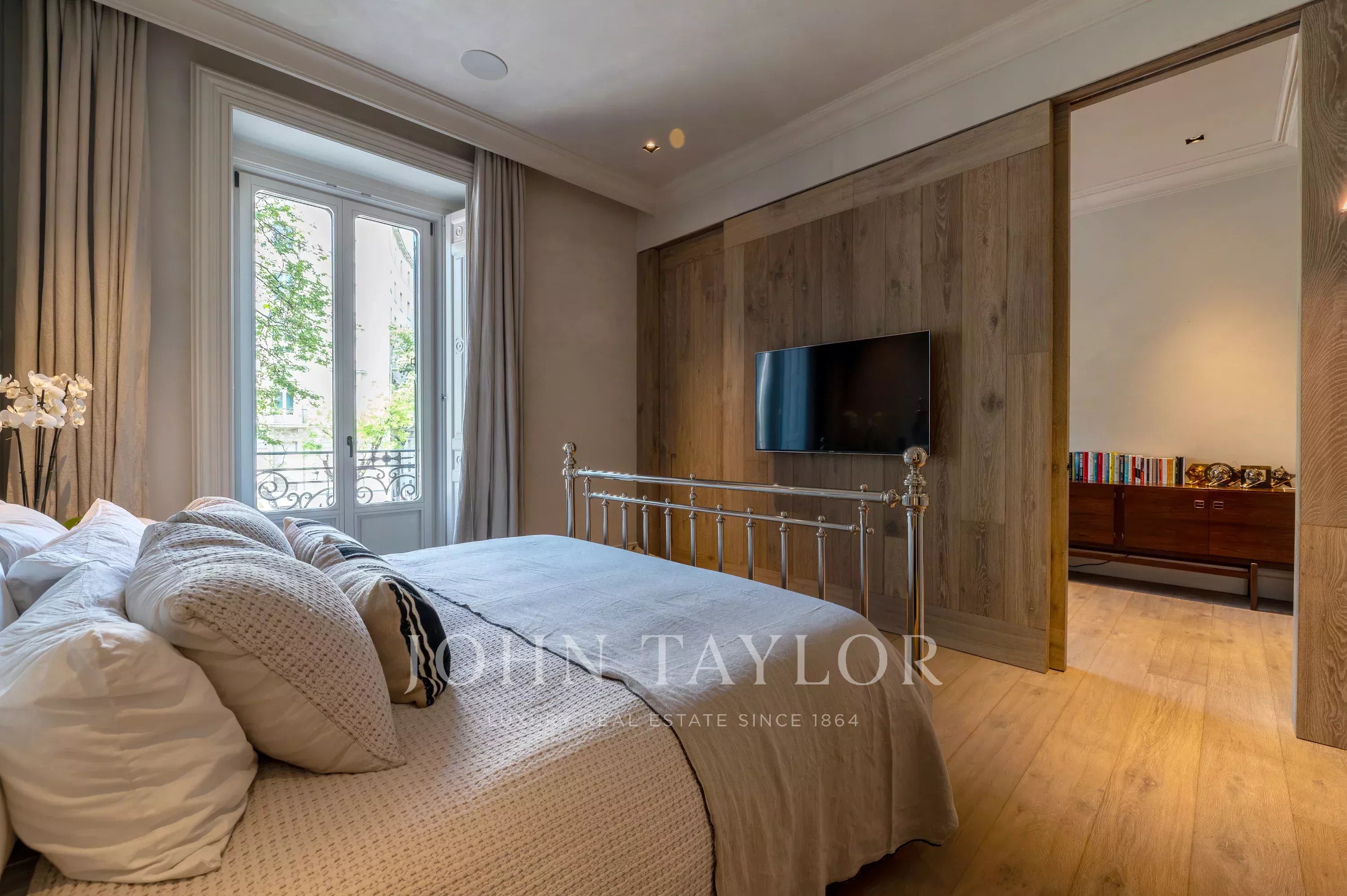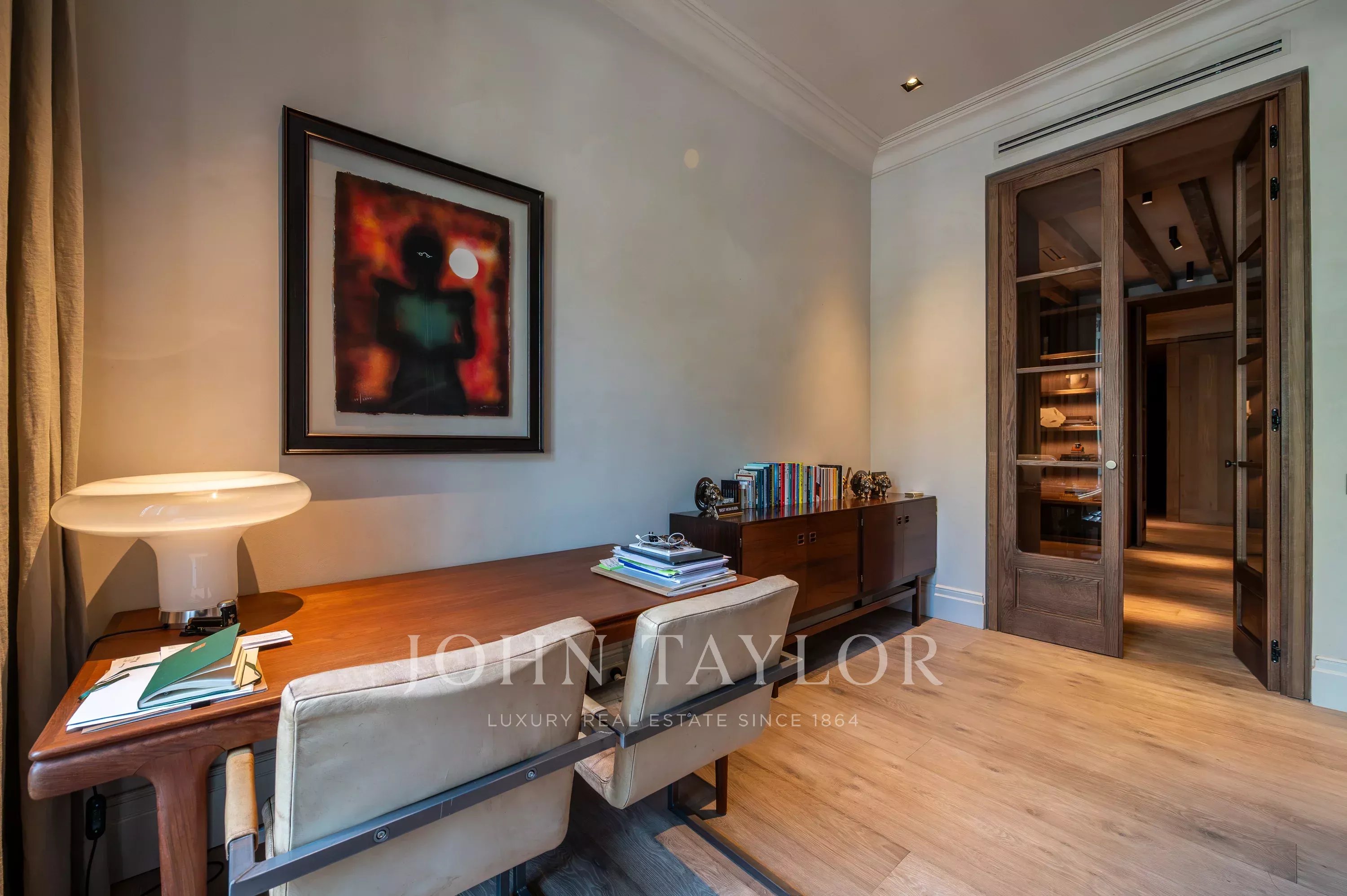 A suíte principal apresenta-se como um verdadeiro oásis independente, incorporando uma elegante área de escritório, um quarto com vistas privilegiadas para a rua Alcalá, um amplo closet desenhado para amantes de moda e um banheiro espetacular revestido em mármore.
