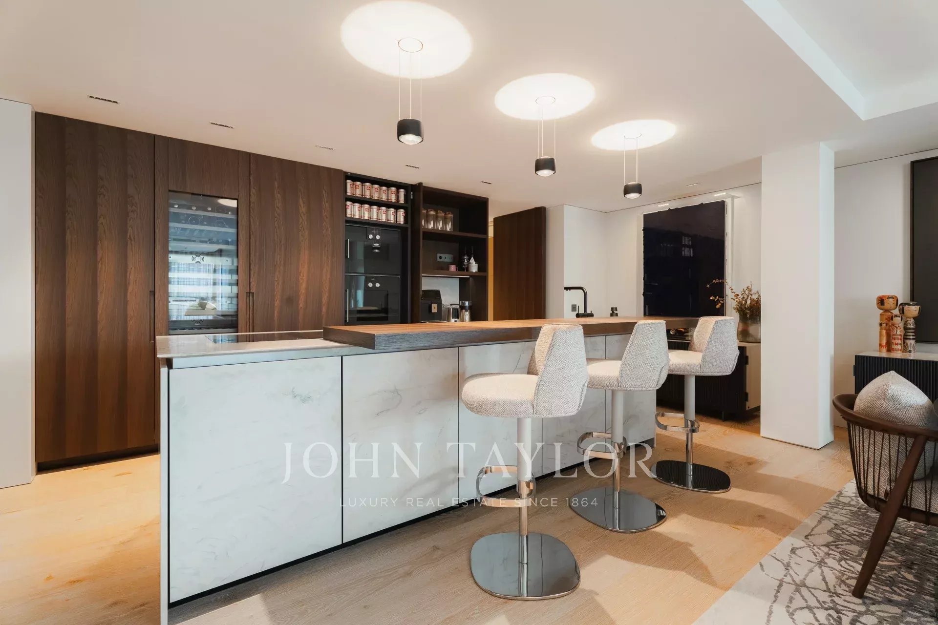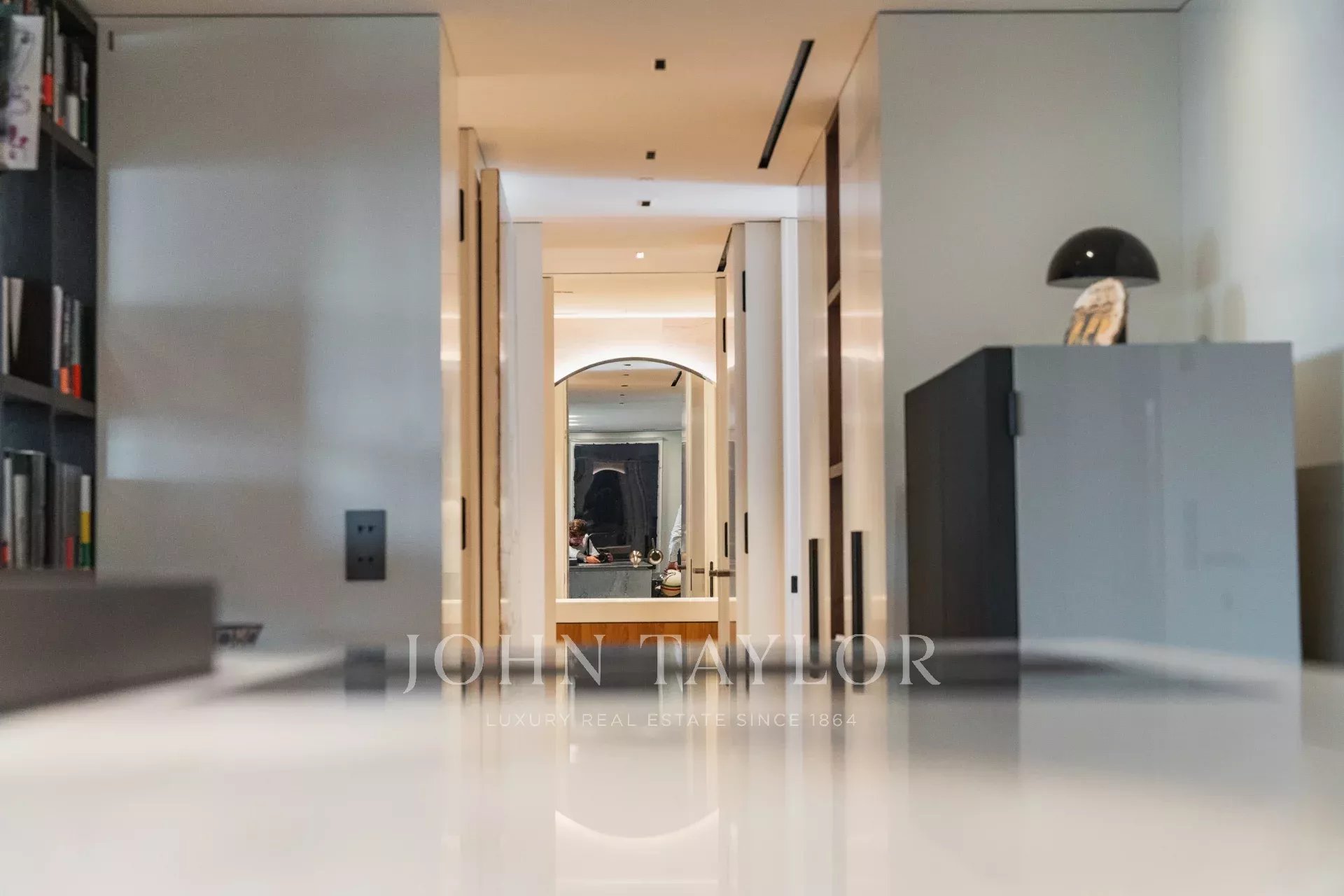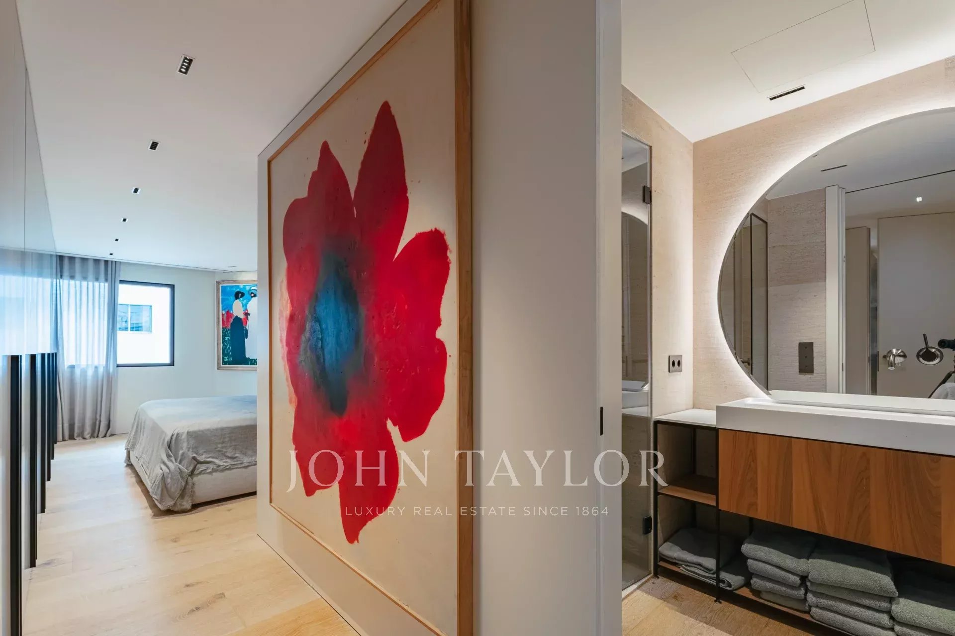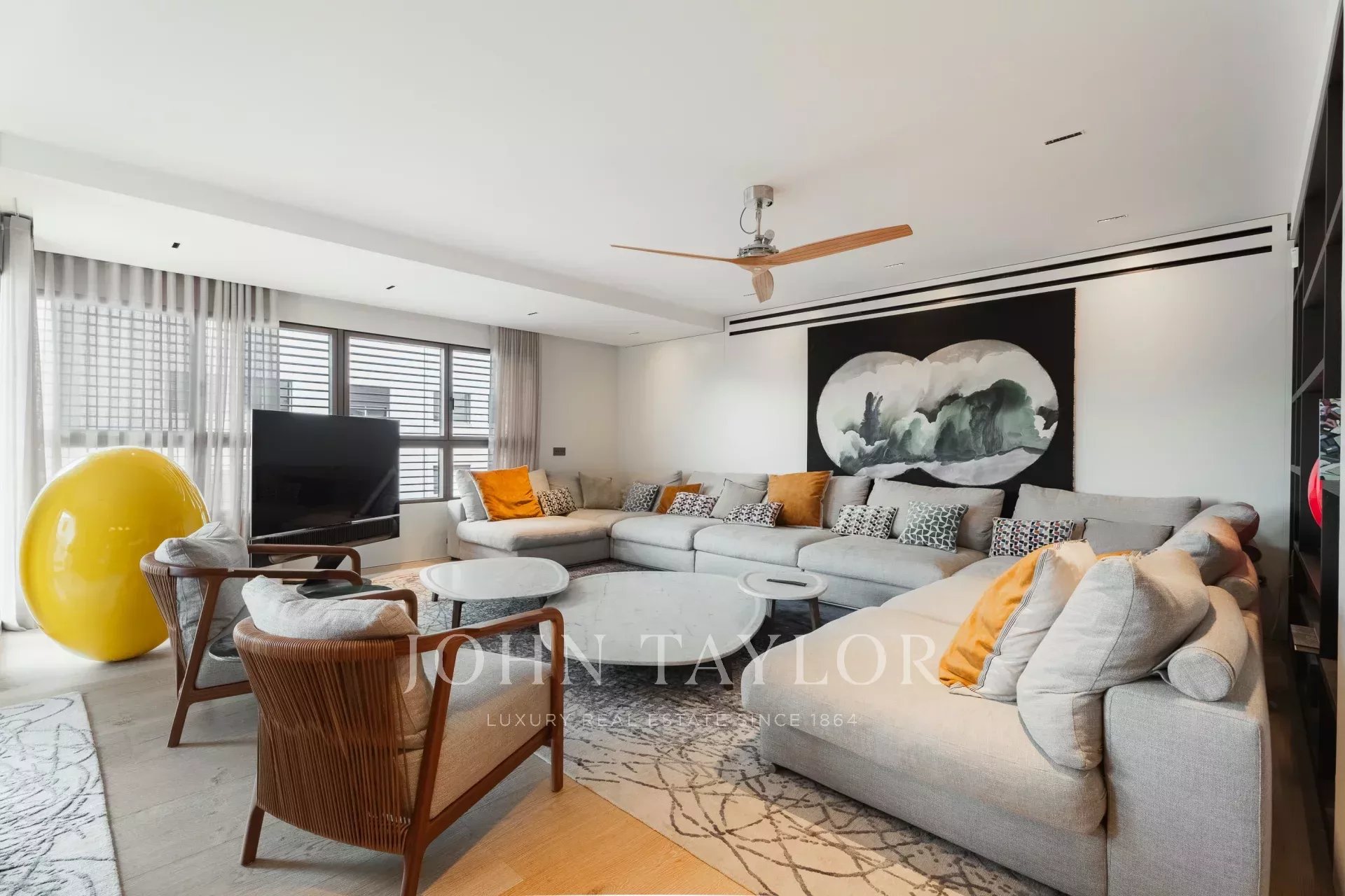 Este apartamento moderno e totalmente mobiliado apresenta um amplo espaço em conceito aberto, com cozinha de design, elegante sala de jantar e luminosa sala de estar, todas com acesso direto a um terraço coberto que oferece vistas deslumbrantes da icônica Catedral de Palma.