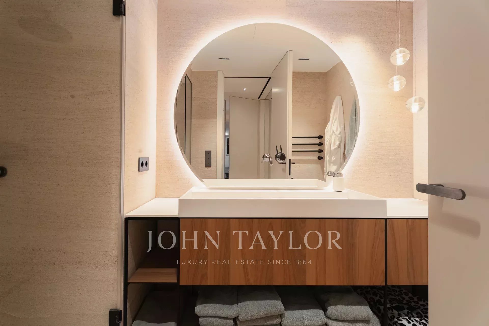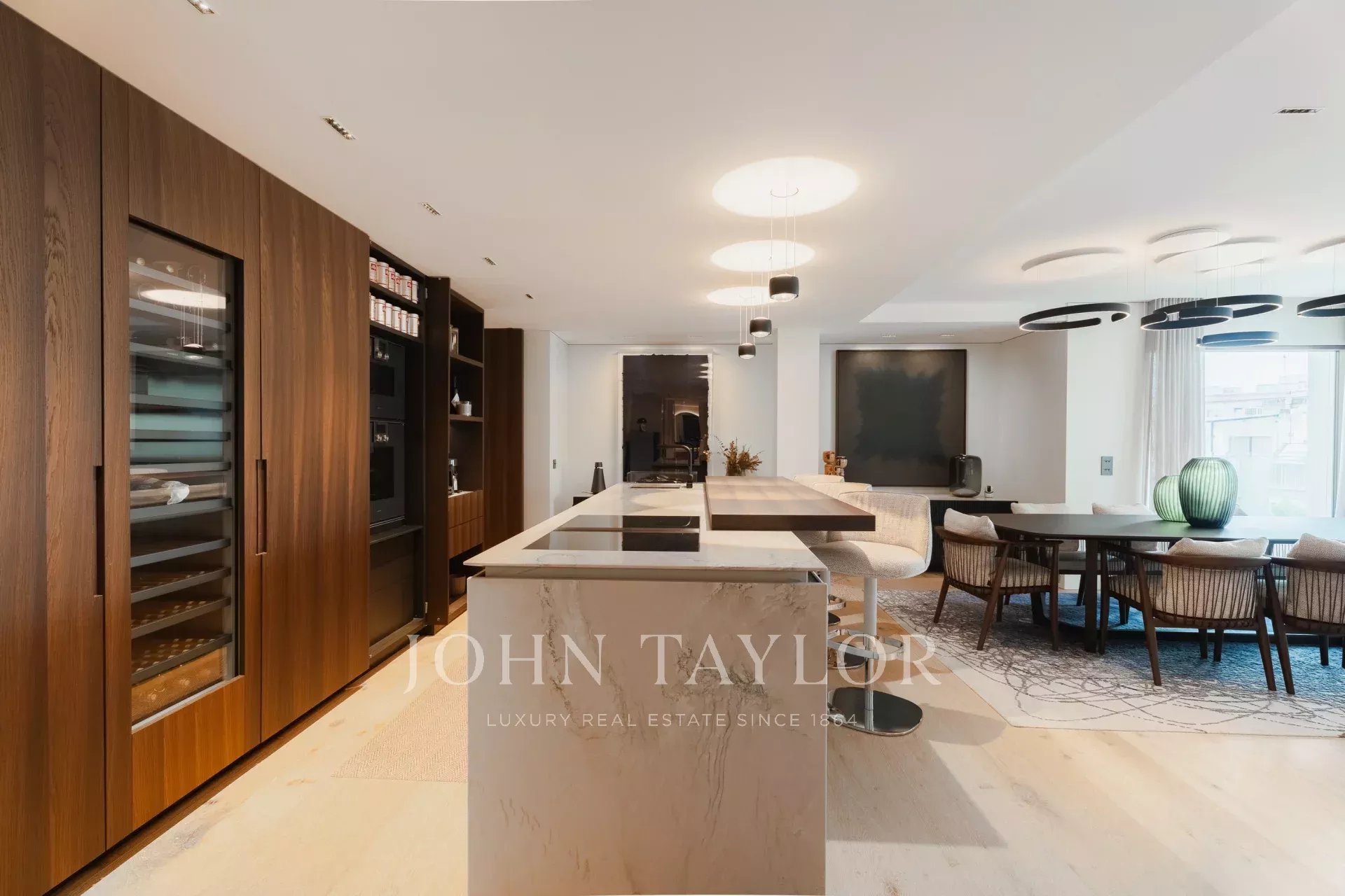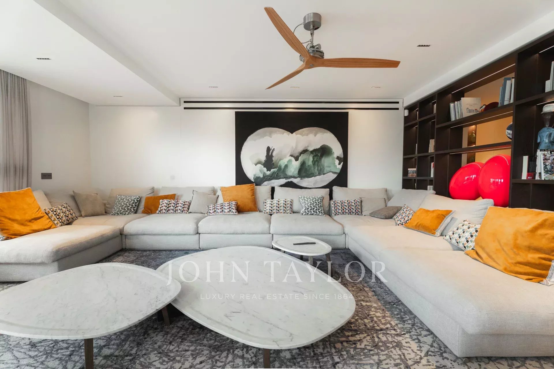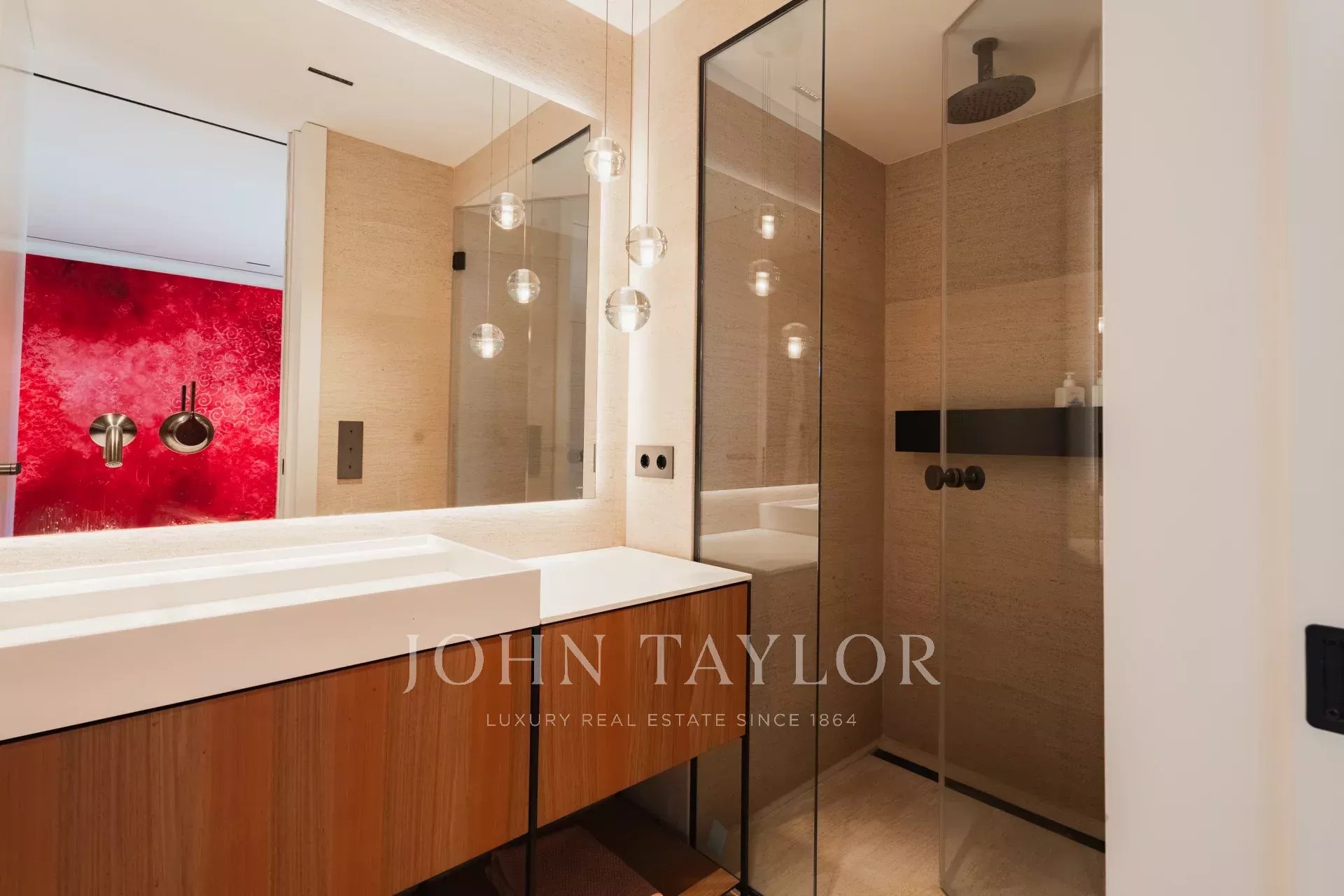 Este apartamento moderno e totalmente mobiliado apresenta um amplo espaço em conceito aberto, com cozinha de design, elegante sala de jantar e luminosa sala de estar, todas com acesso direto a um terraço coberto que oferece vistas deslumbrantes da icônica Catedral de Palma.