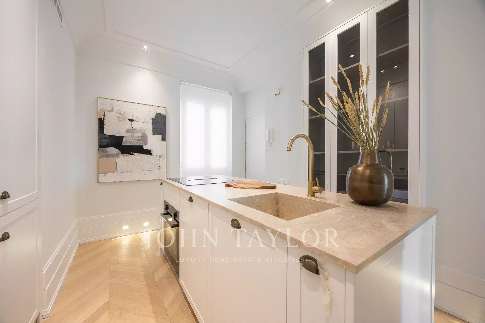 Detalhes que fazem a diferença completam esta propriedade: lavandaria independente, aquecimento central, ar condicionado e serviço de concierge, tudo num edifício clássico com uma forte presença e numa das ruas mais cobiçadas de Madrid.