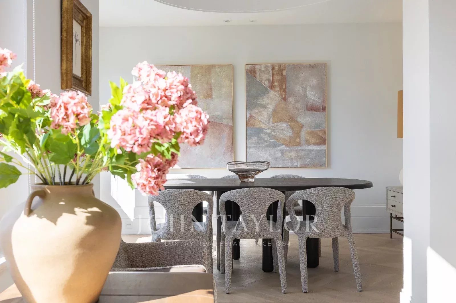 Esta residência totalmente renovada representa a fusão perfeita entre a elegância clássica de Madrid e um design contemporâneo com linhas suaves e equilibradas. Cada detalhe foi cuidadosamente selecionado para criar uma atmosfera de serenidade, conforto e beleza intemporal.