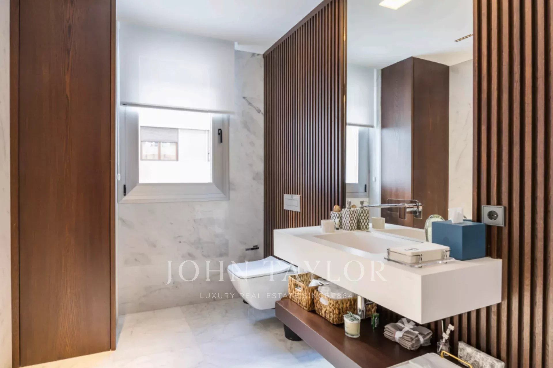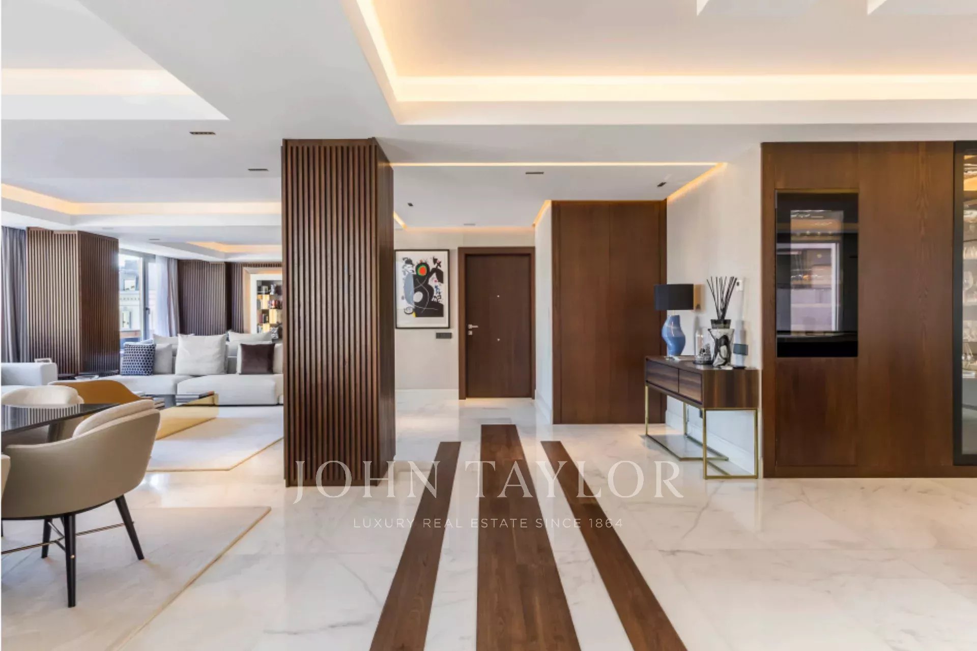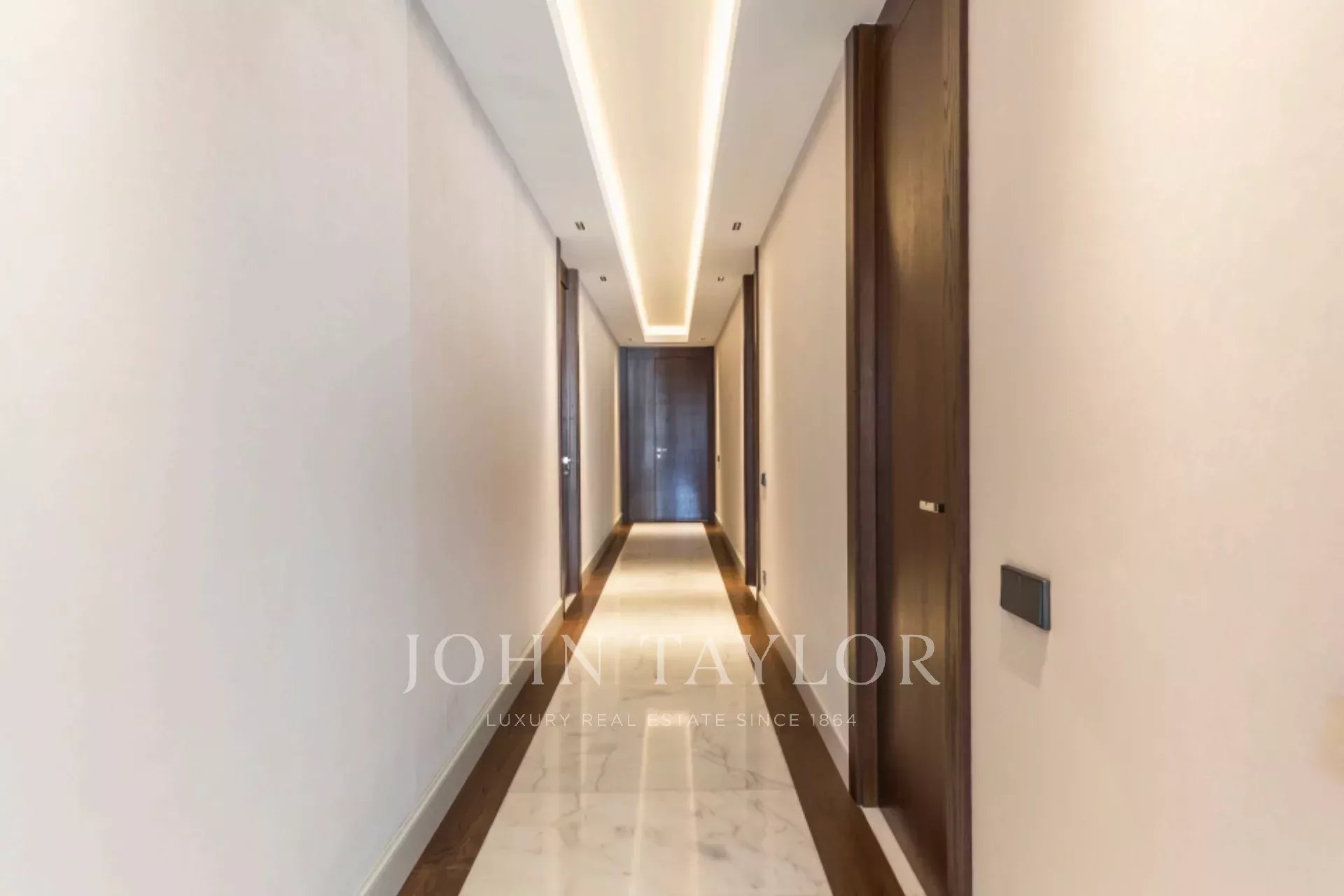 Situada numa das melhores zonas de Madrid, esta propriedade excecional combina um design moderno internacional com acabamentos de primeira qualidade. Criado por um estúdio de design de interiores de renome, apresenta materiais nobres, como o mármore dolomita e a madeira de carvalho natural, que conferem à casa um carácter único.