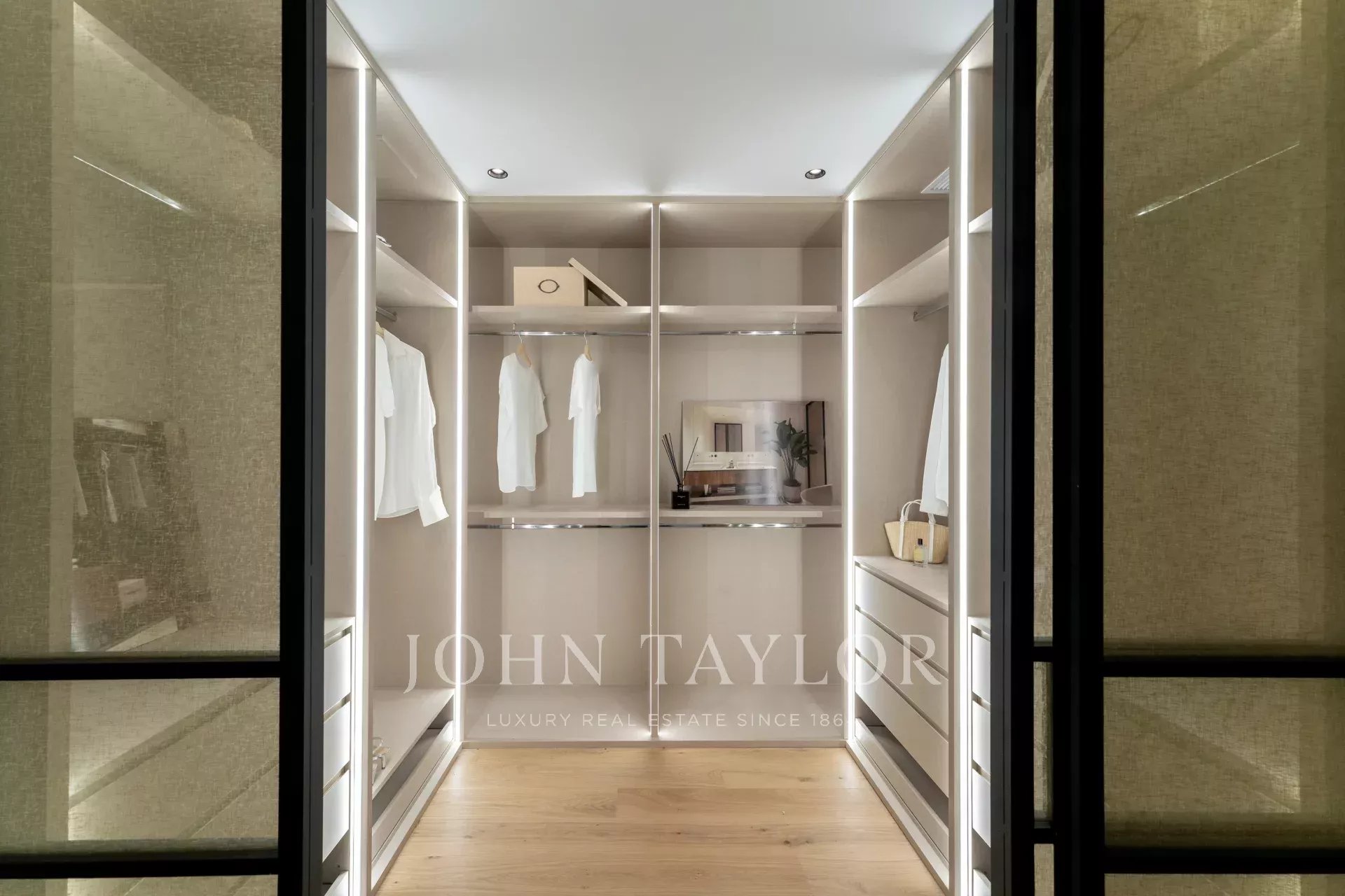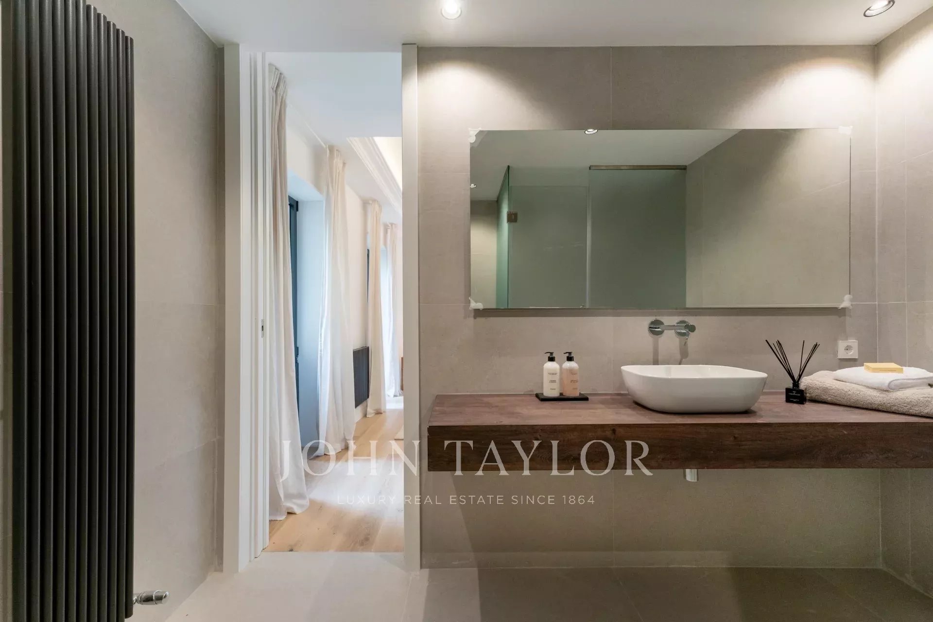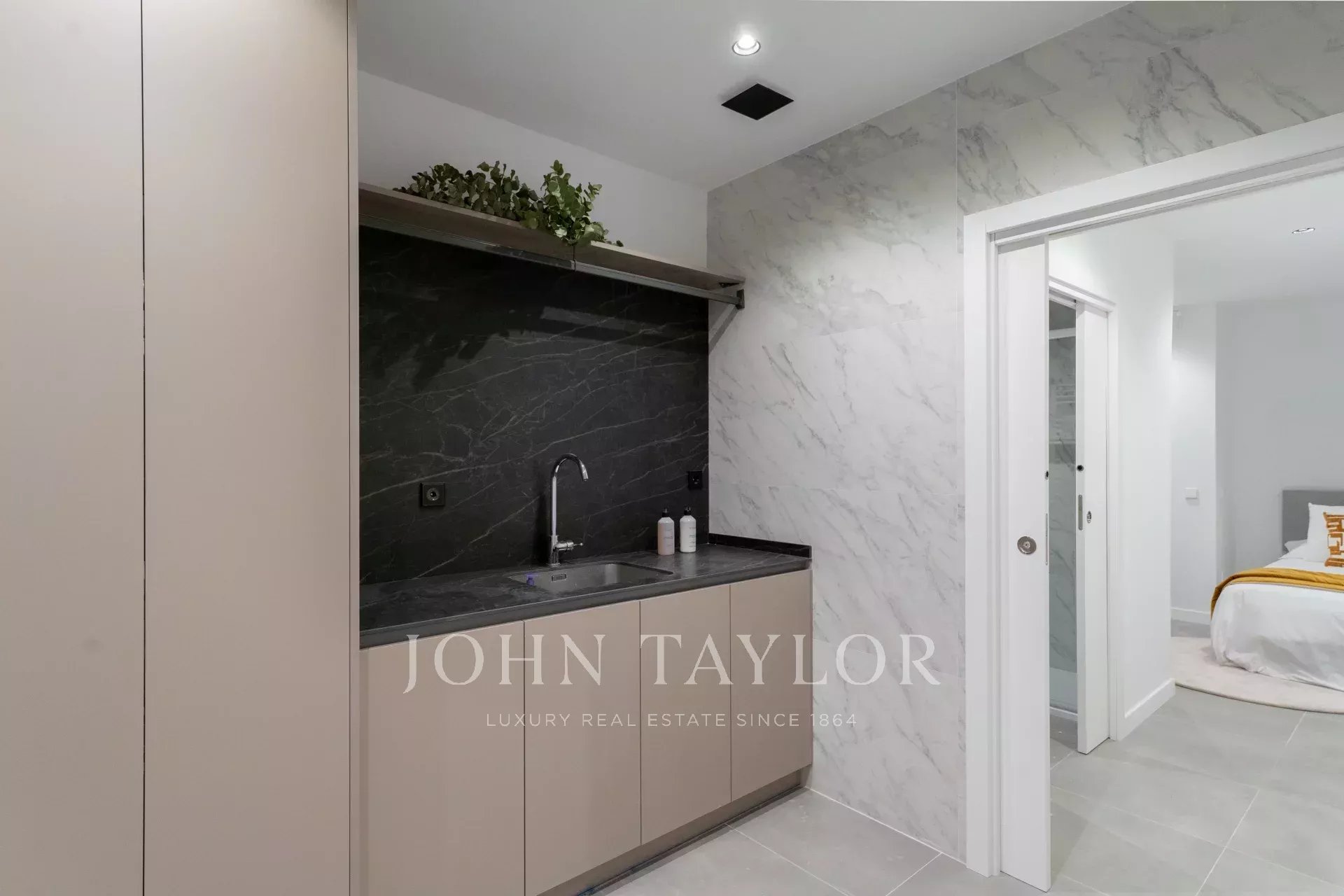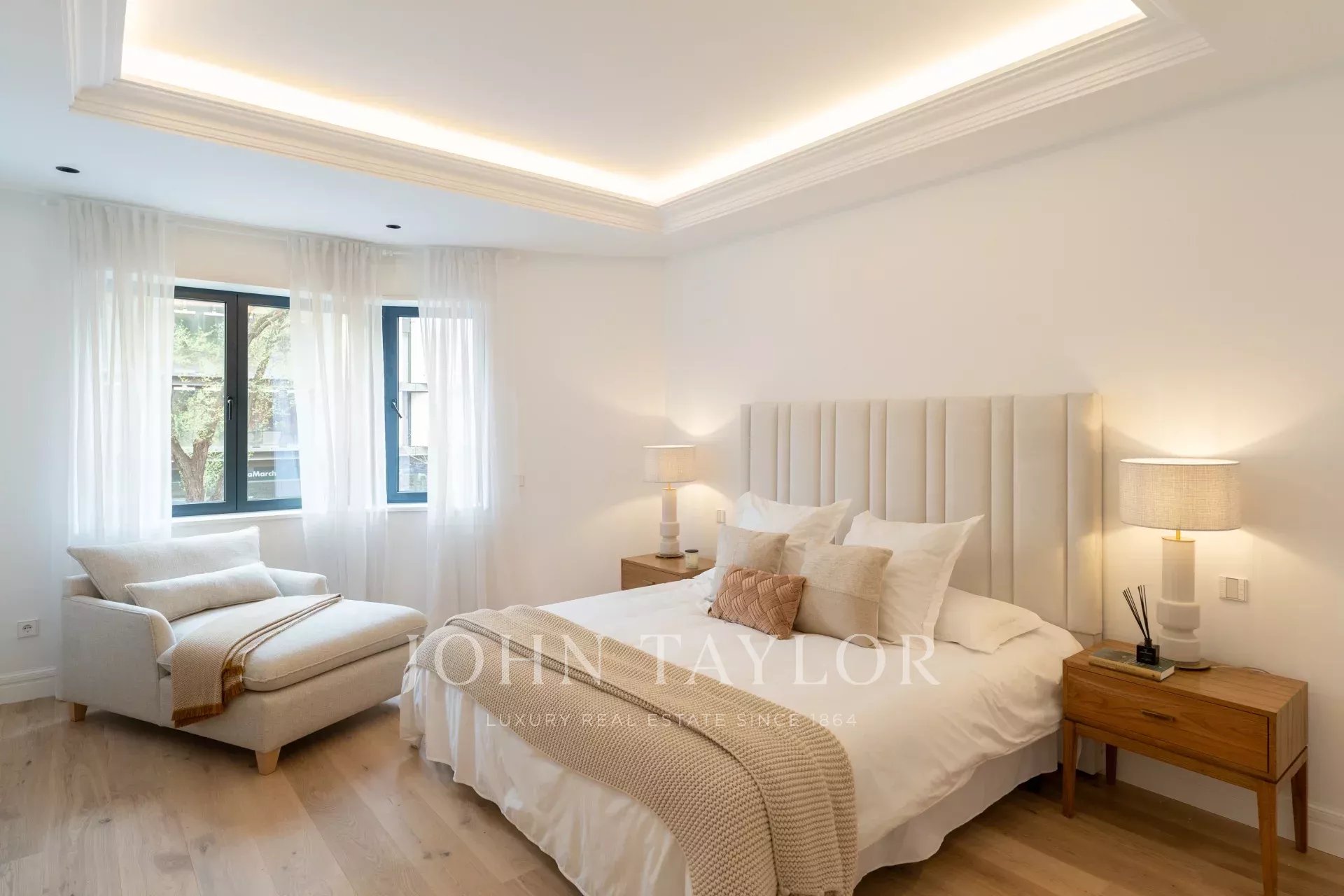 Com uma excelente distribuição com espaços abertos e luminosos e tectos de 3 metros de altura, esta propriedade de design contemporâneo foi completamente remodelada com qualidades premium. Tem 3 quartos duplos com casa de banho privativa, vestiários espaçosos e luz natural, bem como um quarto de empregados com casa de banho privativa.