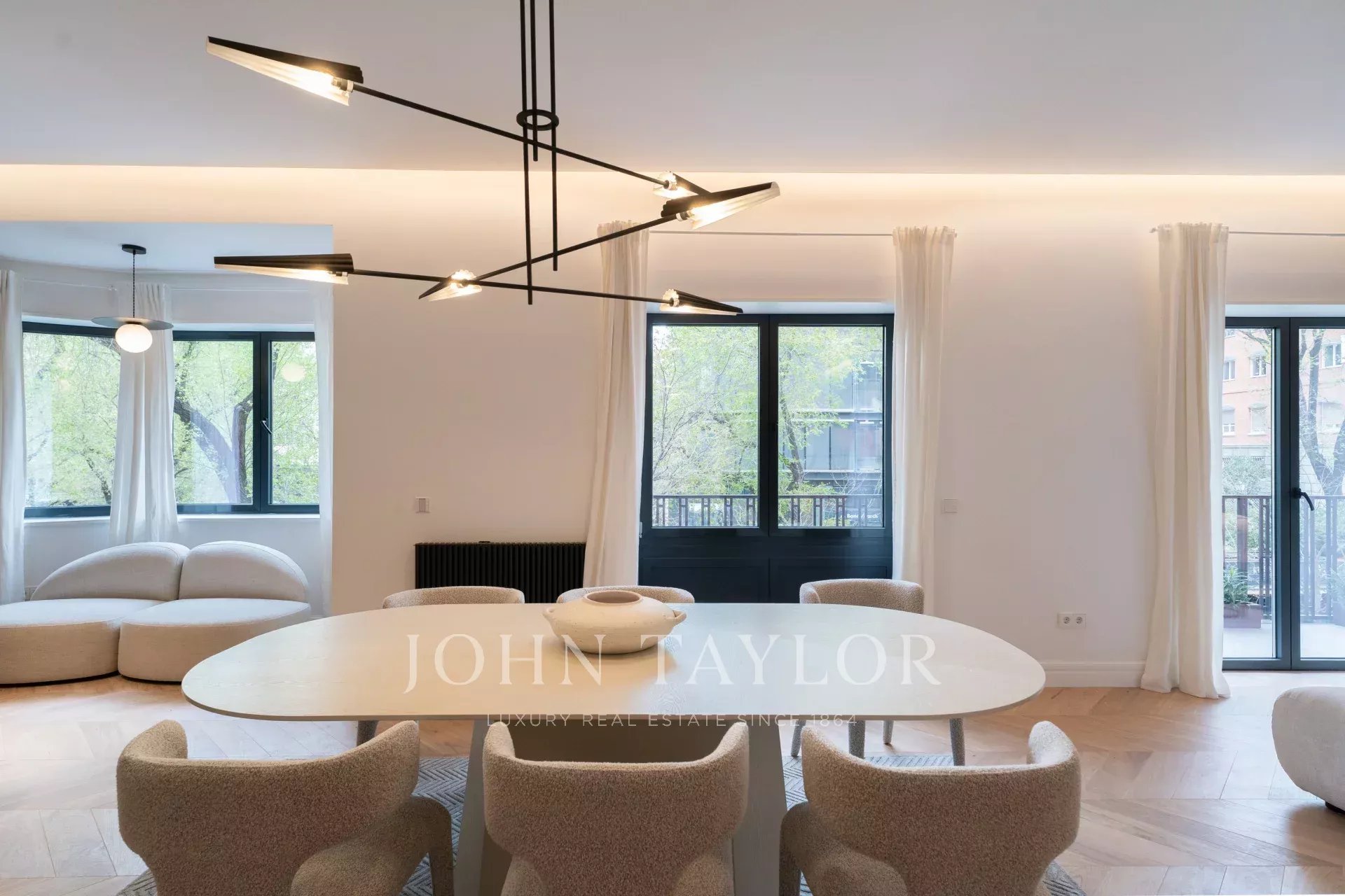 Apresentamos esta espetacular propriedade de alto nível numa das zonas mais exclusivas do bairro de Salamanca. Trata-se de um único apartamento por piso, o que garante a máxima privacidade e tranquilidade.