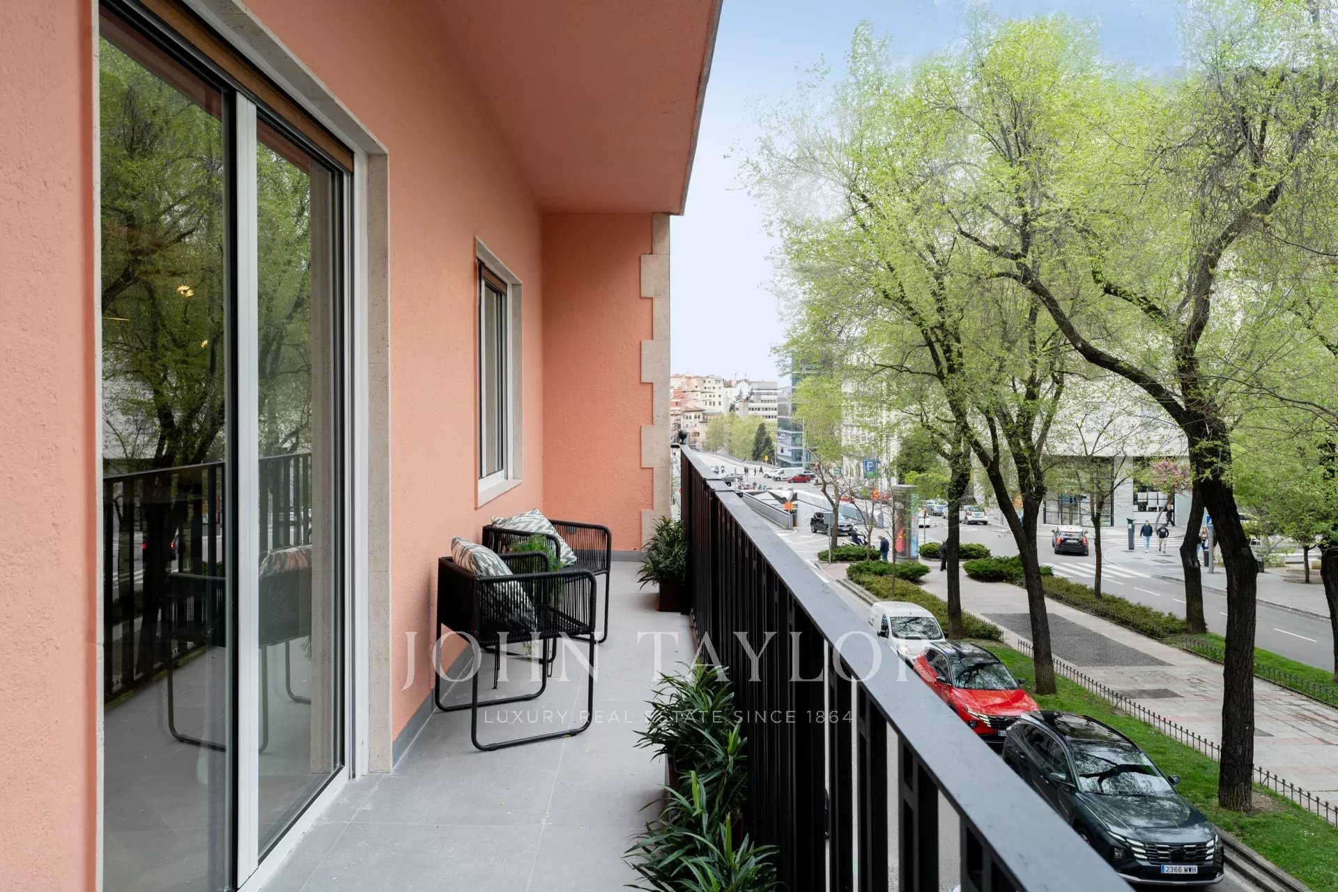 Apartamento de luxo novo com uma grande varanda, tectos altos e espaço de garagem.