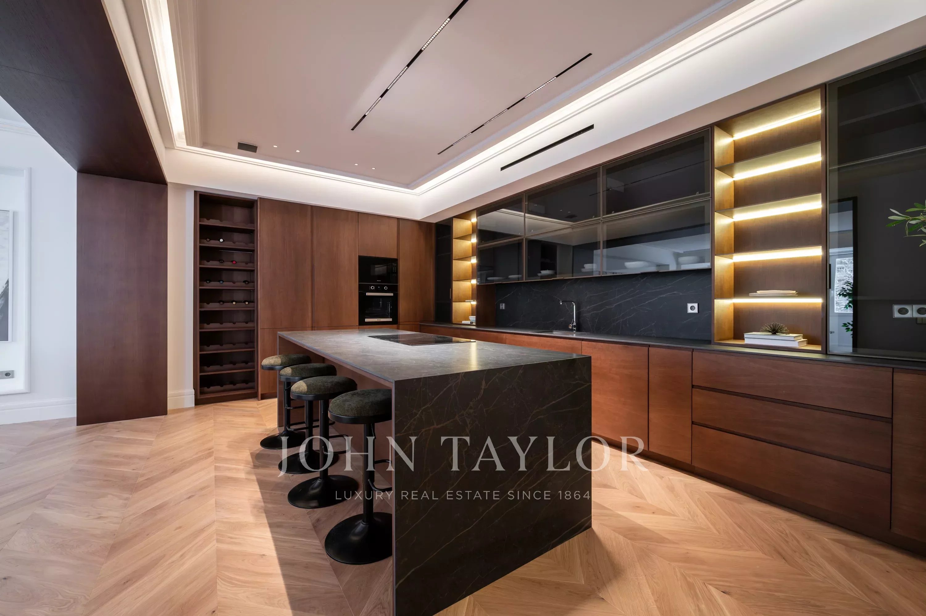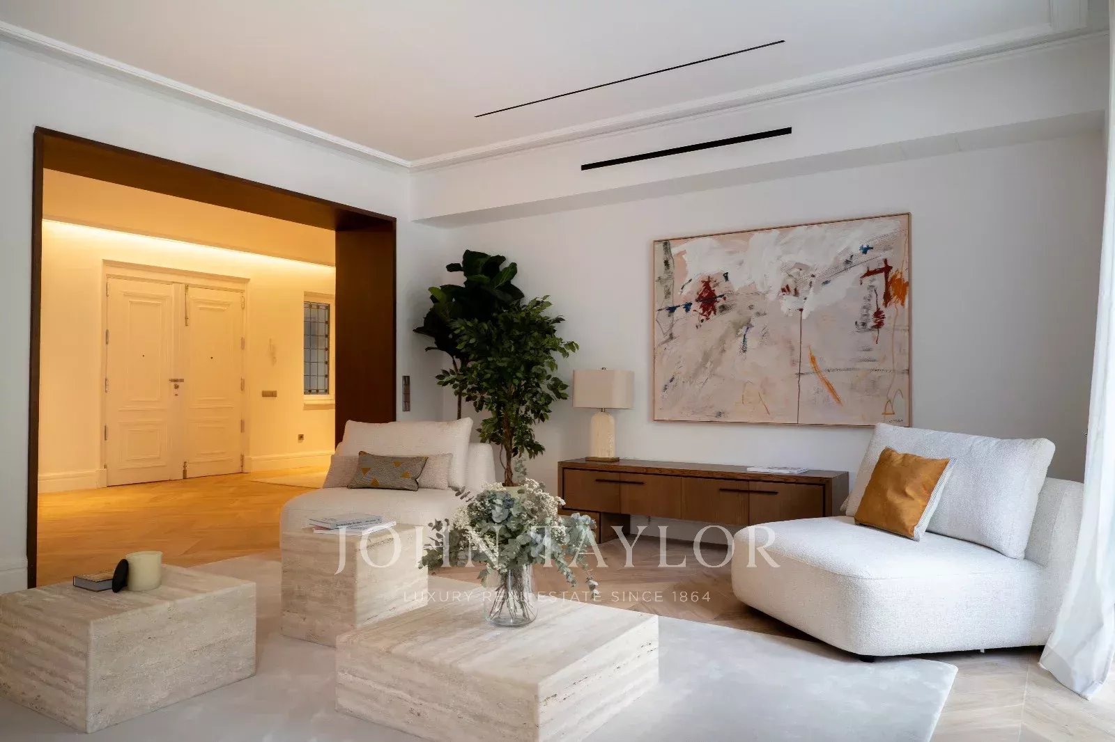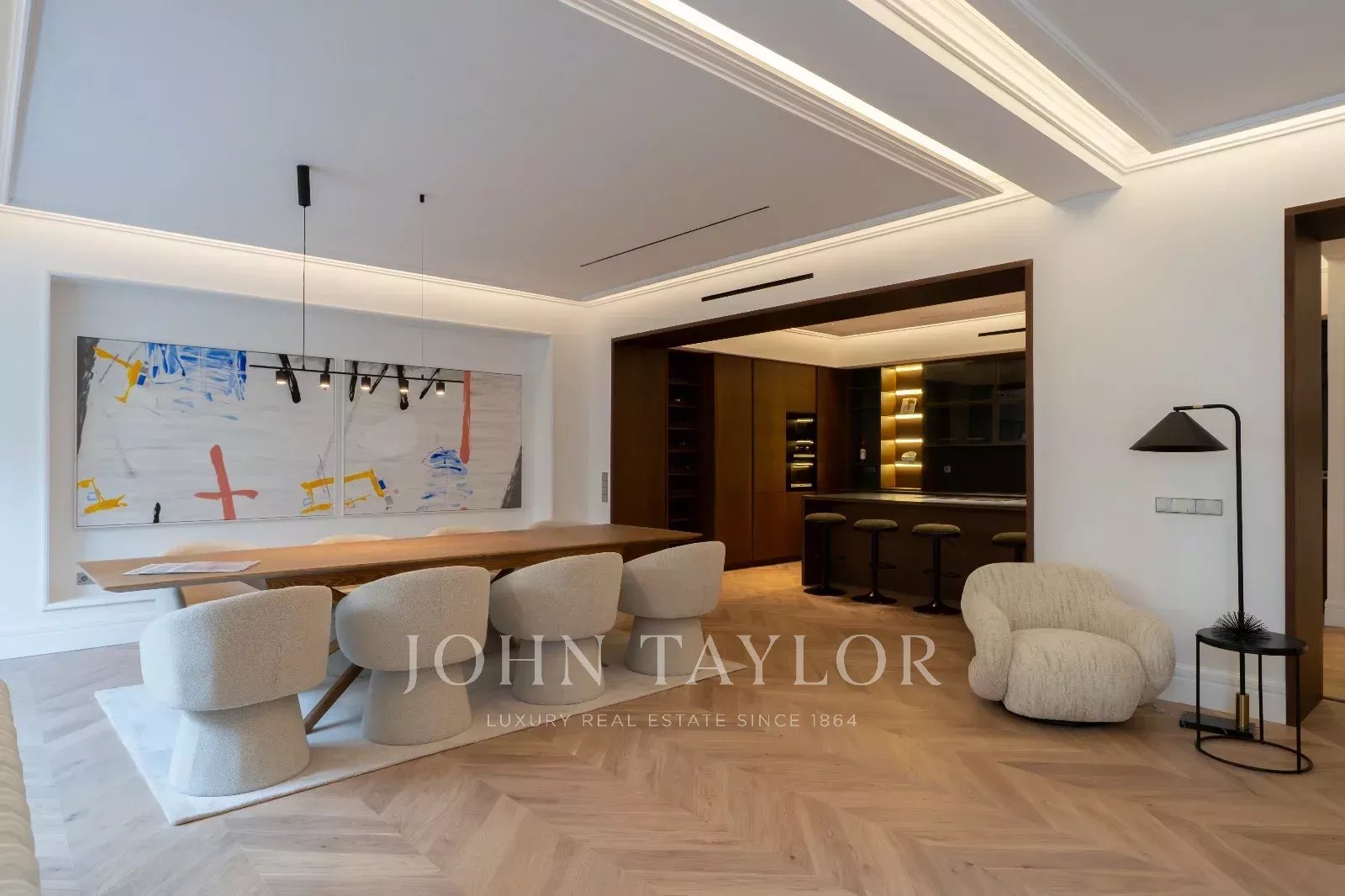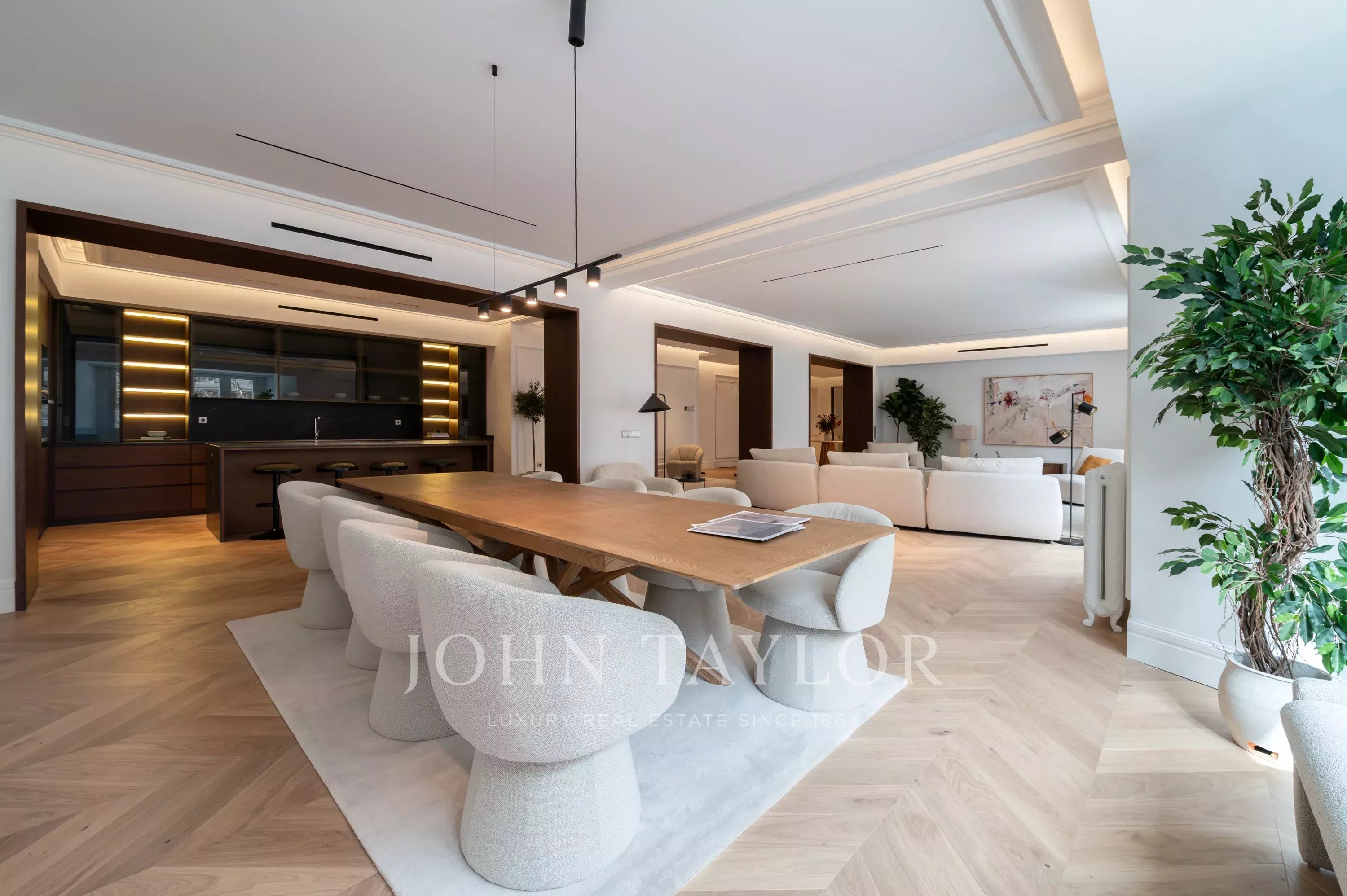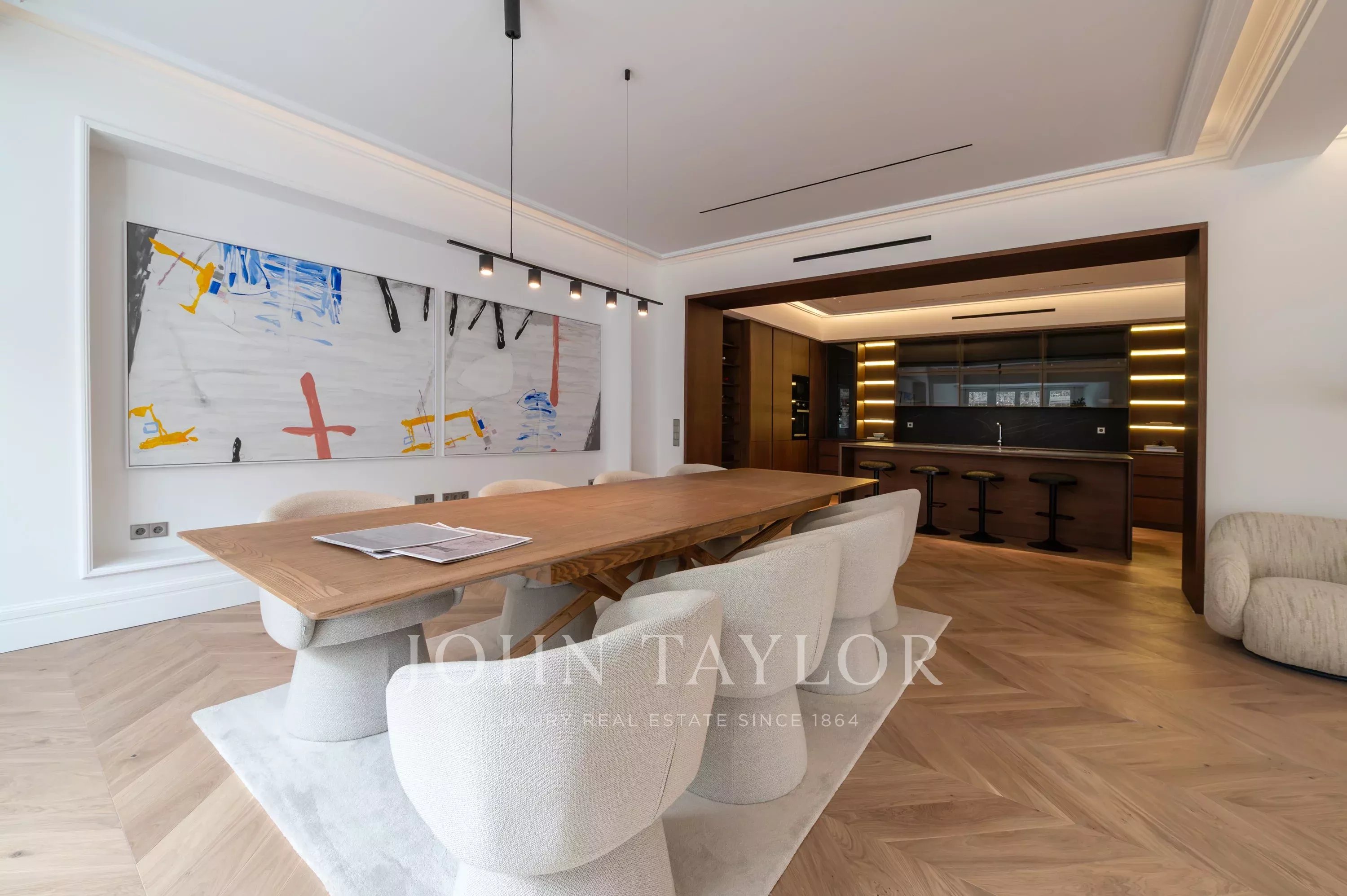 Esta residência excecional destaca-se pela sua grande dimensão, pelos seus tectos de 3 metros de altura e por ocupar todo o primeiro andar do edifício. Dispõe igualmente de um apartamento completamente independente que oferece privacidade às visitas e a outros membros da família.