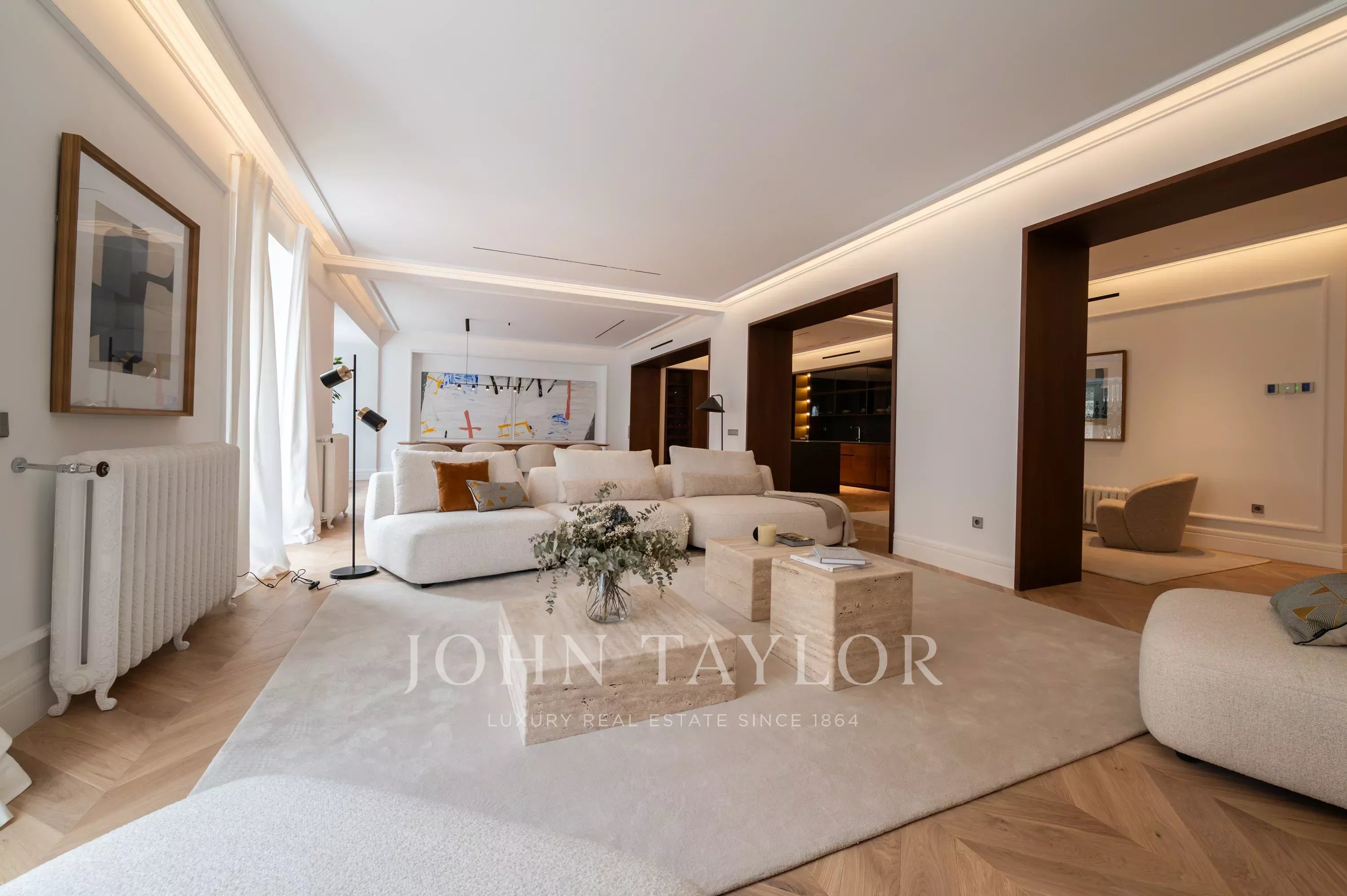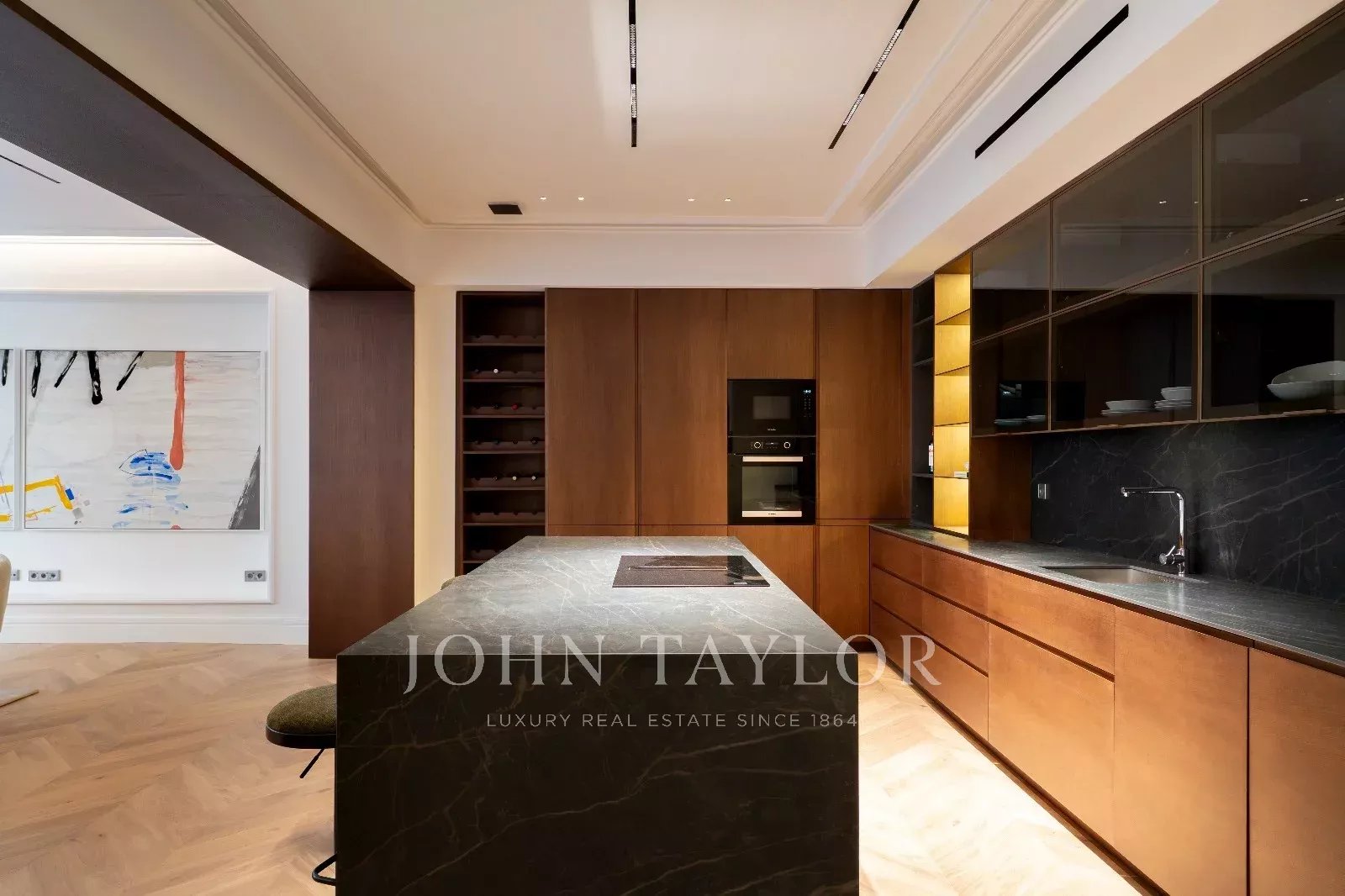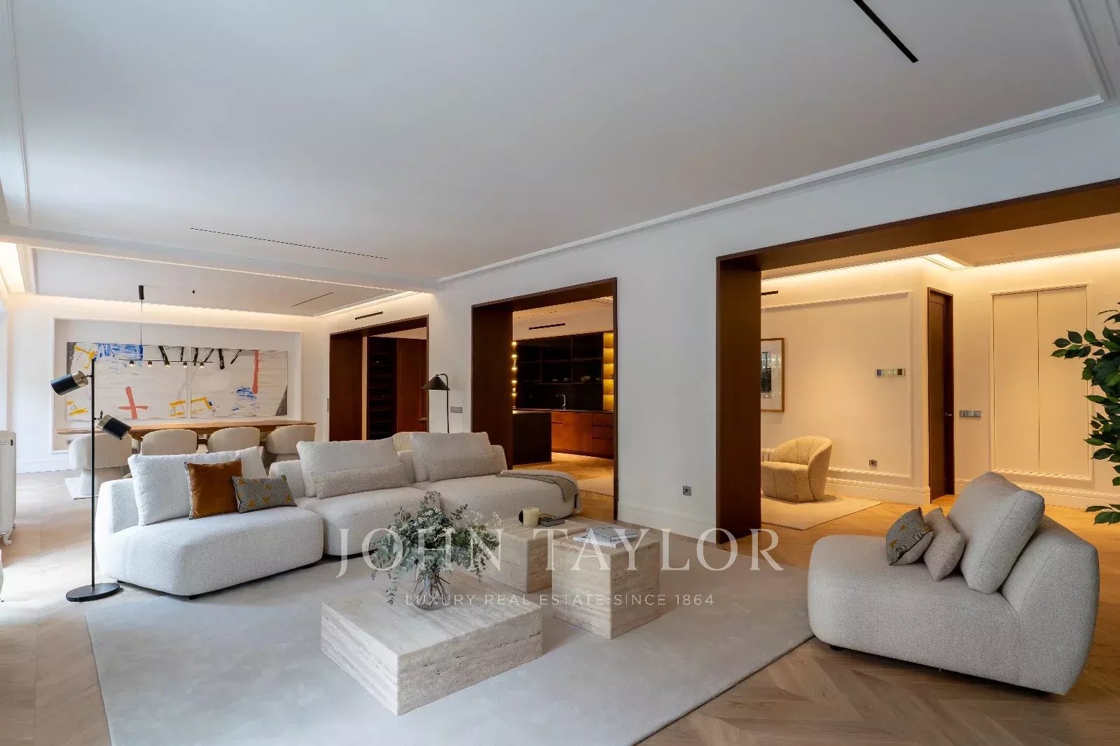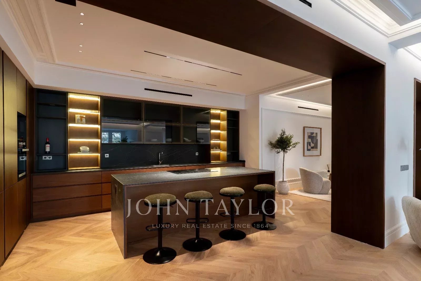 Esta residência excecional destaca-se pela sua grande dimensão, pelos seus tectos de 3 metros de altura e por ocupar todo o primeiro andar do edifício. Dispõe igualmente de um apartamento completamente independente que oferece privacidade às visitas e a outros membros da família.