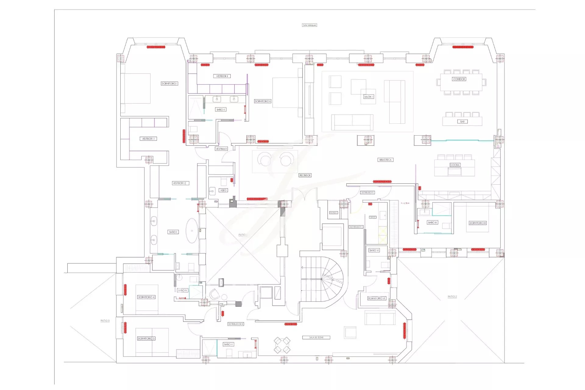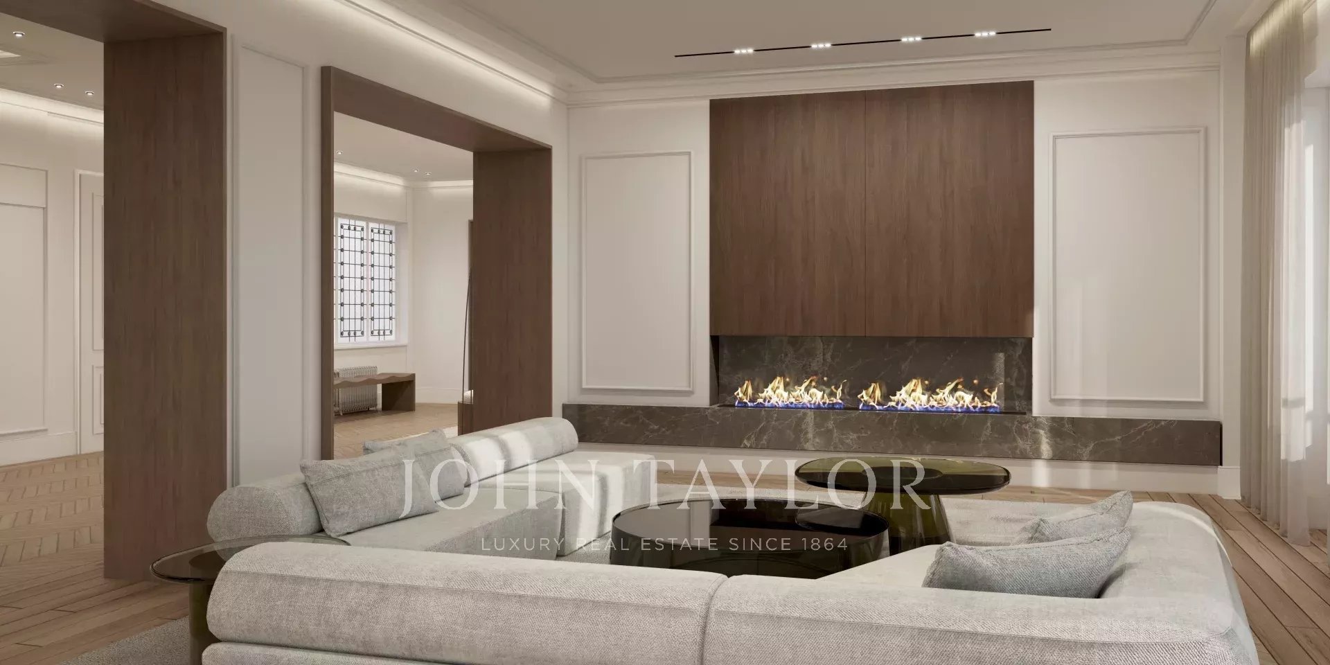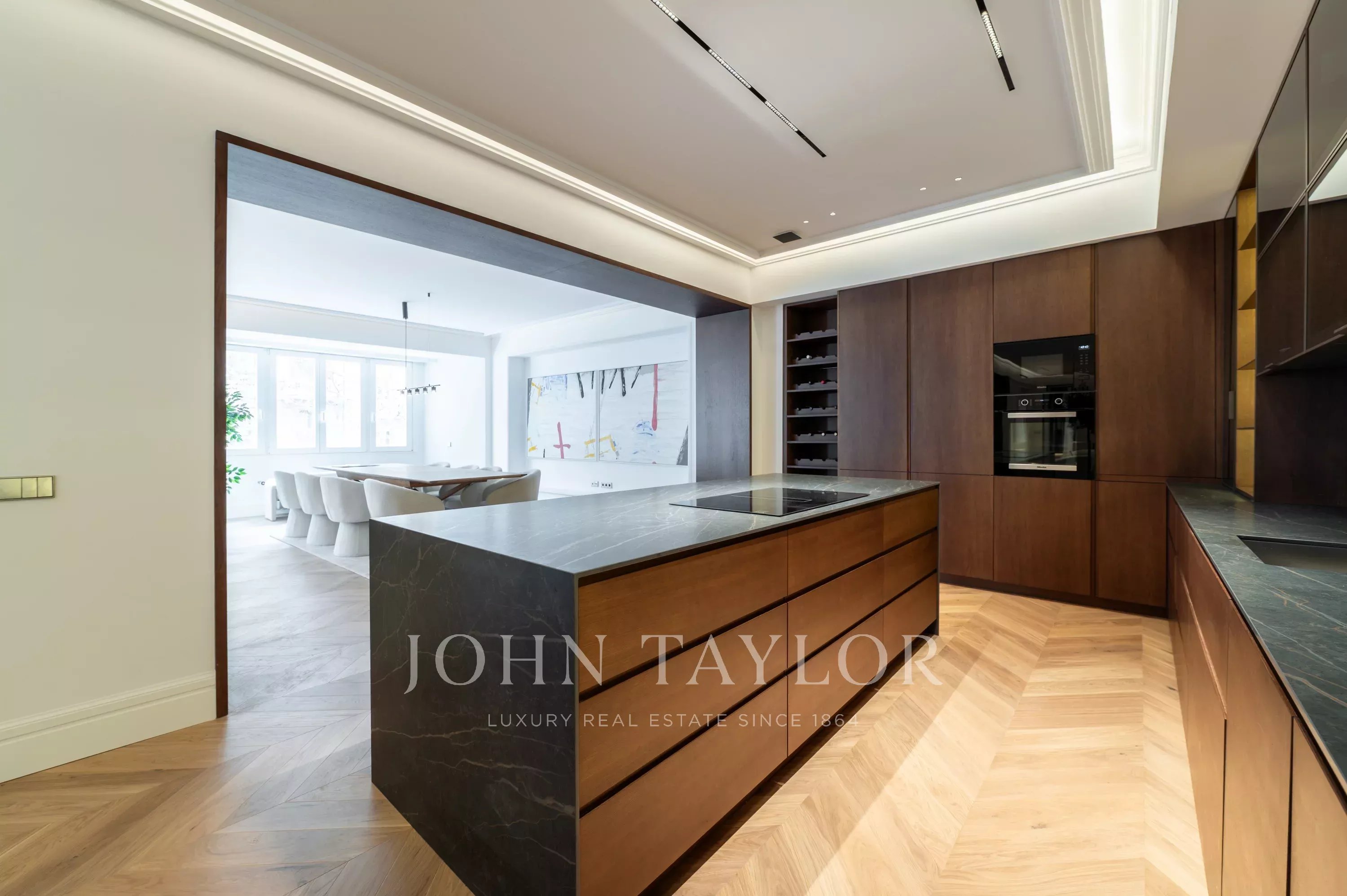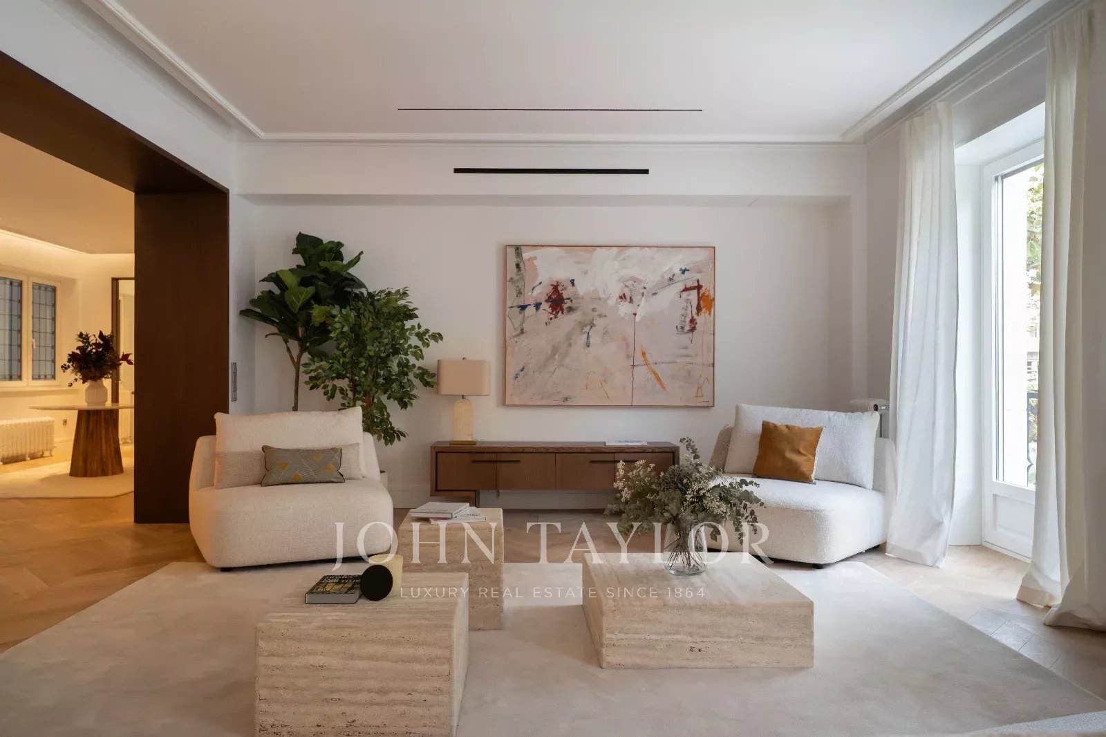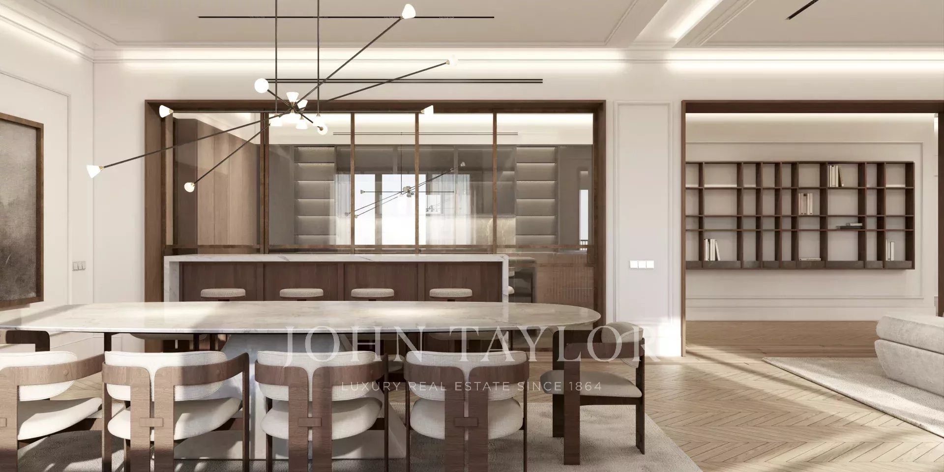 Esta residência excecional destaca-se pela sua grande dimensão, pelos seus tectos de 3 metros de altura e por ocupar todo o primeiro andar do edifício. Dispõe igualmente de um apartamento completamente independente que oferece privacidade às visitas e a outros membros da família.