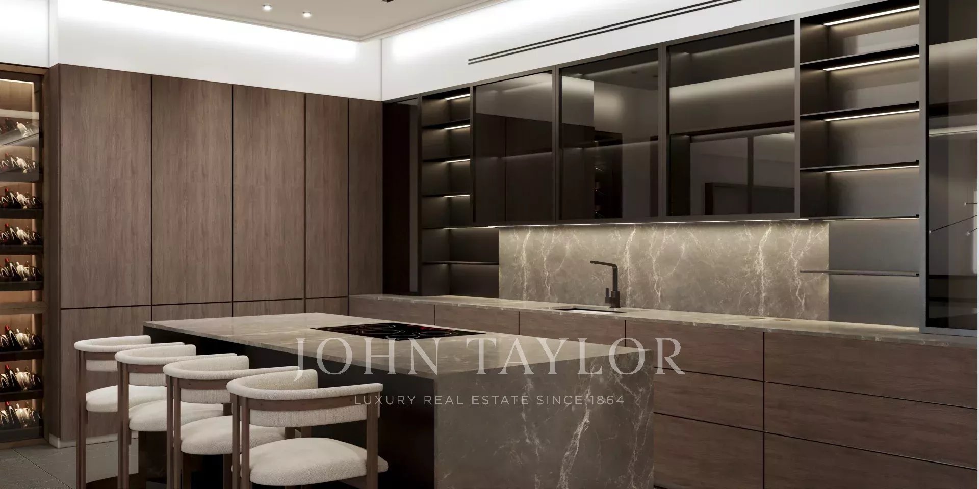 O imóvel possui uma cozinha de design, totalmente equipada com electrodomésticos topo de gama e integrada por uma ilha central que alia funcionalidade e estética, ideal tanto para o dia a dia como para os momentos de reunião.