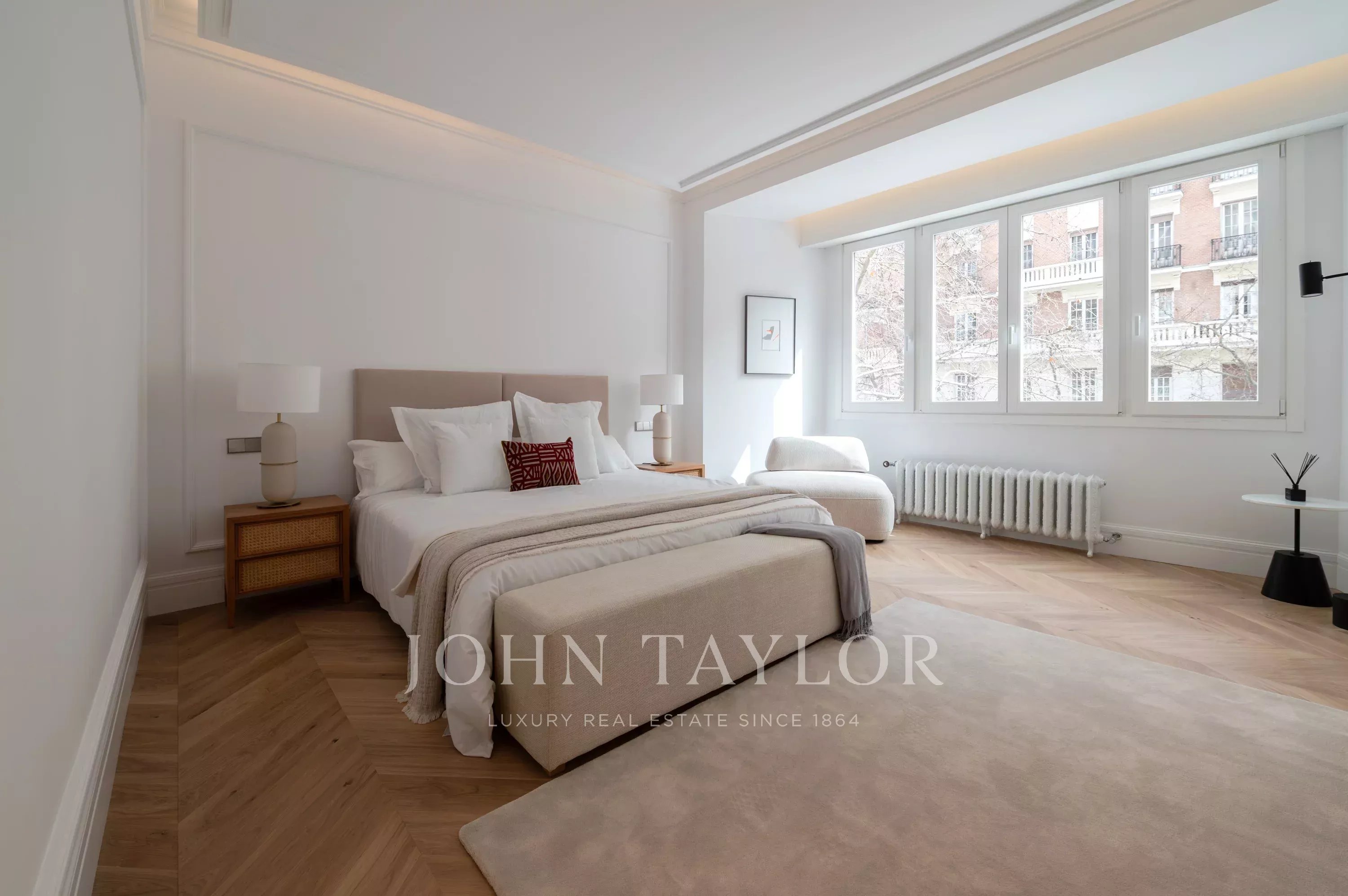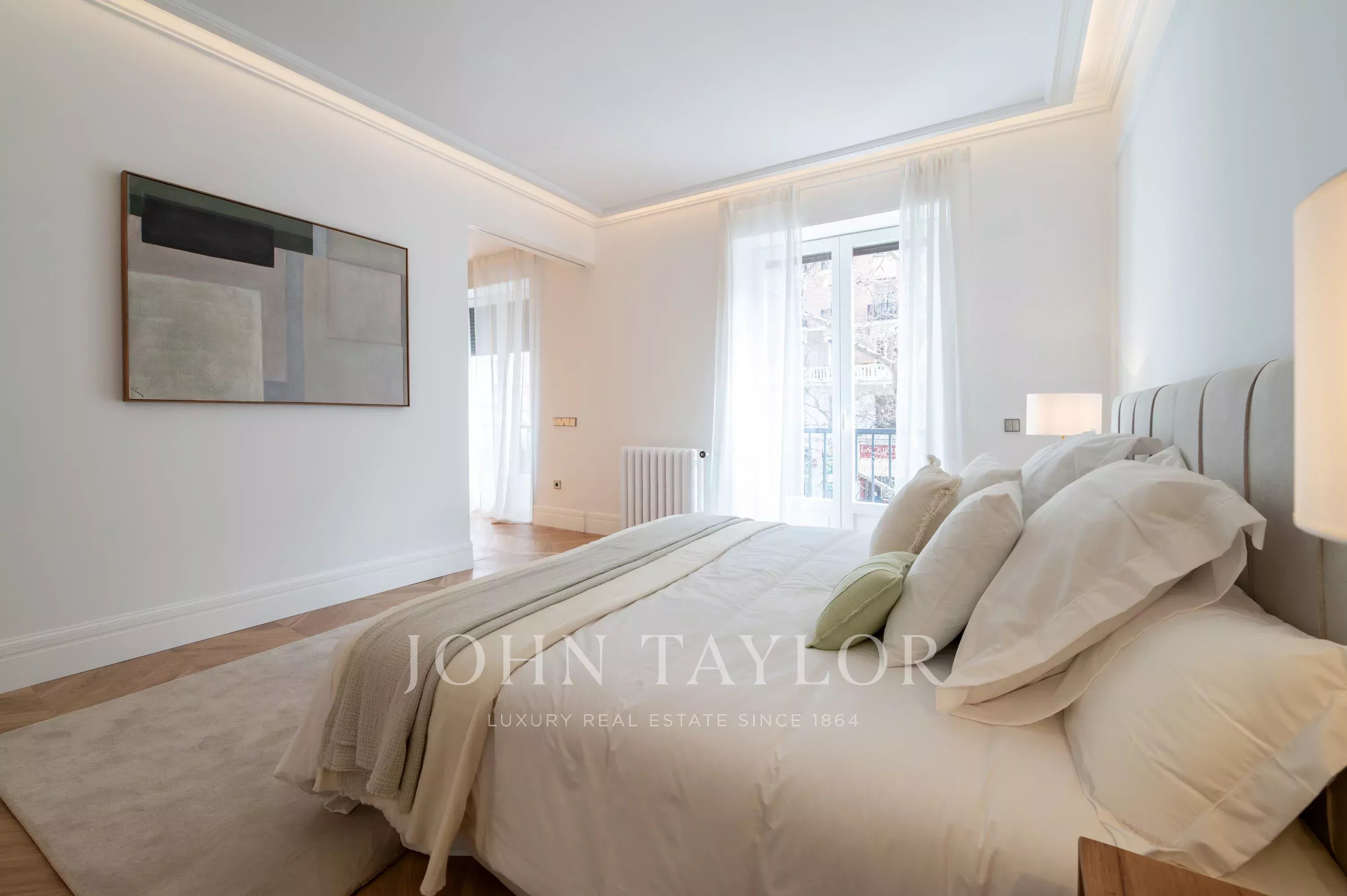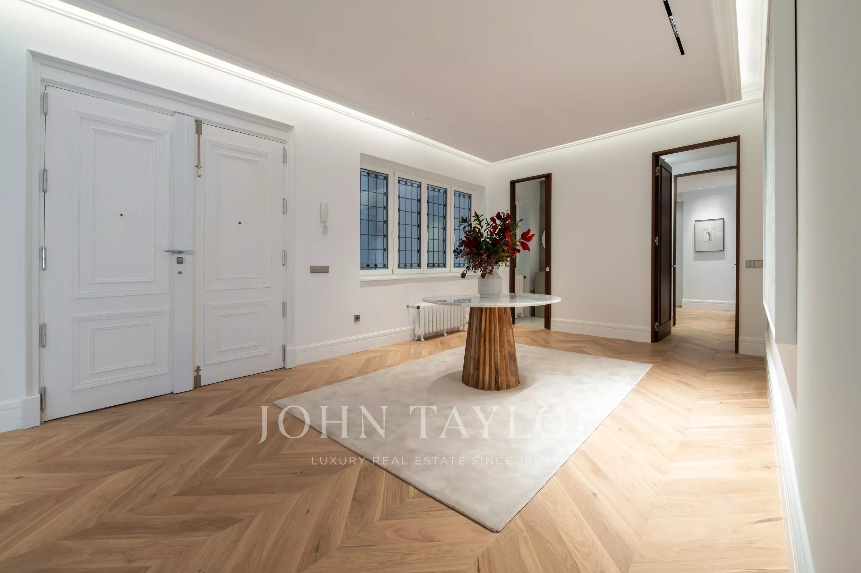 O apartamento independente, com entrada privativa, é perfeito como zona de hóspedes, espaço de trabalho ou para alojar pessoal de serviço, proporcionando uma versatilidade pouco habitual no bairro de Salamanca.