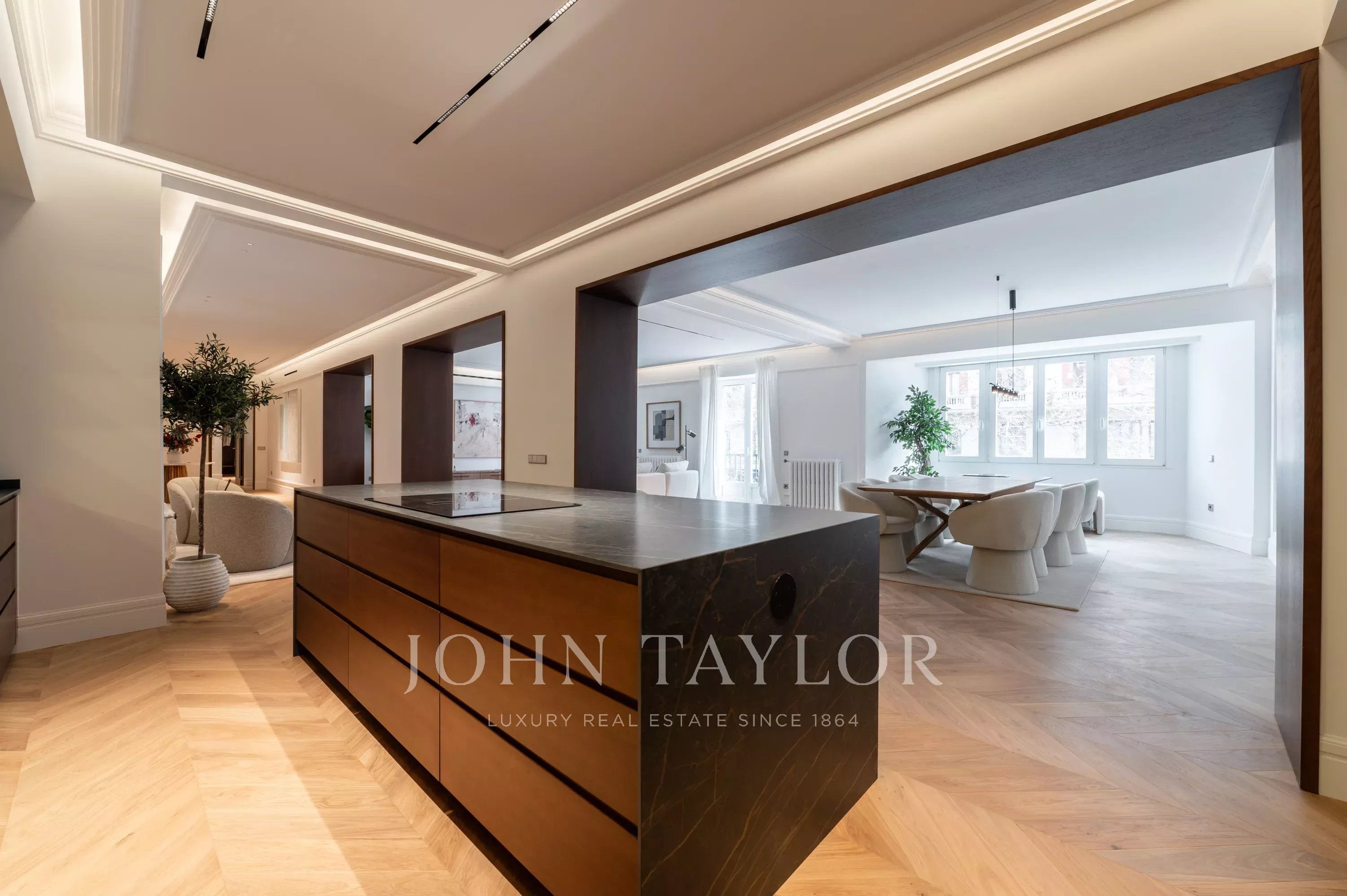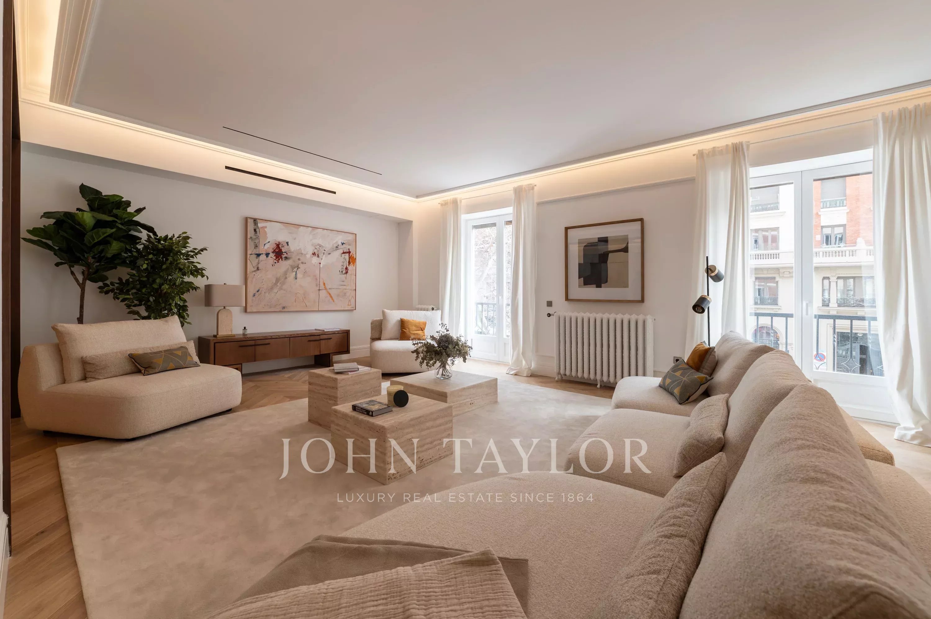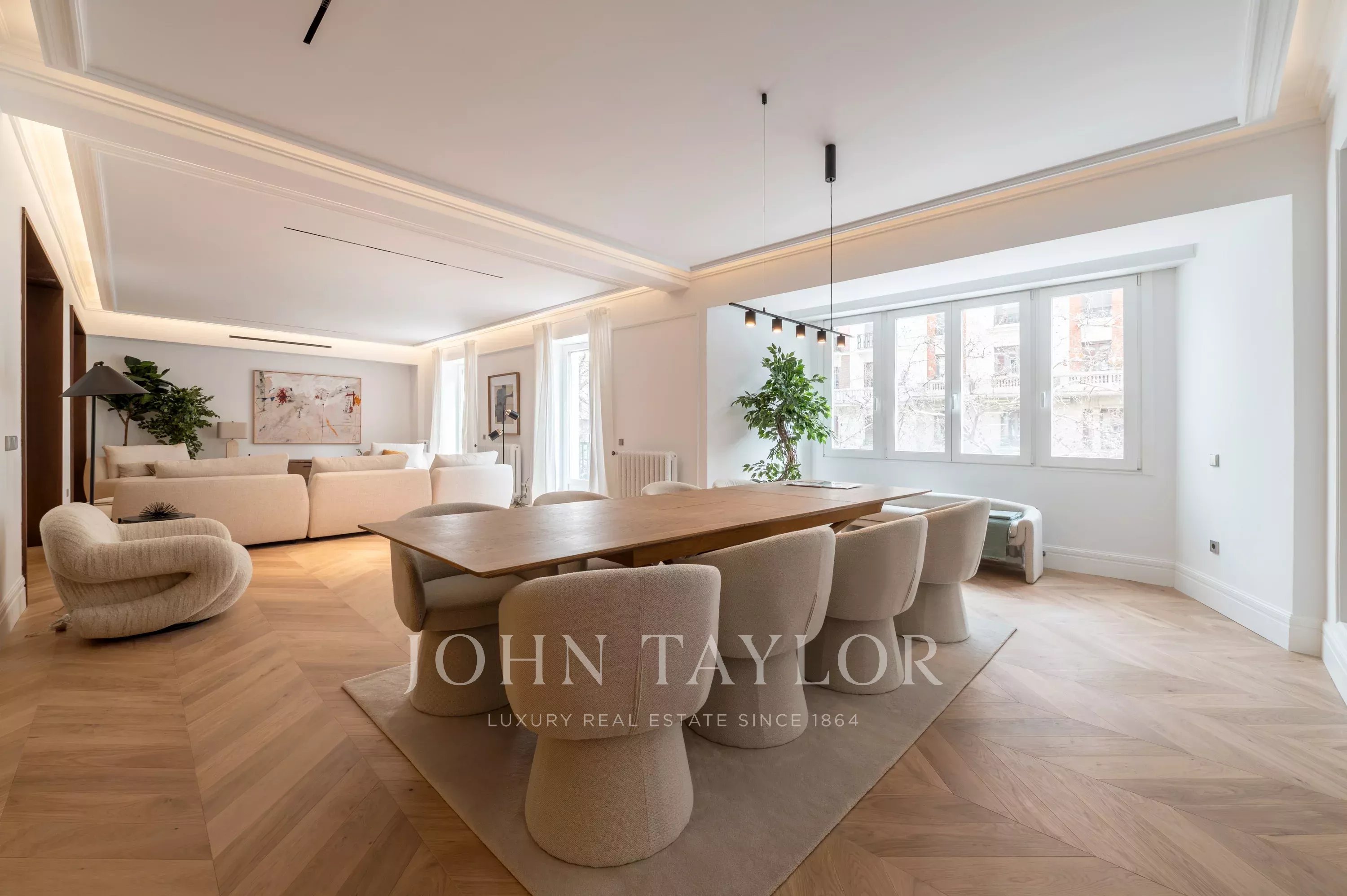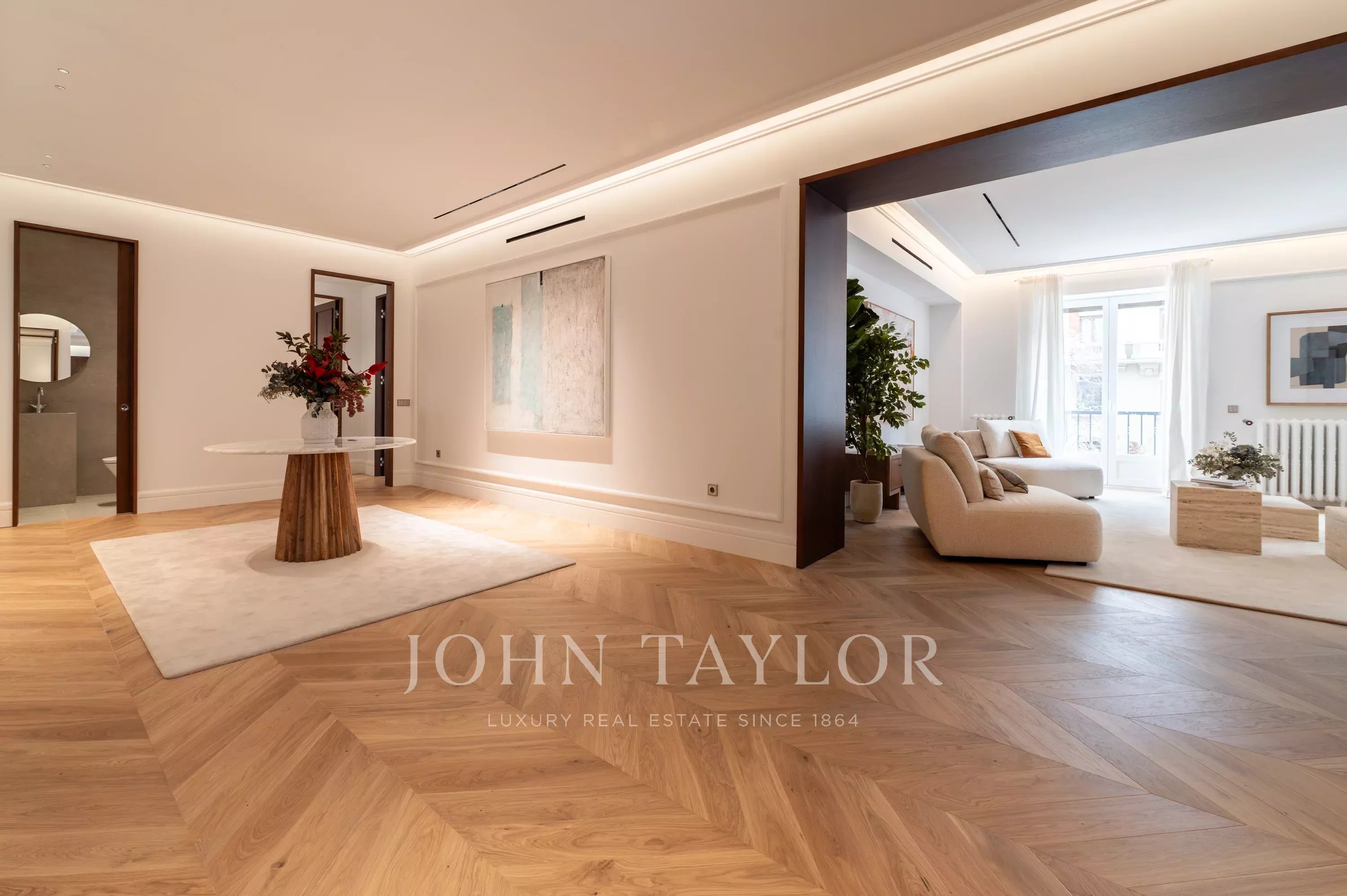 O apartamento independente, com entrada privativa, é perfeito como zona de hóspedes, espaço de trabalho ou para alojar pessoal de serviço, proporcionando uma versatilidade pouco habitual no bairro de Salamanca.