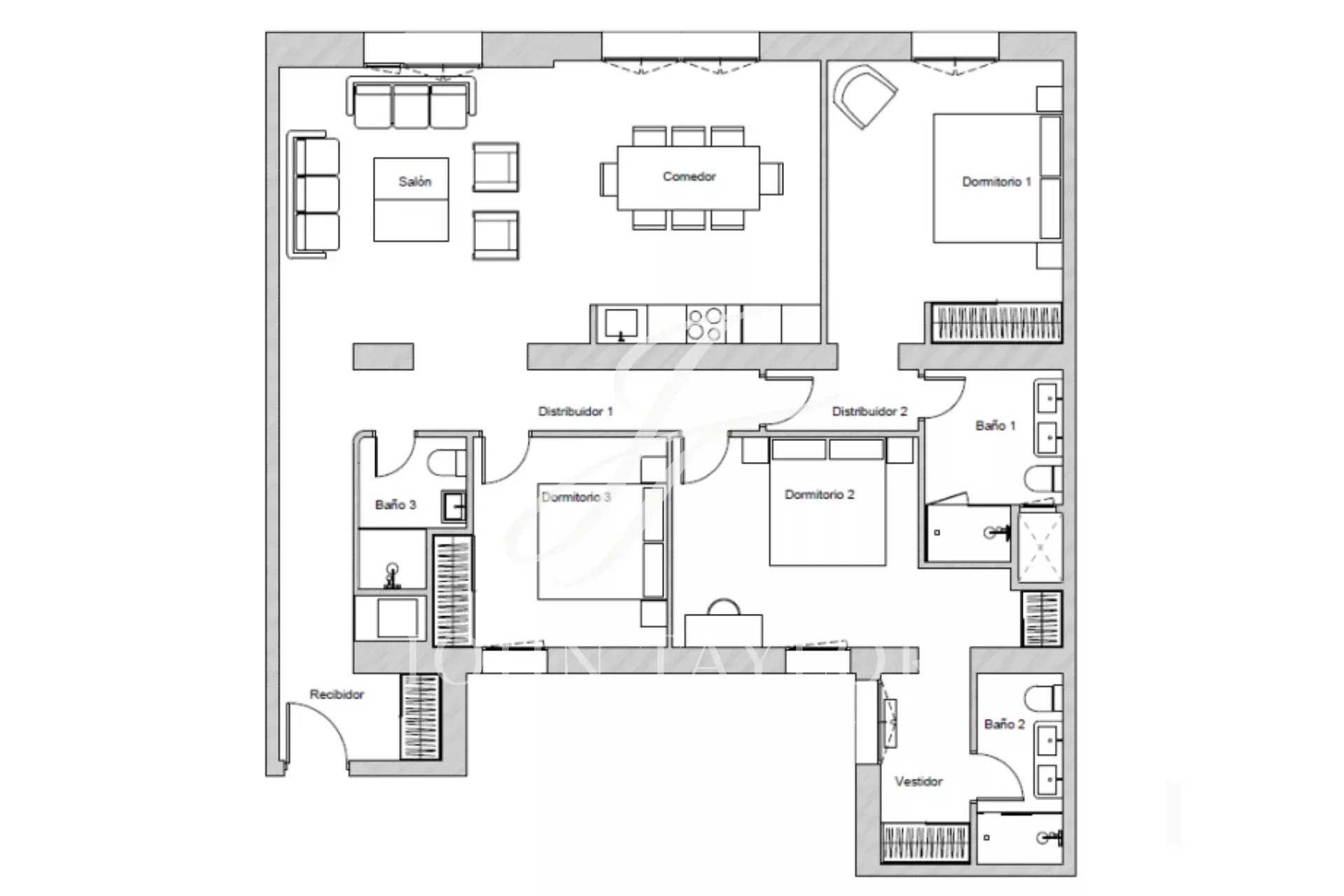 A propriedade tem três quartos, cada um com uma casa de banho privativa, garantindo conforto, privacidade e comodidade para toda a família. A configuração e distribuição dos espaços foram pensadas para otimizar a luz natural e a funcionalidade do imóvel.