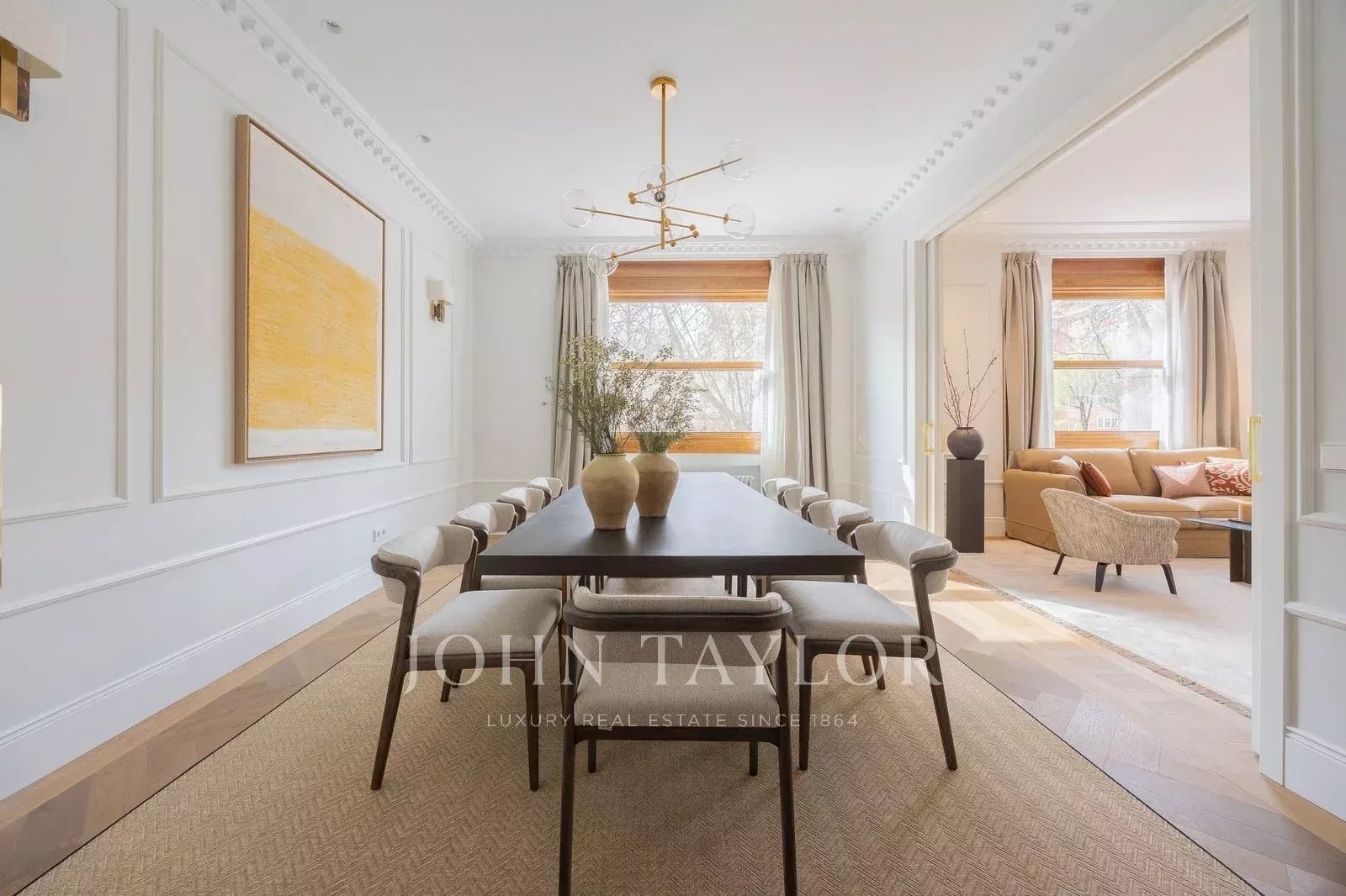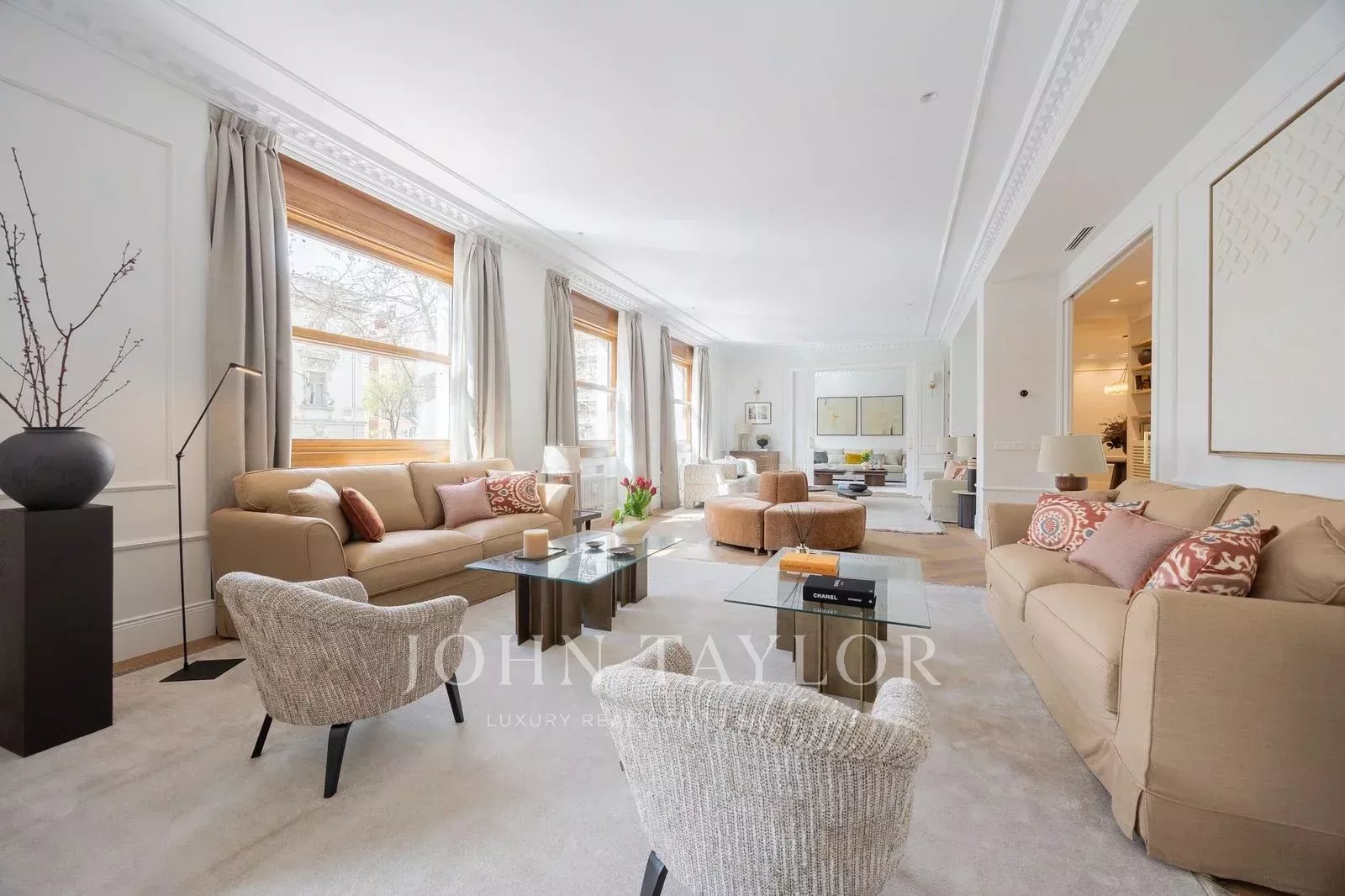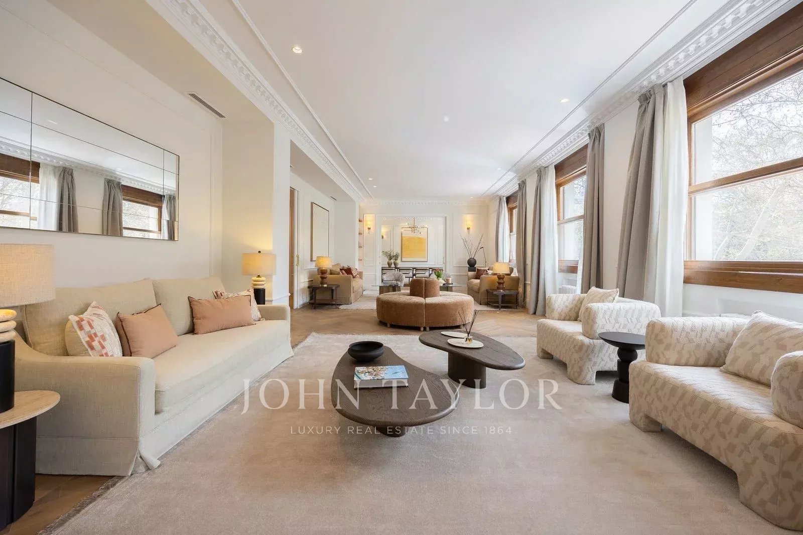 Com aproximadamente 451 m² internos e uma exclusiva varanda ajardinada de 43 m², a residência foi completamente reformada com um cuidado design contemporâneo, oferecendo amplos espaços de recepção, várias suítes privadas e uma sensação extraordinária de luz e amplitude graças às suas vistas abertas.