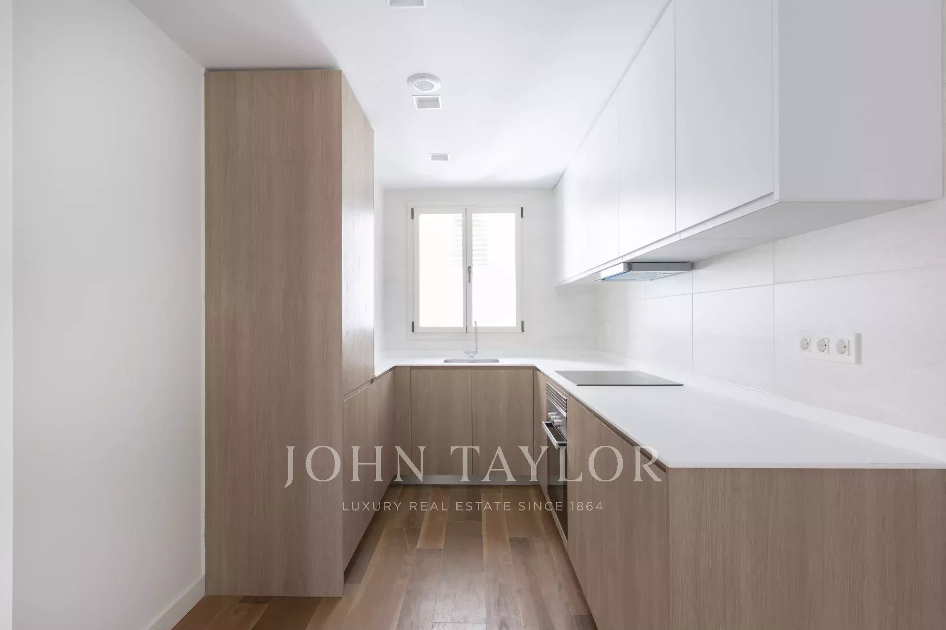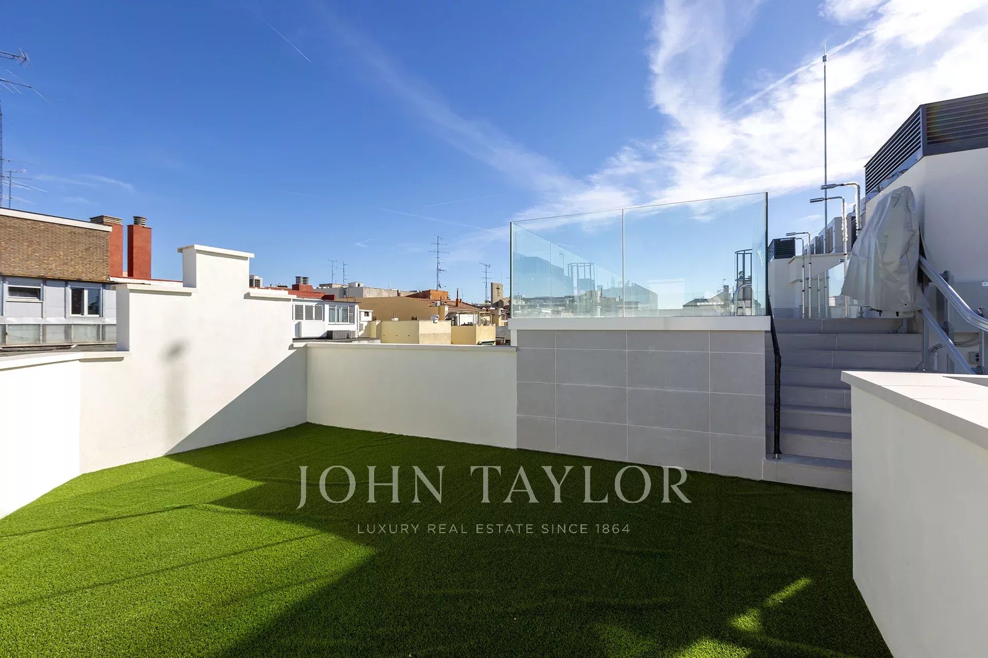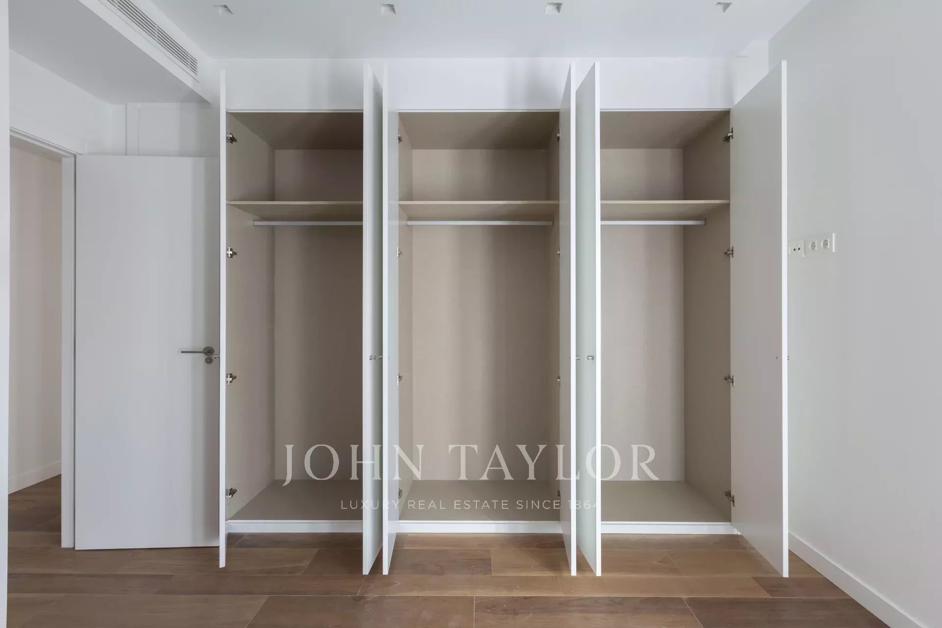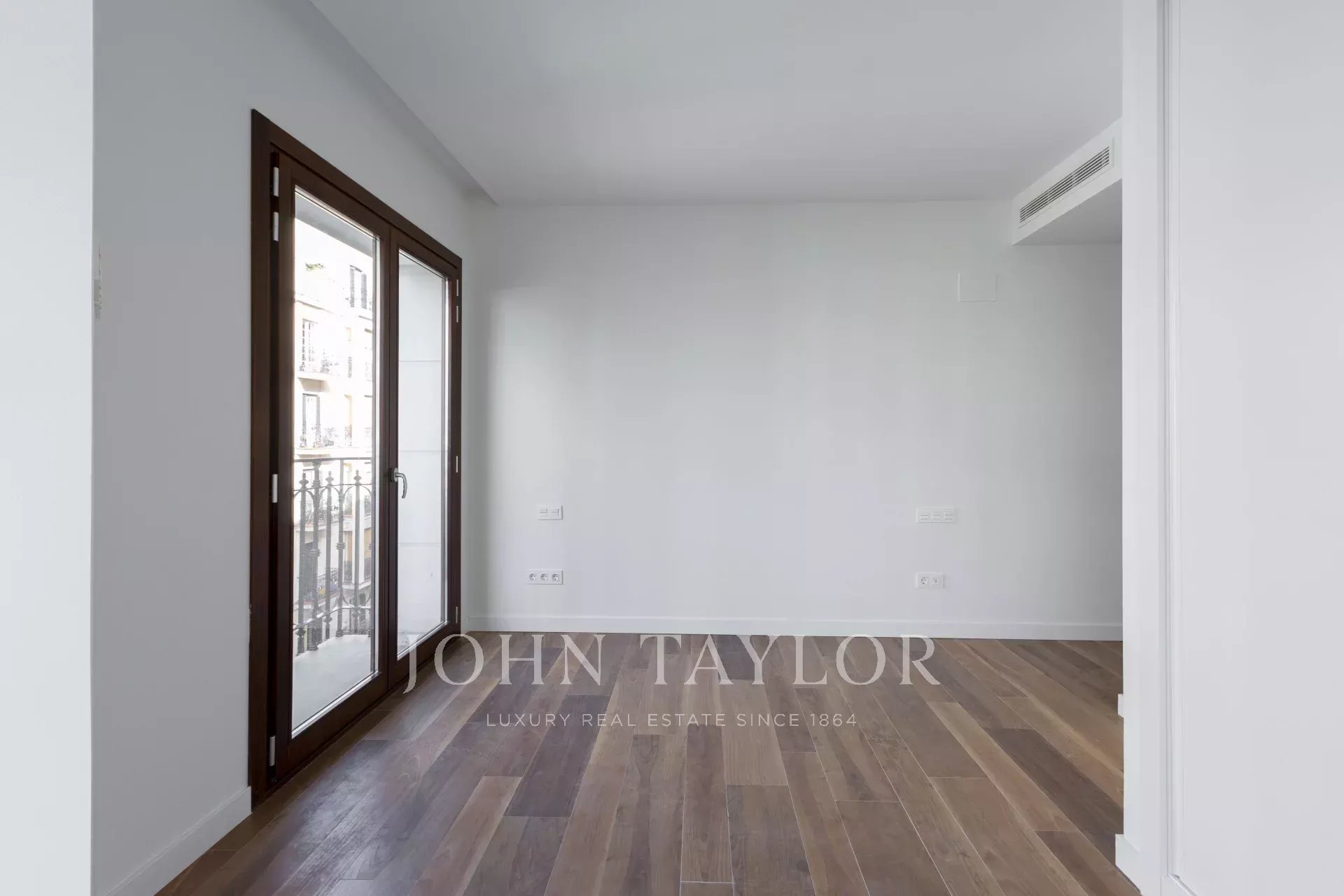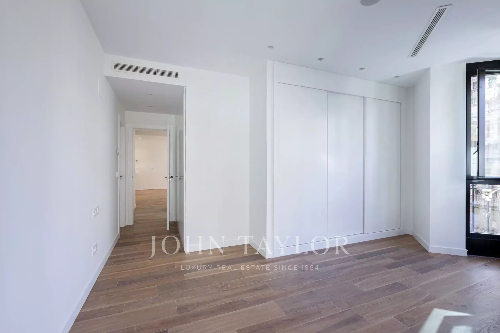 Num dos poucos edifícios novos do Barrio de Salamanca, encontramos este fabuloso apartamento novo. Com cinco varandas com vista para a rua e ocupando a esquina do quarto andar do edifício, o apartamento goza de uma luminosidade e de uma amplitude fantásticas.
