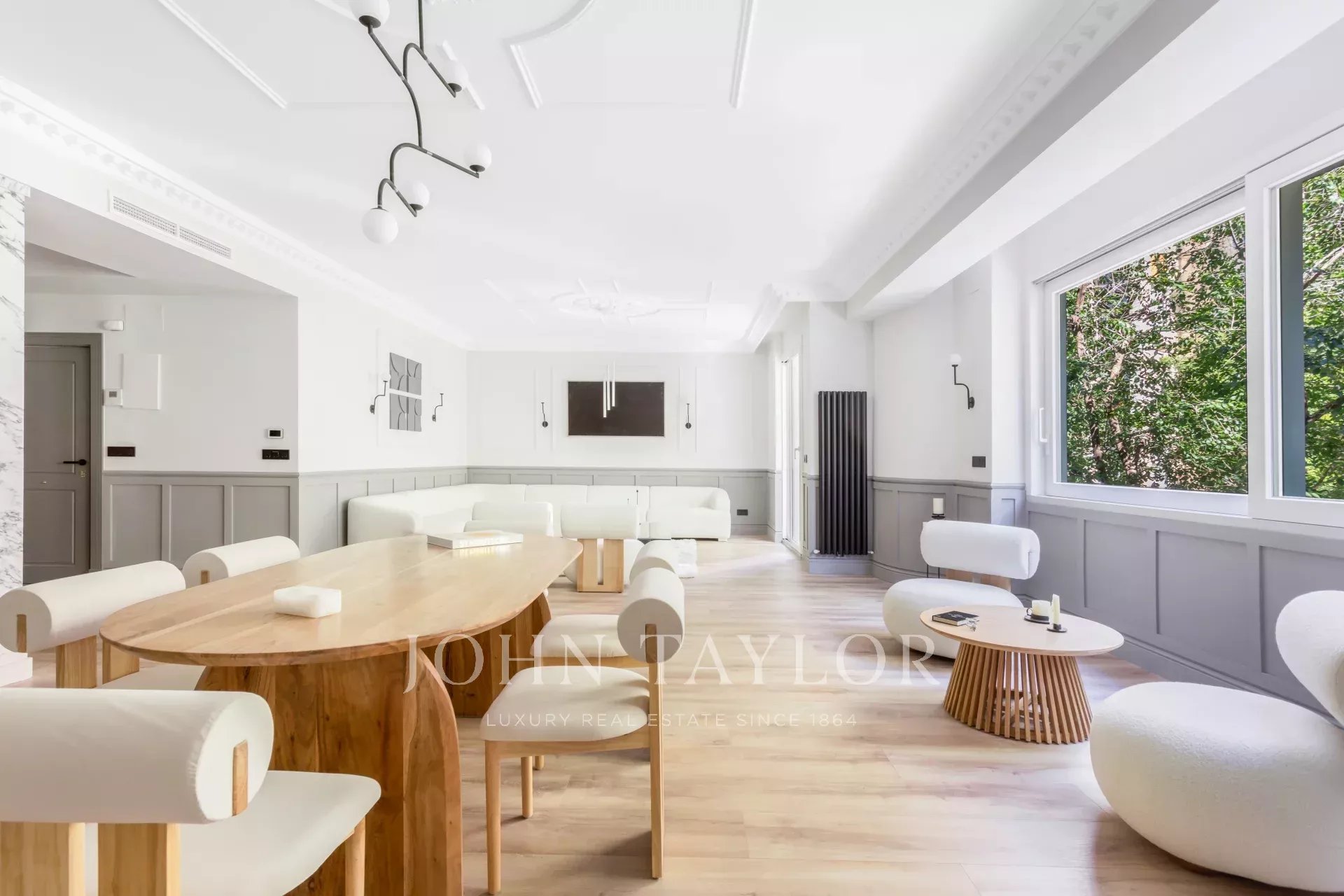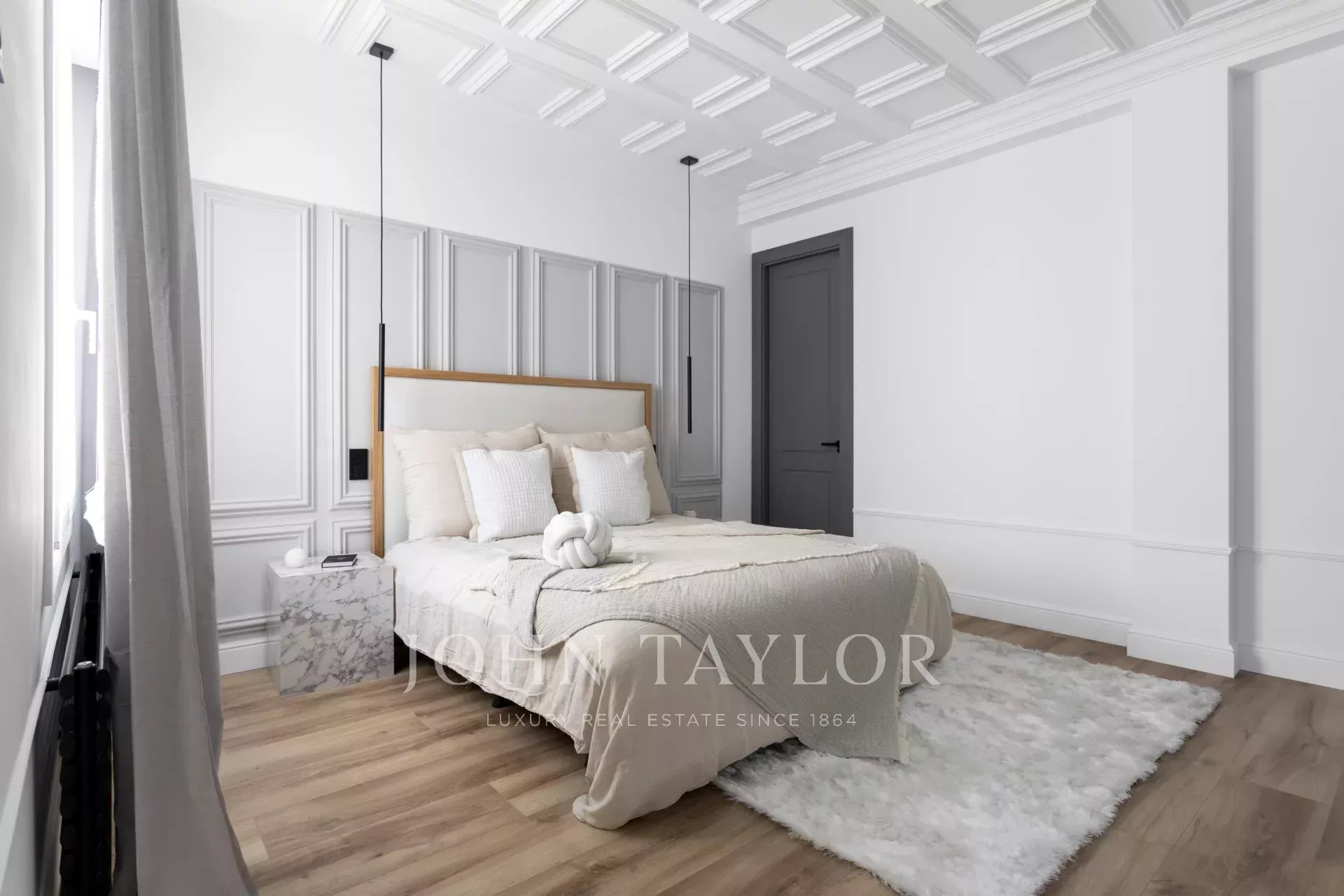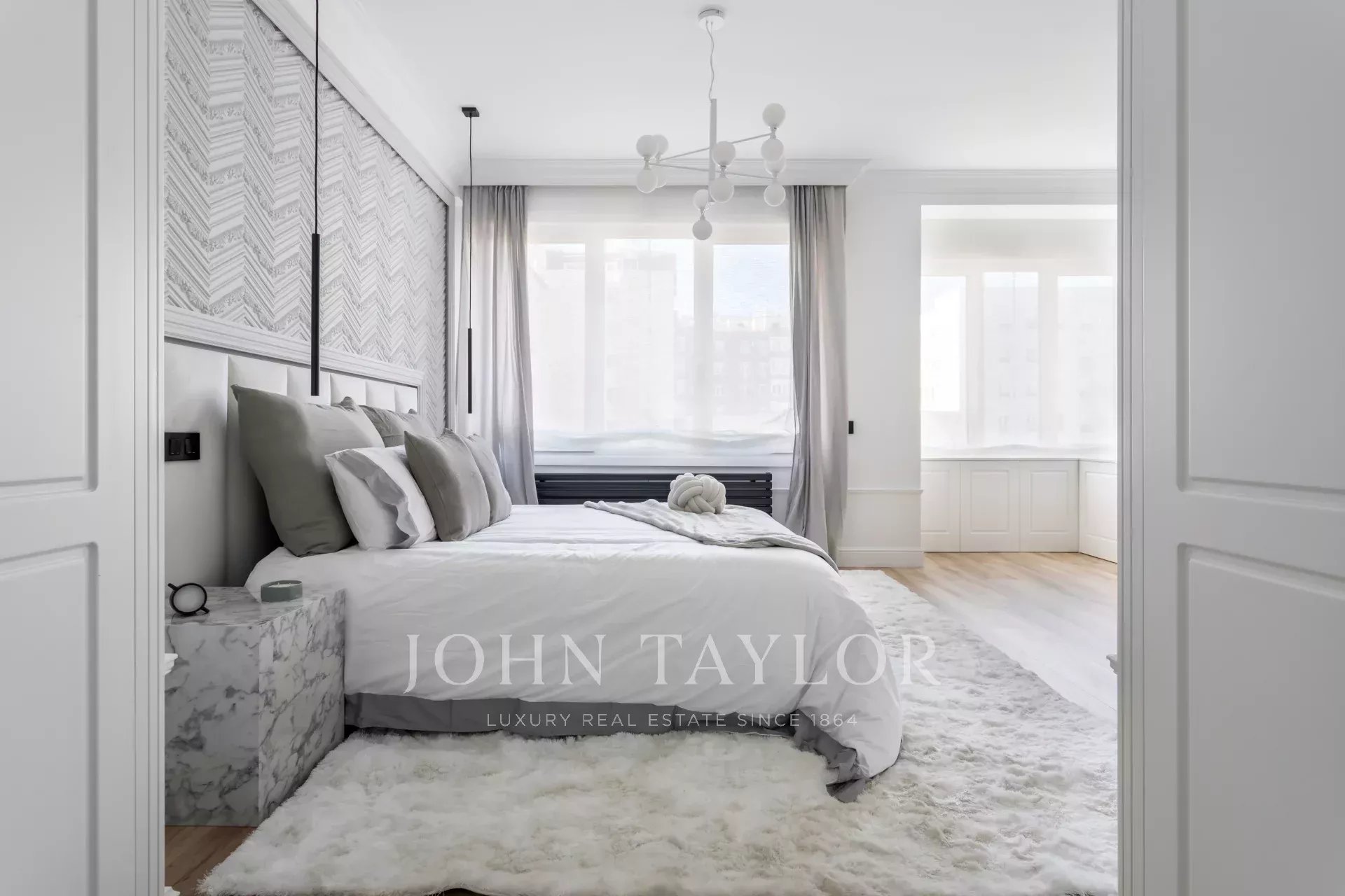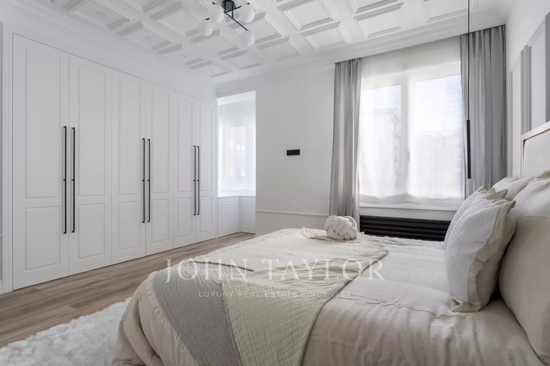 O apartamento tem quatro quartos, todos com casa de banho privativa e grandes roupeiros embutidos. Além disso, há uma casa de banho para hóspedes, uma área de lavandaria e uma arrecadação.