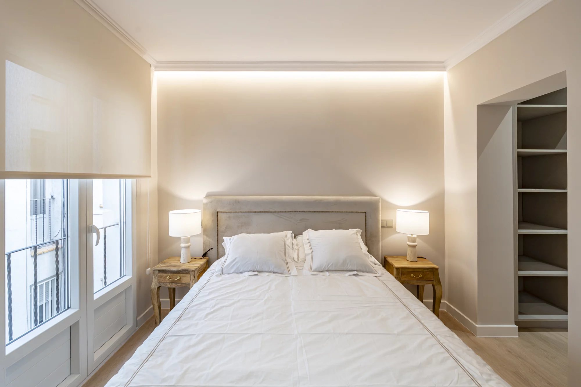 Tem dois quartos e duas casas de banho feitas com materiais de primeira classe e uma atenção requintada aos detalhes. A propriedade está totalmente mobilada, com um interior harmonioso e equilibrado que maximiza o conforto e a luz natural.