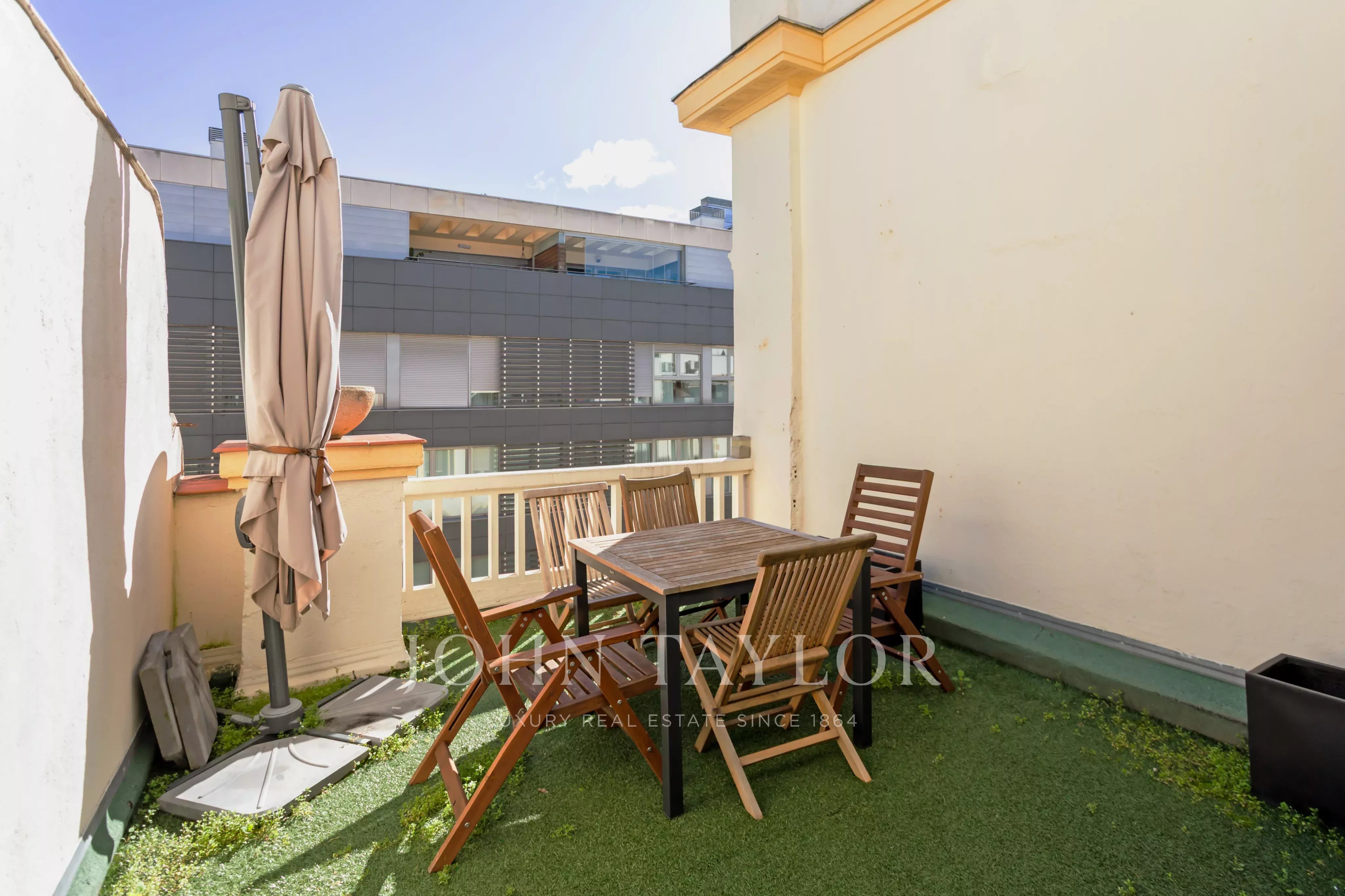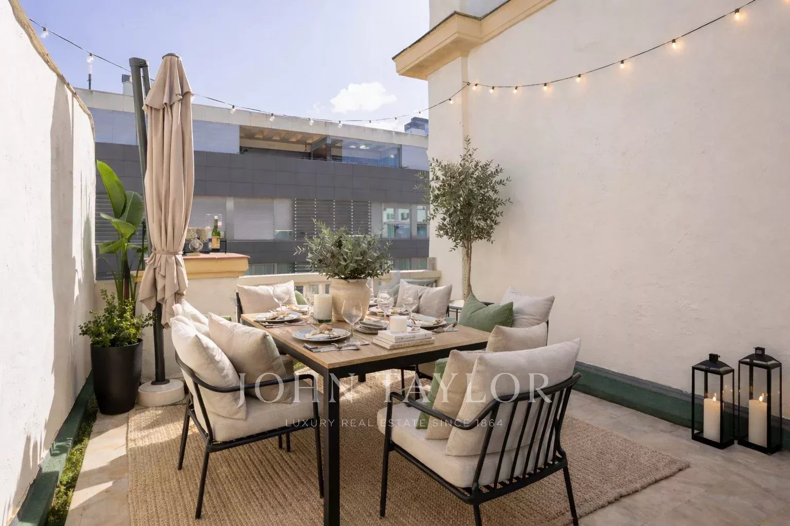 A penthouse duplex tem janelas Velux integradas no teto, que inundam as divisões de luz natural. Tem três quartos, o quarto principal com casa de banho privativa e quarto de vestir. A propriedade é completada com uma segunda casa de banho adicional e um agradável terraço virado para leste, perfeito para desfrutar do sol da manhã.